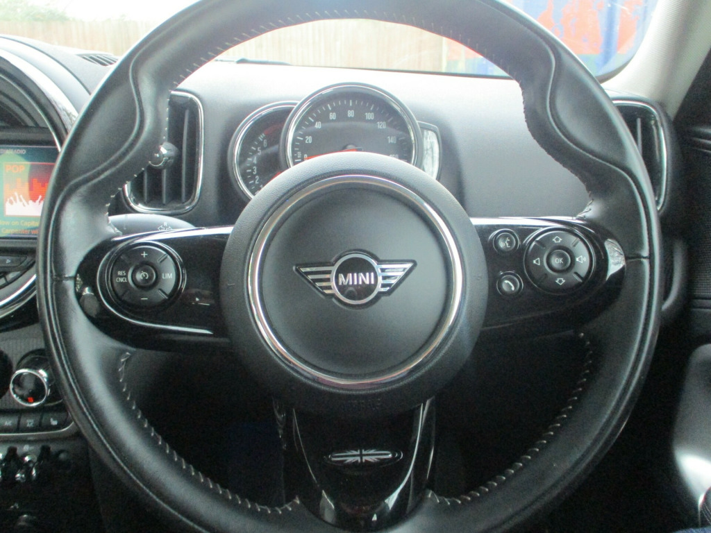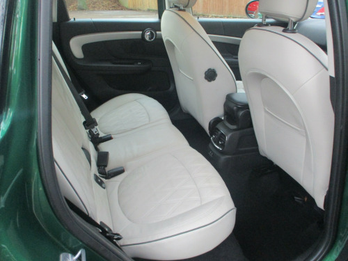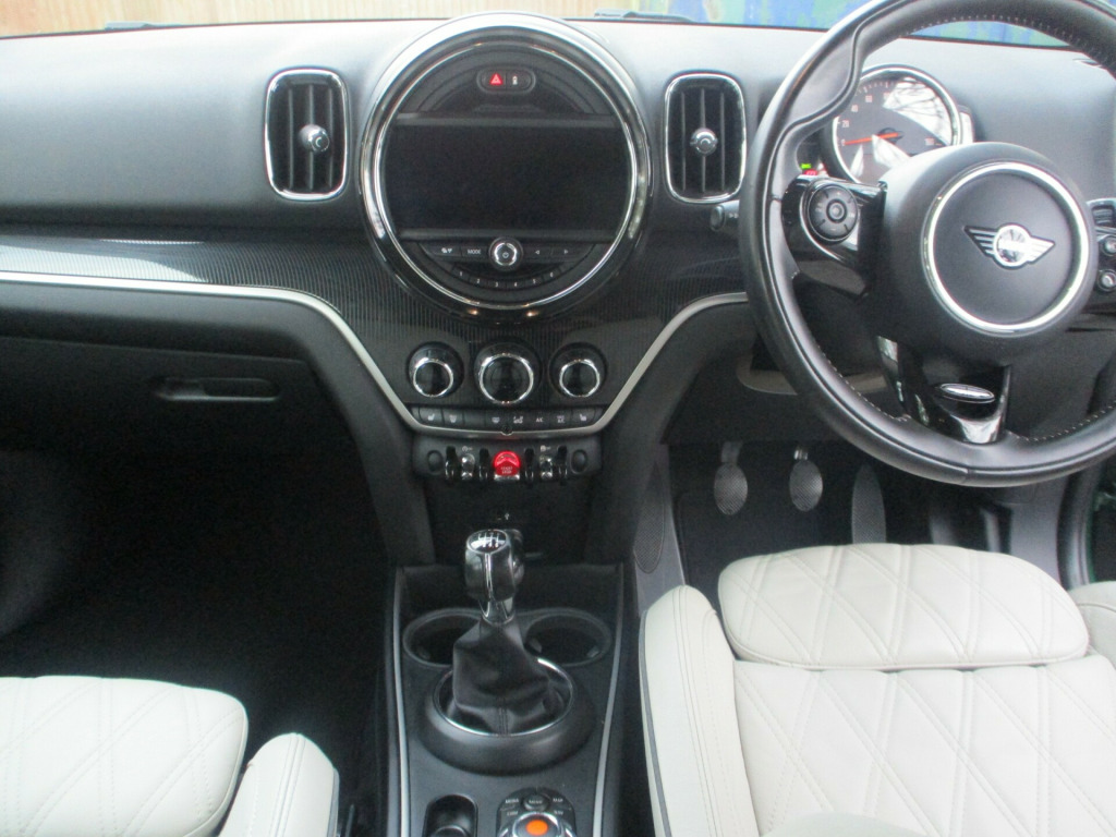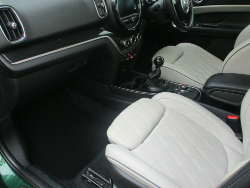 JUST IN. STUNNING car that is finished in Metallic British Racing Green & Cream Diamond Quilted Leather Upholstery. This 2019 Mini Countryman 2.0 Cooper S Exclusive SUV with 104000 miles on the clock is a stylish and practical choice for those in need of a versatile vehicle. Powered by a petrol engine and equipped with a manual transmission, this Euro 6 (s/s) model boasts an impressive 192 ps output. With 5 seats and 5 doors, there's plenty of room for passengers and luggage. This car look & drives great & has a fantastice Service History including a recently fitted new Clutch, big SVS & 4 New Tyres. Has 2 keys-Book Pack-MOT. SUPERB CAR. r conditioning, bluetooth connection, climate control, colour satnav, comms pack, dual climate zones, full leather, rain-sensing wipers, usb/ipod interface, adjustable steering column, cruise control, digital instrument cluster, esp, multi-function steering wheel, parking sensors, power steering, rear parking sensor, reverse parking aid, trip computer, abs, brake assist, child locks, isofix child seat anchor points, multiple airbags, service indicator, tyre pressure monitor, alarm, anti-theft system, immobiliser, locking wheel nuts, remote central locking, automatic electric windows, electric handbrake, electric mirrors, rear electric windows, auxiliary input socket, digital radio, front head restraints, heated front seat, folding rear seats, rear headrests, 2 zone climate control, push button start, alloy wheels, auto lighting, body coloured bumpers, front fog lights, metallic paintwork, roof rails