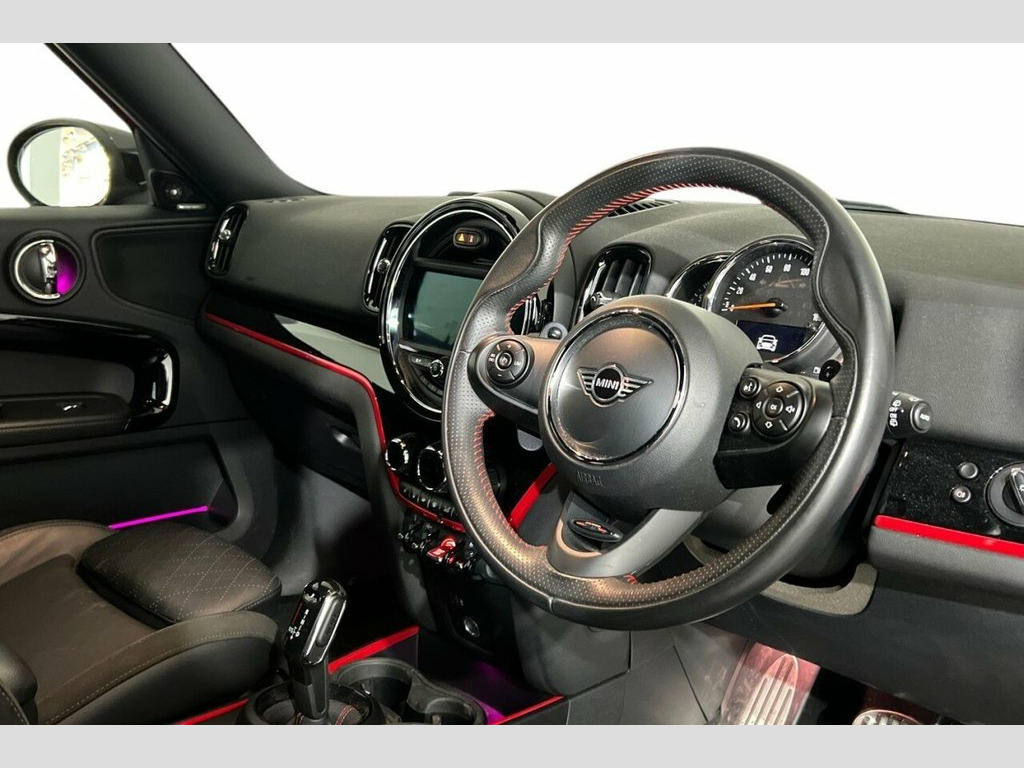 This 2019 MINI Countryman Cooper S Sport boasts a clear vehicle history and an MOT valid until June 2026, offering peace of mind. Powered by a robust 2.0L petrol engine and featuring four wheel drive, this Euro 6 compliant model is equipped with the desirable MINI Activity Pack and Comfort Plus Pack, which includes climate control, heated seats, and comprehensive parking assistance with front and rear sensors and a rear camera. Further enhancing its appeal are the Comfort Access System for keyless entry and the impressive Harman Kardon Hi-Fi System for a premium audio experience, all riding on stylish 19 inch John Cooper Works Circuit Spoke alloy wheels with run-flat tyres. Experience exhilarating performance with this Countryman, capable of reaching 0-60mph in a swift 7.2 seconds, a testament to its Cooper S Sport designation. These highlights demonstrate how this particular vehicle offers a superior driving experience compared to other models, with its advanced features and sporty capabilities ensuring every journey is both enjoyable and convenient. 12V Socket in Centre Console, 18in Alloy Wheels - John Cooper Works Gr, 19in Alloy Wheels - John Cooper Works Ci, 3 Point Seatbelts on all Seats, 4 Lashing Eyes in Luggage Compartment, 6 Speakers System, Active Guard - Automatic Emergency Braki, Air Conditioning - Manual, Airbags, Alarm System, Anthracite Headlining, Anti-Lock Braking System - ABS, Auto Drive Away Locking, Bluetooth for Compatible Mobile Phone - , Bonnet Scoop, Bonnet Stripes - Black, Chili Red, Chrome Highlights, Colour Line - Carbon Black, Comfort Access System, Comfort Plus Pack, Cross Punch Leather - Carbon Black, Cruise Control with Brake Function, Cupholders, Darkened Rear Glass, Daytime Driving Lights, Dead-Locking Fu