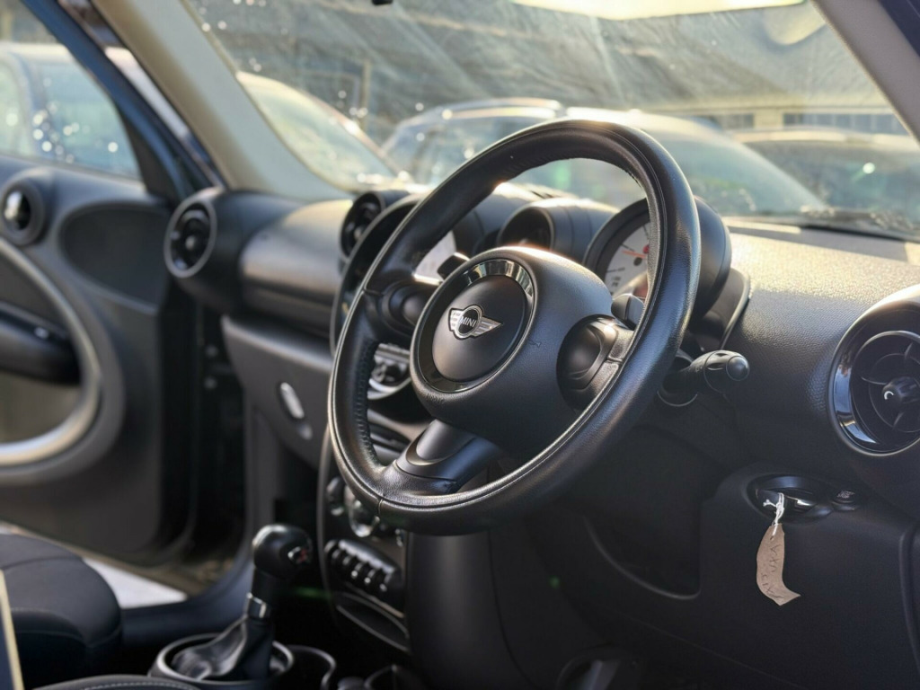 This 2013 MINI Countryman Cooper SD offers excellent value with its MOT valid until July 2026 and a respectable 79,000 miles on the clock. This particular model features a 2.0L Diesel Engine and comes with partial service history, providing a good overview of its past. For your convenience, it includes Rear Park Distance Control with parking assistance, manual air conditioning to keep you comfortable, and basic Bluetooth functionality with USB audio for your entertainment needs.You'll appreciate the economical running costs of this MINI Countryman Cooper SD, boasting an impressive fuel economy of 50 mpg. It also sits in a low insurance group, making it an affordable choice for many drivers. Furthermore, its low CO2 emissions highlight its efficiency. These factors combined indicate that this vehicle offers a more economical and potentially less expensive ownership experience compared to many other similar vehicles on the market. in alloy wheels - 5-star double spoke light, 3 seat rear bench, 3-spoke sport leather steering wheel, 3rd brake light, asc+t - automatic stability control and traction, air conditioning - manual, air scoop integrated between bumper and radiator grille-frame in body colour, airbags - driver, airbags - front passenger, airbags - front passenger with deactivation switch, airbags - front side, airbags - head, alarm - thatcham cat1, alloy wheels in anthracite, anti-lock braking system - abs, aux-in connection, basic bluetooth function with usb audio, bike rack preparation at rear, brake assist, brake energy regeneration- igr, brake pad wear indicator, cbc - cornering brake control, car jack, central bass hi-fi system, central locking - remote, centre rail, child seat isofix attachment, crash sensor - hazard warning flashers and interior light, cruise control, cupholders - two in front, dab tuner, dtc - dynamic traction control, door handles - chrome plated, door handles - interior - chrome plated, door mirrors - electrically adjustable and heated, door sill finishers - metal look and model dependent lettering, dynamic stability control - dsc, ebd - electronic brake-force distribution, electric windows - one touch up and down front and rear, electronic power steering, embellisher at bottom edge of all windows - chrome plated, exhaust tailpipe - visible double round left and right with chrome finishers, footrest and pedals in stainless steel, frame chrome-plated radiator-grille in honeycomb black, gearshift and selector lever gaiters in artificial leather, grab handles, halogen lights for low beam and high beam headlights, handbrake-lever grip plastic with central push button on underside of lever, headlight - beam-throw control electrical with manual adjustment, headlights - chrome bezels, headlights - follow me home, headrests for all seats - manually adjustable, heated mirrors and windscreen washer jets, heated rear window with automatic deactivation, hill assist, interior mirror - mechanical anti-dazzle, interior surfaces - dark anthracite decorative trim finishers on centre console and door ring, interior lights - integrated into centre front headliner including two reading lights, lashing eyes in luggage compartment, luggage compartment - light, mini mobility system, minimalism fuel saving technology, microfilter, mirror caps in body colour, multi-link rear axle, non smoker package, pdc - park distance control - rear, personal profile functions for each remote key, radiator grille - black-honeycomb, radio boost cd, remote controlled alarm system, rev counter, roof rails - dark anthracite, seats - 40:20:40 split rear backrests, seats - height adjustable drivers, seats - sports front, second radio remote key, security locking wheel bolts, side scuttles with integrated indicators - white indicators and s designation at the air inlets, sills-bumper edges-wheel arches - black with model-specific bumper trims, single joint spring strut front axle, speedometer centred in instrument panel, spoiler - roof, sport button, steering column height and length adjustment, storage options in the trim panels of each front panel as well as centre console, sun visors with integrated vanity mirrors on drivers and passengers sides, tpws - tyre pressure warning system, tailgate release incorporated within mini badge, white direction indicators lights, alloy wheels in anthracite, colour line - carbon black, interior world - carbon black, roof and mirror caps - black, diagonal track cloth - carbon black