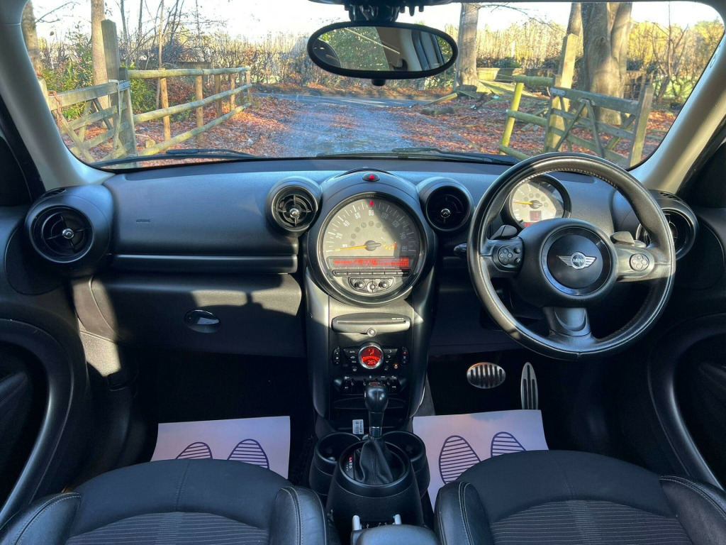 This 2015 MINI Countryman Cooper SD offers excellent value with its MOT valid until July 2026 and a clear vehicle history check. This stylish 2.0L diesel model boasts low mileage for its age, having covered just 72,000 miles. It comes equipped with desirable features such as 18in Turbo Fan Light Anthracite Matt alloy wheels and a sophisticated Cloth-Leather Parallel Lines interior in Light Tobacco. Practicality is enhanced by the rain sensor, automatic headlight activation, and rear park distance control, ensuring a more comfortable and convenient driving experience.Further enhancing its appeal, this MINI Countryman Cooper SD benefits from Bi-Xenon headlights for superior visibility. The partial service history, with the last service conducted on 23rd November 2025, combined with a 3 month warranty, provides added peace of mind. Its low insurance group rating also makes it an economical choice for many drivers. These factors, alongside its well maintained condition and comprehensive features, position this Countryman as a standout option compared to other vehicles in its class. in alloy wheels - 5-star double spoke light, 3-spoke sport leather steering wheel with gearshift paddles, 3rd brake light, air conditioning - manual, air scoop integrated between bumper and radiator grille-frame in body colour, airbags - driver, airbags - front passenger, airbags - front passenger with deactivation switch, airbags - front side, airbags - head, alarm - thatcham cat1, anti-lock braking system - abs, aux-in connection, basic bluetooth function with usb audio, bike rack preparation at rear, brake assist, brake pad wear indicator, cbc - cornering brake control, car jack, central bass hi-fi system, central locking - activated at 10mph, central locking - remote, centre rail, child seat isofix attachment, cooled glovebox, cupholders - two in front, dab tuner, dtc - dynamic traction control, door handles - chrome plated, door handles - interior - chrome plated, door mirrors - electrically adjustable and heated, dynamic stability control - dsc, ebd - electronic brake-force distribution, electric windows - one touch up and down front and rear, electronic power steering, embellisher at bottom edge of all windows - chrome plated, exhaust tailpipe - visible double round left and right with chrome finishers, footrest and pedals in stainless steel, frame chrome-plated radiator-grille in honeycomb black, grab handles, halogen lights for low beam and high beam headlights, headlight - beam-throw control electrical with manual adjustment, headlights - chrome bezels, headlights - follow me home, headlining - beige, heated front windscreen washer jets, hill assist, interior surfaces - dark anthracite decorative trim finishers on centre console and door ring, interior lights - integrated into centre front headliner including two reading lights, lashing eyes in luggage compartment, mini mobility system, minimalism fuel saving technology, microfilter, mirror caps in body colour, pdc - park distance control - rear, radio boost cd, roof rails - dark anthracite, roof in body colour, seats - 40:20:40 split rear backrests, seats - height adjustable drivers, seats - sports front, second radio remote key, security locking wheel bolts, side scuttles with integrated indicators, spoiler - roof, sport button, steering column height and length adjustment, sun visors with integrated vanity mirrors on drivers and passengers sides, tpws - tyre pressure warning system, white direction indicators lights, chili pack, 18in alloy wheels - turbo fan light in anthracite matt, headlights - bi-xenon, air conditioning - automatic, multifunction controls for steering wheel, interior light pack, front centre armrest, rain sensor and automatic headlight activation, run-flat tyres, storage compartment pack, interior world - carbon black, roof and mirror caps - black, cloth-leather parallel lines - light tobacco