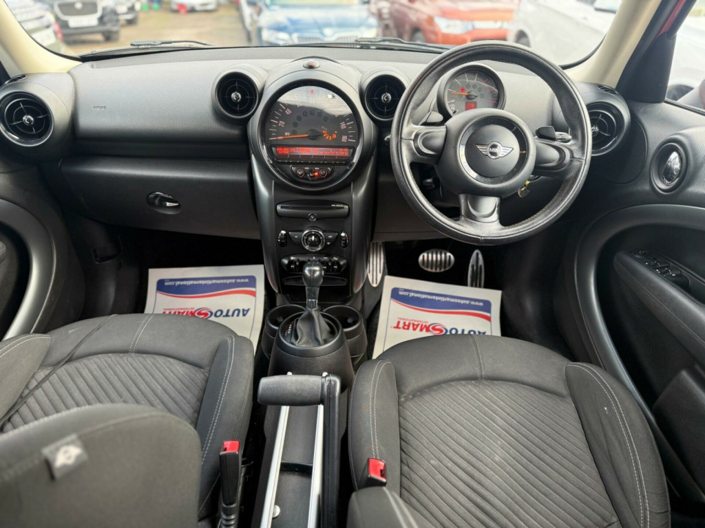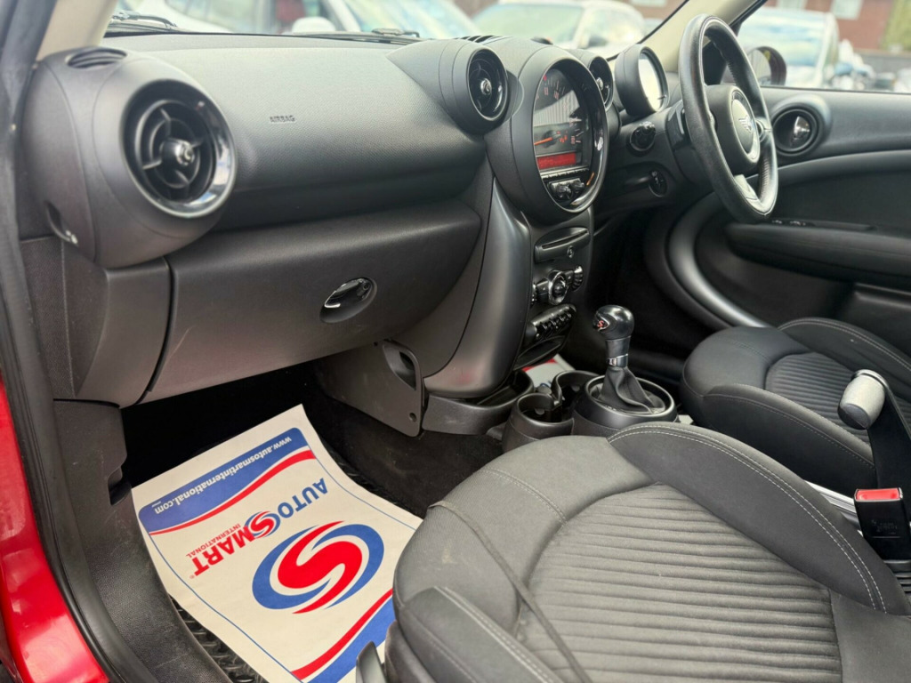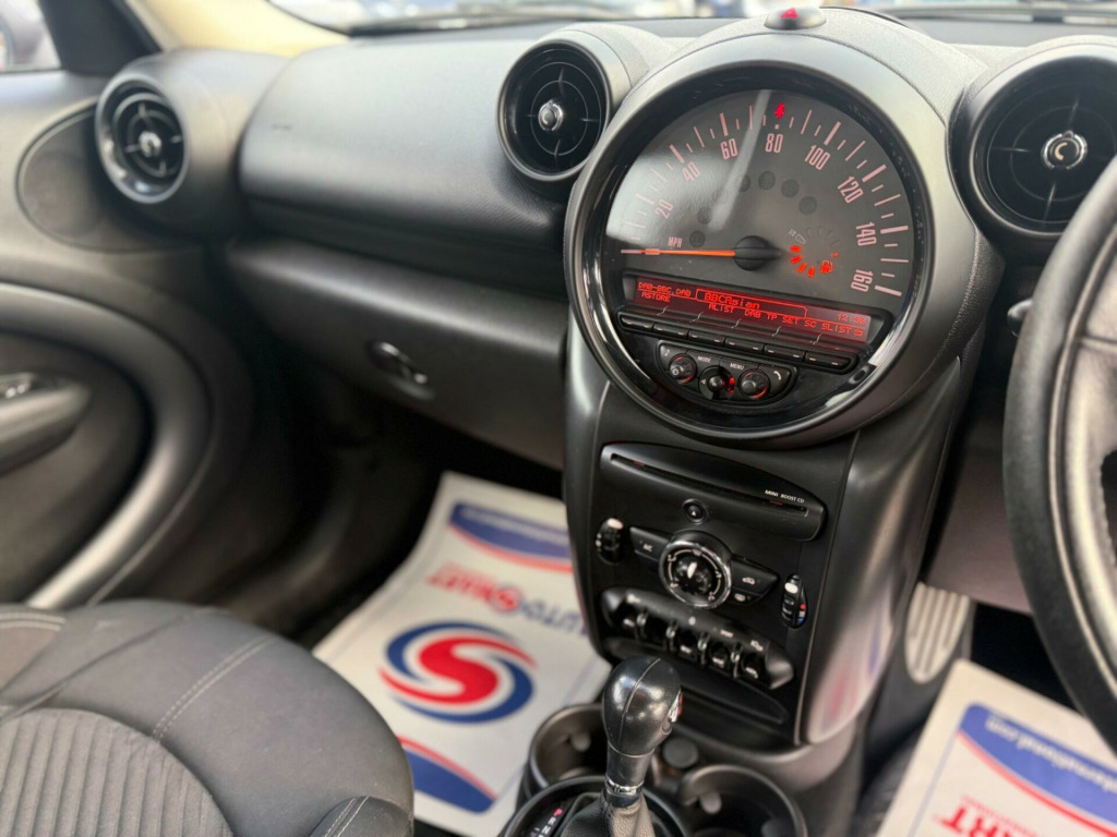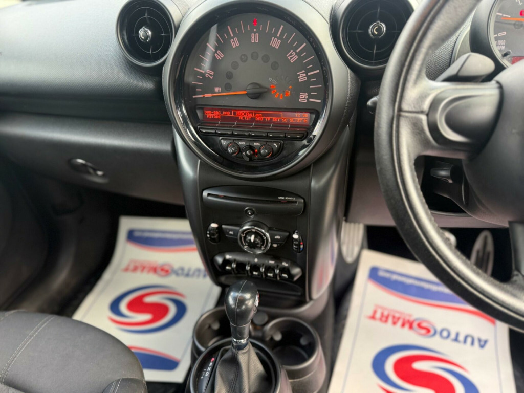 Discover this 2016 MINI Countryman Cooper SD, a robust and stylish compact SUV perfect for navigating both city streets and country lanes. Powered by an efficient 2.0 litre diesel engine, this model offers a compelling blend of performance and economy. It comes equipped with rear Park Distance Control, making parking in tighter spots a breeze, and manual air conditioning to keep you comfortable in all weather. For your entertainment and connectivity needs, enjoy the basic Bluetooth function with USB audio, allowing for seamless music streaming and handsfree calls.This MINI Countryman Cooper SD stands out with its practical features and reliable diesel performance. The inclusion of rear parking sensors is a significant advantage, offering greater confidence when manoeuvring. Combined with the ease of Bluetooth connectivity for your devices, this vehicle is designed for everyday convenience. Its well appointed interior and the characteristic MINI driving experience make it a sensible and enjoyable choice for any driver. in alloy wheels - 5-star double spoke light in black, interior world - carbon black, roof and mirror caps - black, diagonal track cloth - carbon black, 17in alloy wheels - 5-star double spoke light, 3-spoke sport leather steering wheel with gearshift paddles, 3rd brake light, air conditioning - manual, air scoop integrated between bumper and radiator grille-frame in body colour, airbags - driver, airbags - front passenger, airbags - front passenger with deactivation switch, airbags - front side, airbags - head, alarm - thatcham cat1, anti-lock braking system - abs, aux-in connection, basic bluetooth function with usb audio, bike rack preparation at rear, brake assist, brake pad wear indicator, cbc - cornering brake control, car jack, central bass hi-fi system, central locking - activated at 10mph, central locking - remote, centre rail, child seat isofix attachment, cooled glovebox, cupholders - two in front, dab tuner, dtc - dynamic traction control, door handles - chrome plated, door handles - interior - chrome plated, door mirrors - electrically adjustable and heated, dynamic stability control - dsc, ebd - electronic brake-force distribution, electric windows - one touch up and down front and rear, electronic power steering, embellisher at bottom edge of all windows - chrome plated, exhaust tailpipe - visible double round left and right with chrome finishers, footrest and pedals in stainless steel, frame chrome-plated radiator-grille in honeycomb black, grab handles, halogen lights for low beam and high beam headlights, headlight - beam-throw control electrical with manual adjustment, headlights - chrome bezels, headlights - follow me home, headlining - beige, heated front windscreen washer jets, hill assist, interior surfaces - dark anthracite decorative trim finishers on centre console and door ring, interior lights - integrated into centre front headliner including two reading lights, lashing eyes in luggage compartment, mini mobility system, minimalism fuel saving technology, microfilter, mirror caps in body colour, pdc - park distance control - rear, radio boost cd, roof rails - dark anthracite, roof in body colour, seats - 40:20:40 split rear backrests, seats - height adjustable drivers, seats - sports front, second radio remote key, security locking wheel bolts, side scuttles with integrated indicators, spoiler - roof, sport button, steering column height and length adjustment, sun visors with integrated vanity mirrors on drivers and passengers sides, tpws - tyre pressure warning system, white direction indicators lights