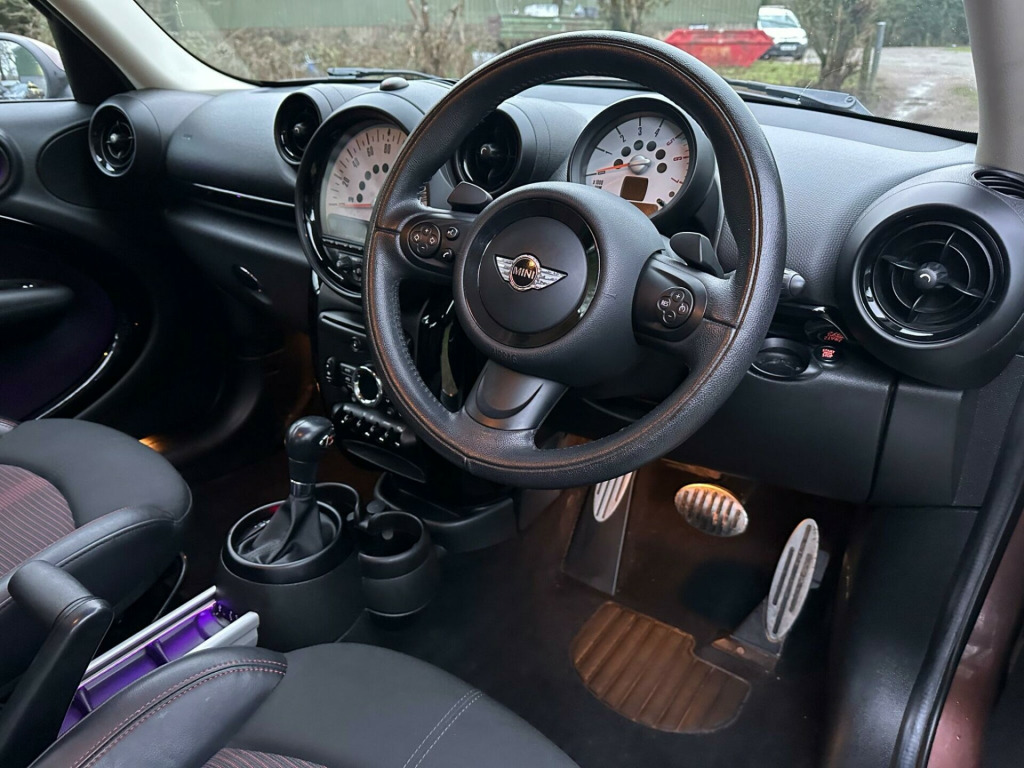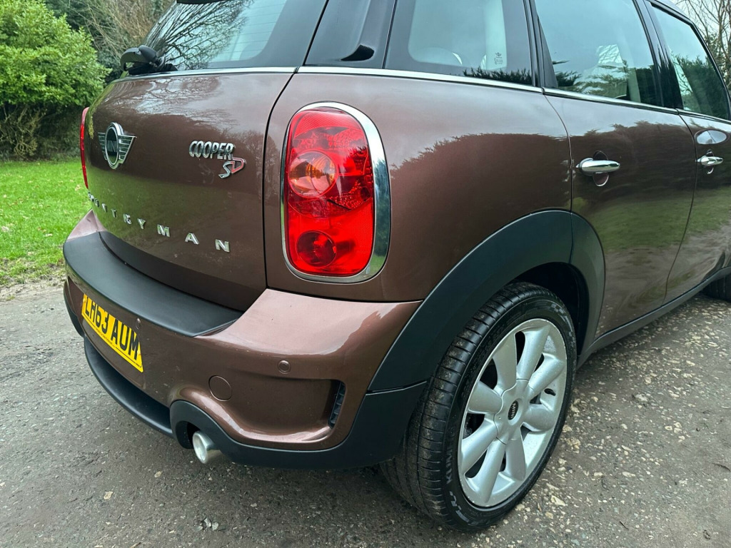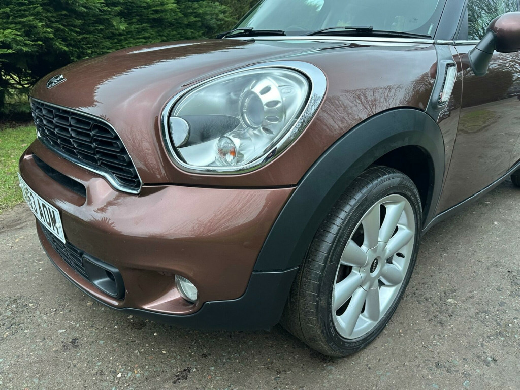 JUST ARRIVED!!This MINI Countryman 2.0 Cooper SD Auto Euro 5 5door in Brilliant Copper metallic. It's a 3 Owner car (last owner has had it nearly 10 years) in excellent condition and comes with a Full Service History totalling x12 Services. The car was last Serviced in April 25 74,225 miles, it has a new MOT with NO Advisories. It has a great specification that includes Half Leather Seats, 18in Alloys, Chilli Pack, DAB, Cruise Control, Air Conditioning, Bluetooth, Rear Parking Sensors, Bi-Xenon's Headlights, Interior Light Pack to name just a few. It is supplied with 2 keys, 6 Months RAC Warranty and 12 Months Breakdown Cover.Competitive finance packages arranged with rates starting from 9.9% APR (Subject to status).Part exchange welcome. HPI Clear. Call now to arrange a viewing. ili pack, 18in alloy wheels - turbo fan light, headlights - bi-xenon, air conditioning - automatic, multifunction controls for steering wheel, interior light pack, front fog lights, dashboard trim - piano black, rain sensor and automatic headlight activation, door ellipse and downtubes - piano black, storage compartment pack, colour line - carbon black, interior world - carbon black, cloth-leather parallel lines - pure red, 3 seat rear bench, 3-spoke sport leather steering wheel, 3-spoke sport leather steering wheel with gearshift paddles, 3rd brake light, 6 speakers system, asc+t - automatic stability control and traction, air conditioning - manual, air scoop integrated between bumper and radiator grille-frame in body colour, airbags - driver, airbags - front passenger, airbags - front passenger with deactivation switch, airbags - front side, airbags - head, anti-lock braking system - abs, aux-in connection, basic bluetooth function with usb audio, bike rack preparation at rear, brake assist, brake energy regeneration- igr, brake pad wear indicator, cbc - cornering brake control, car jack, central bass hi-fi system, central locking - remote, centre rail, child seat isofix attachment, crash sensor - fuel cut-off, crash sensor - hazard warning flashers and interior light, crash sensor - unlocking doors, cruise control, cupholders - two in front, dab tuner, dtc - dynamic traction control, door handles - chrome plated, door handles - interior - chrome plated, door mirrors - electrically adjustable and heated, door sill finishers - metal look and model dependent lettering, dynamic stability control - dsc, ebd - electronic brake-force distribution, electric windows - one touch up and down front and rear, electronic power steering, embellisher at bottom edge of all windows - chrome plated, exhaust tailpipe - visible double round left and right with chrome finishers, footrest and pedals in stainless steel, frame chrome-plated radiator-grille in honeycomb black, gearshift paddles, gearshift and selector lever gaiters in artificial leather, grab handles, halogen lights for low beam and high beam headlights, handbrake-lever grip plastic with central push button on underside of lever, headlight - beam-throw control electrical with manual adjustment, headlights - chrome bezels, headlights - follow me home, headlining - beige, headrests for all seats - manually adjustable, heated rear window with automatic deactivation, hill assist, interior mirror - mechanical anti-dazzle, interior surfaces - dark anthracite decorative trim finishers on centre console and door ring, interior lights - integrated into centre front headliner including two reading lights, lashing eyes in luggage compartment, luggage compartment - light, mini mobility system, minimalism fuel saving technology, microfilter, multi-link rear axle, non smoker package, pdc - park distance control - rear, personal profile functions for each remote key, radiator grille - honeycomb-black with chrome surround, radio boost cd, rev counter, roof rails - dark anthracite, roof in body colour, seats - 40:20:40 split rear backrests, seats - height adjustable drivers, seats - sports front, second radio remote key, security locking wheel bolts, side scuttles with integrated indicators - white indicators and s designation at the air inlets, sills-bumper edges-wheel arches - black with model-specific bumper trims, single joint spring strut front axle, speedometer centred in instrument panel, spoiler - roof, sport button, steering column height and length adjustment, storage options in the trim panels of each front panel as well as centre console, sun visors with integrated vanity mirrors on drivers and passengers sides, tpws - tyre pressure warning system, tailgate release incorporated within mini badge, white direction indicators lights