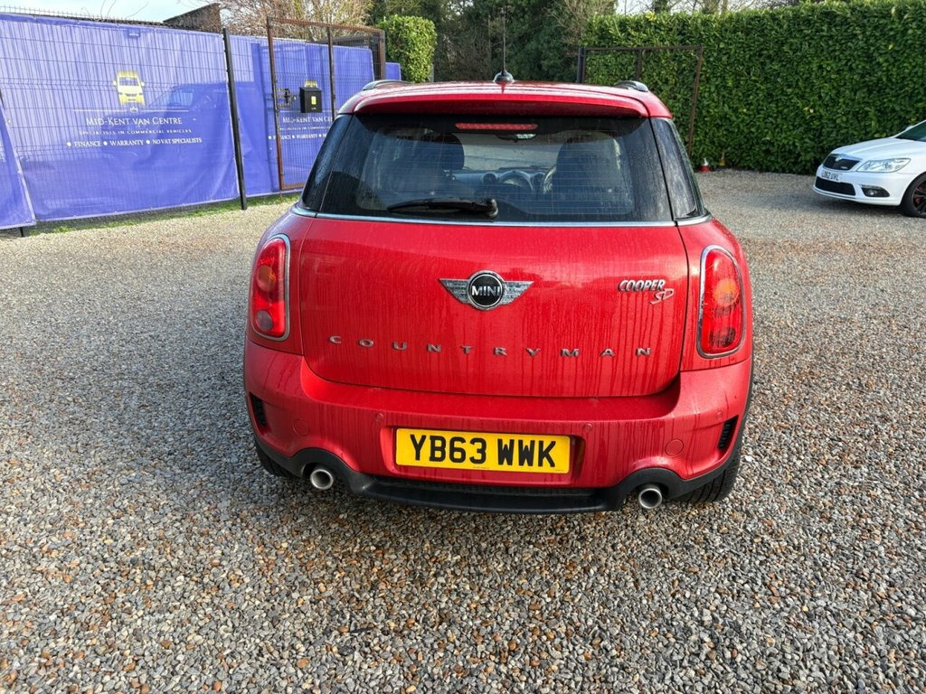 HERE AT MID-KENT VAN CENTRE WE ARE DELIGHTED TO OFFER THIS MINI COUNTRYMAN 2.0 Cooper SD SUV 5dr Diesel Manual Euro 5 (s/s) (143 ps) WITH AROUND ONLY 99,999 MILES FROM NEW. ****** ALL VEHICLES ARE SUPPLIED BY US. WE TAKE HUGE PRIDE IN OUR VEHICLES AND FOCUS ON ENSURING OUR CUSTOMERS RECEIVE THE VERY BEST SERVICE. ****** THIS VEHICLES COMES INCLUSIVE OF A 3-MONTH STANDARD WARRANTY WITH THE OPTION TO UPGRADE TO EITHER A 12 MONTH OR 24 MONTH PREMIUM WARRANTY PACKAGE. ****** WE ACCEPT PART EXCHANGE ON ANY VEHICLE AND OFFER GREAT FINANCE PACKAGES. PLEASE CALL A MEMBER OF OUR SALES TEAM NOW FOR MORE INFORMATION. 17in Alloy Wheels - 5-Star Double Spoke , 3-Spoke Sport Leather Steering Wheel, 3rd Brake Light, ASC+T - Automatic Stability Control and , Air Conditioning - Manual, Air Scoop Integrated between Bumper and , Airbags - Driver, Airbags - Front Passenger, Airbags - Front Passenger with Deactivat, Airbags - Front Side, Airbags - Head, Alarm - Thatcham CAT1, Anti-Lock Braking System - ABS, Aux-In Connection, Basic Bluetooth Function with USB Audio, Bike Rack Preparation at Rear, Brake Assist, Brake Pad Wear Indicator, CBC - Cornering Brake Control, Car Jack, Central Bass Hi-Fi System, Central Locking - Activated At 10mph, Central Locking - Remote, Centre Rail, Child Seat ISOFIX Attachment, Cooled