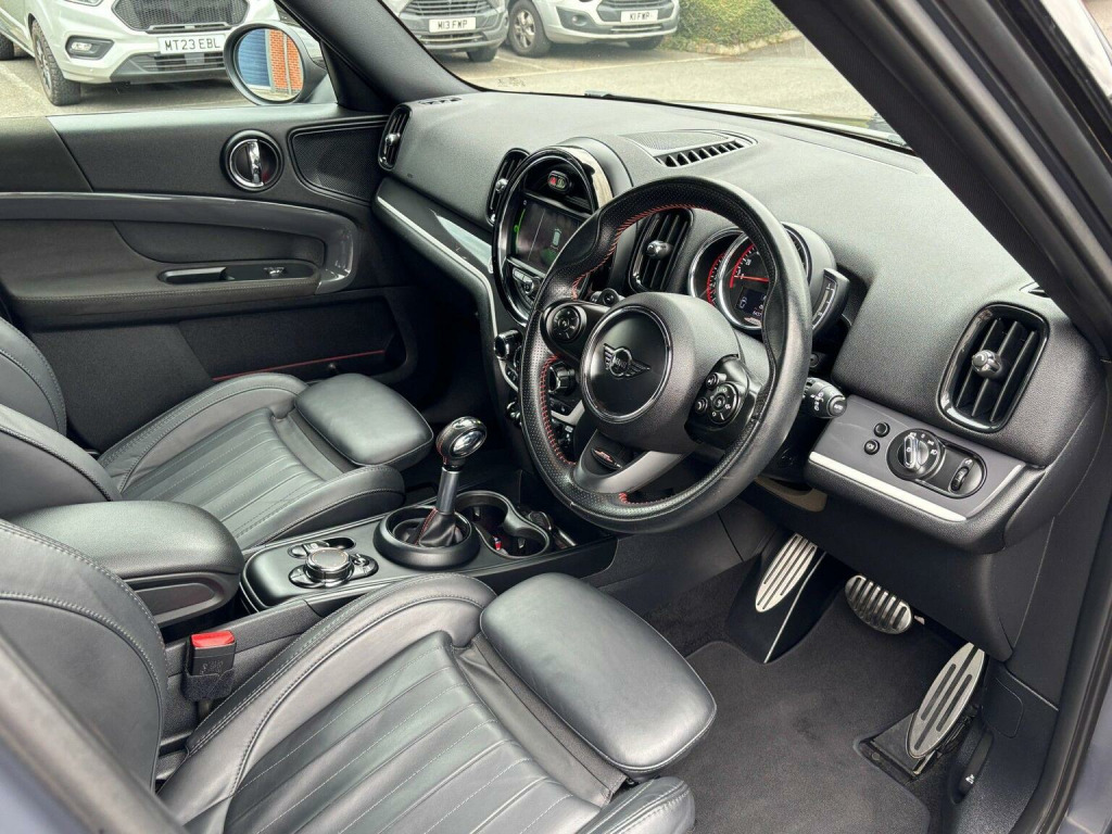 SP Cars are thrilled to offer this 2018 MINI Countryman 2.0 John Cooper Works Auto ALL4 Euro 6 (s/s) 5dr 4x4 SUV presented in rare Thunder Grey. Just two previous owners from new with full Mini service history. Last serviced at 59,861 miles. Hpi Clear. 12 months MOT issued upon sale. All part exchanges considered. EURO 6 Emissions and ULEZ Compliant. Please contact us directly for any further information or if you wish to reserve any of our vehicles. Check out our 5* reviews and a full walkaround video on our website www.spcars.net. We are FCA regulated and can arrange competitive finance packages to suit your needs. We have the V5, complete handbook pack, 2 keys, locking wheel nut, tool kit and 1st Aid kit. Viewing is by appointment only please. Please ring before travelling to avoid disappointment. This Stunning And High Spec Mini Has, Satellite Navigation Plus, MINI Excitement Pack, 19 JCW Alloys, Chili Pack, Wireless Charging, Apple Carplay/Android Audio, Bluetooth Hands Free Function with USB Audio, DAB Tuner, Full Black Mini Yours Lounge Leather, Heated Seats, Media Pack XL, PDC - Park Distance Control - Rear, Cruise Control with Brake Function, Connected XL, MINI Driving Modes, Brembo 4 Piston Front Brake Callipers with 350mm Brake Discs, John Cooper Works Aerodynamic Kit, John Cooper Works Front and Rear Bumpers, Air Conditioning - Manual, John Cooper Works Sport Seats, Start-Stop Button with Keyless Start, MINI Connected, Follow Me Home Function, Personal Profile, Child Seat ISOFIX Attachment, Comfort Access System, Anti-Lock Braking System - ABS, DTC - Dynamic Traction Control with EDLC - Electronic Differential Lock Control, Daytime Driving Lights, Dynamic Stability Control - DSC, Exterior Mirrors - Aspheric on Drivers Side - Electrically Adjustable, Front Passenger ISOFIX and Airbag De-Activation Switch, Foldable Rear Backrest 40:20:40, John Cooper Works Roof Spoiler, Visual Boost Radio, John Cooper Works Leather Steering Wheel, Interior Light Pack, LED Headlights with Cornering Lights, MINI Mobility System