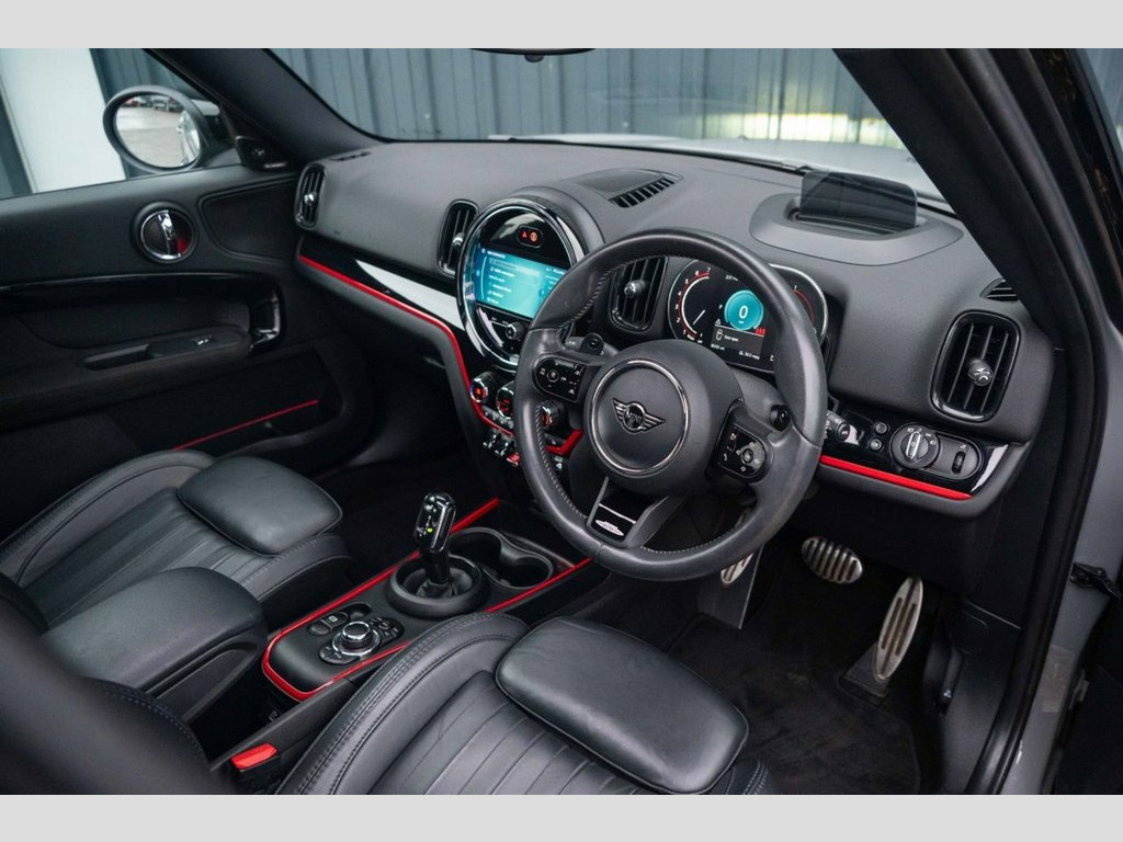 Huge Spec 2022/72 plate Mini Countryman 2.0 John Cooper works All4 Finished in Moonwalk Grey with 18" Gloss Black Alloys and Red Brake Calipers. Heated windscreen, Adaptive Cruise Control, Panoramic glass sunroof, Roof Rails, Navigation pack, Heated Seats, Reverse camera, Gloss black exterior trims, Red brake callipers, 18-inch JCW alloys, plus more 1 Owner from New + Full Mini Service History + Mini Warranty can be extended with Mini at £54.00 pcm with £100 excess which includes Roadside Assistance Specification Includes: £Interior Trim - MINI Yours - Piano Black Illuminated - £250.00 £18in Alloy Wheels - John Cooper Works Grip Spoke in Black with Run-Flat Tyres - £200.00 £Adaptive LED Headlights - £500.00 £Darkened Rear Glass - £300.00 £MINI Yours Lounge Leather - Carbon Black - £500.00 £Moonwalk Grey - £595.00 £Premium Plus Pack - £3300.00 Interior Trim - MINI Yours - Piano Black, 18in Alloy Wheels - John Cooper Works Gr, Adaptive LED Headlights, Darkened Rear Glass, MINI Yours Lounge Leather - Carbon Black, Moonwalk Grey, Premium Plus Pack