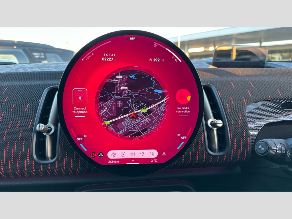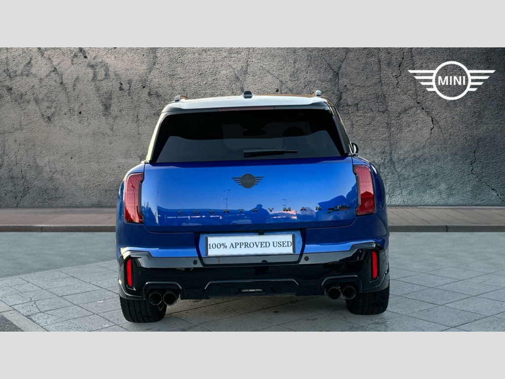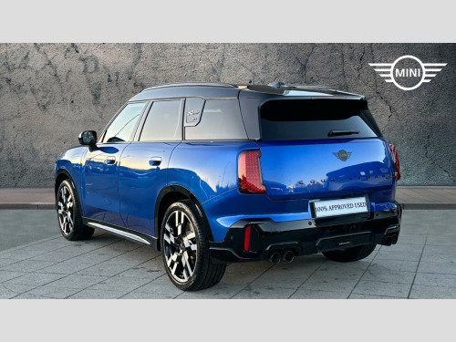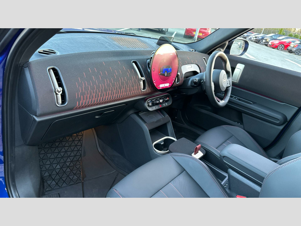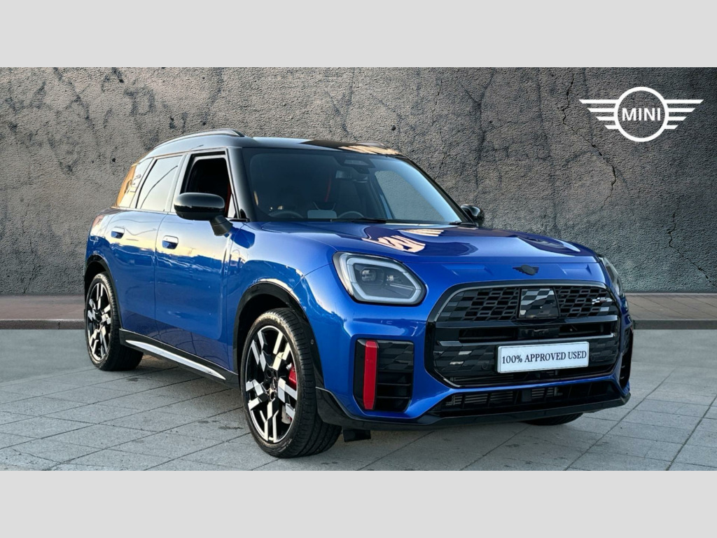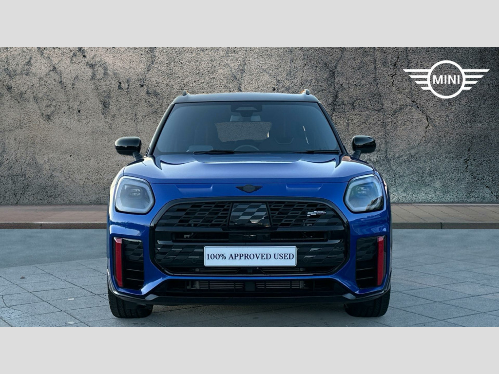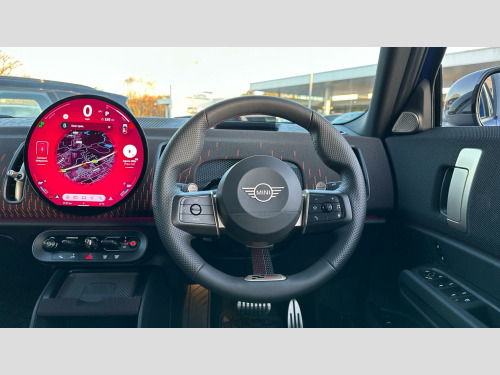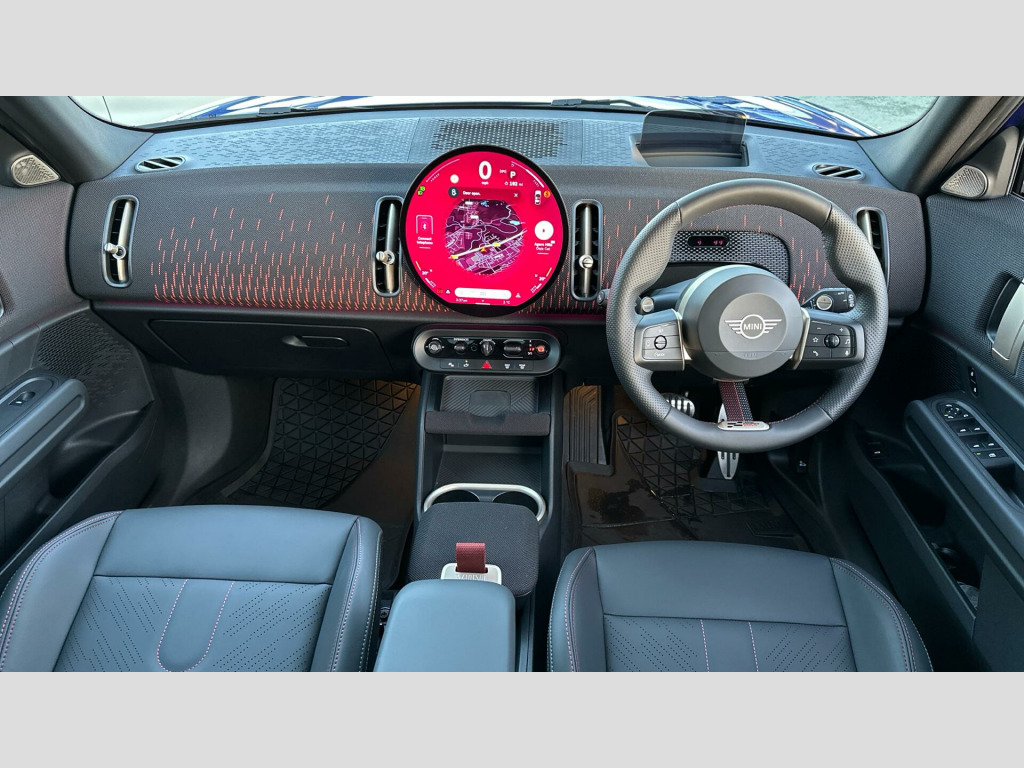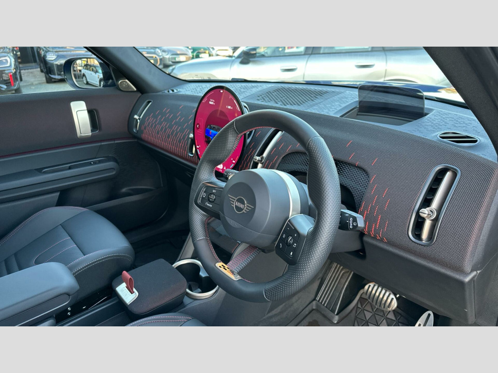 This 2025 MINI Countryman John Cooper Works is a superb example, having had only one owner from new. It boasts a powerful 2.0 litre petrol engine paired with a four wheel drive system, ensuring excellent performance and grip in all conditions. As a Euro 6 compliant vehicle, it meets modern emission standards. The John Cooper Works trim level enhances its sporty appeal and driving dynamics.This Countryman is equipped with the comprehensive Level 3 Pack, which includes adaptive cruise control for relaxed journeys, a head up display to keep your eyes on the road, and automatic LED headlights that activate with a rain sensor. Keyless entry adds convenience, while the opening panoramic sunroof floods the cabin with light. Parking is made easier with front camera and sensor assistance, and you can enjoy your favourite music through the premium branded sound system. Comfort is assured with heated and memory seats, and the automatic climate control keeps the cabin at the perfect temperature. Furthermore, it features Bluetooth connectivity and wireless phone charging. The impressive acceleration of 0 to 62mph in just 5.4 seconds highlights its dynamic capabilities, and the large boot space offers practicality for all your needs.. 19in Alloy Wheels - JCW Runaway Spoke - Jet Black, 60-40 Rear Seat Bench, Adaptive Suspension, Air Conditioning - Automatic, Airbags - Driver, Airbags - Front Passenger, Alarm System, Anthracite Headlining, Anti-Lock Braking System - ABS, Automatic Operation of Tailgate, Bluetooth Connection, Central Locking - Remote, Child Locks - Manual, Circular OLED Screen, Cruise Control, DAB Digital Radio, DTC - Dynamic Traction Control, Dashboard Knit - JCW - Black - Red, Driving Assistant, ESP - Electronic Stability Programme, Electric Windows - Front and Rear, Electronic Handbrake, Electronic Power Steering, Electronic Vehicle Immobiliser, Floor Mats, Front Armrest, Front Passenger ISOFIX, Front and Rear Apron, Gearshift Paddles, Harman Kardon Surround Sound System, Heated Steering Wheel, High Gloss Hexagonal Patterned Grill Surround, Hill Hold and Start Assistance, Interior Lights Pack, JCW Sport Brake, JCW Sport Brake with Red Calipers, JCW Sports Seats, Level 1 Pack, Lidded Storage Box in Black-Red Knit, Locking Wheel Bolts, MINI E-Call, MINI Experience Modes, MINI Mobility System, MINI Navigation System, Parking Assistant, Parking Distance Control, Perforated Vescin Steering Wheel, Quad Exhaust System, Rain Sensor and Automatic Headlight Activation, Rear Spoiler with Airblades, Rear View Camera, Roof Rails, Roof in Body Colour, Steering Column Height and Length Adjustment, Teleservices, Tyre Pressure Monitoring System, Warning Triangle, Level 3 Pack, 20in Alloy Wheels - JCW Flag Spoke 2 Tone - Jet Black, Vescin-Cloth Combination - JCW Black.