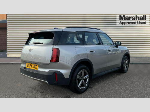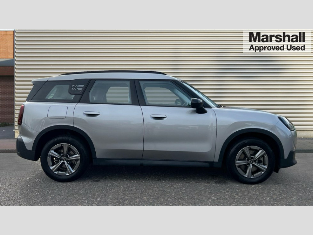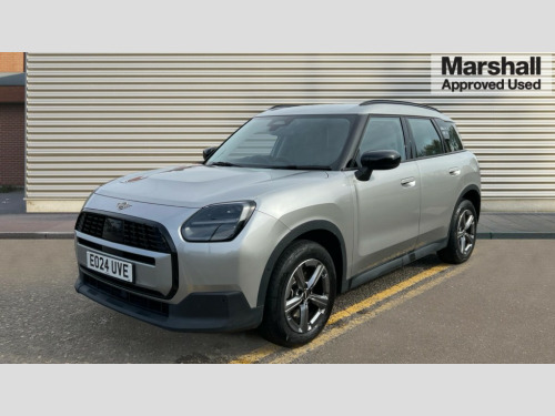 MINI Countryman 1.5 C Classic 5dr Auto Bluetooth connection, Circular OLED Screen, Compatible mobile phone bluetooth with audio streaming, Cruise Control (DCC), Digital dashboard display, E-call, Electro-mechanical speed dependant steering assistance, MINI Experience Modes, Mini navigation system, MINI TeleServices, Parking assistant in camera and ultrasound based assistance system, rear view camera, parking aid and distance control, Auto transmission with Paddles, 6 speakers, DAB Digital radio, Auto tailgate, Electric adjustable heated door mirrors, Front and rear electric windows, Heated rear window, LED daytime running lights, LED Headlights, LED rear lights, LED third brake light, Rain sensor with auto headlights, Rear side wing doors, Rear window wiper, Roof rails, 3 seat bench in 2nd row, 60/40 split rear bench seat, Auto air conditioning, Floor mats, Front armrest, Front headrests, Heated steering wheel, Height and length steering column adjustment, Light headliner, Rear headrests, Single front passenger seat, Sport Vescin Steering Wheel, Sunvisors with vanity mirrors, Vescin/Cloth upholstery, 3x3 point rear seat belts, 6 Airbags - front, side, head and seat belt tensioners, ABS, DSC - Dynamic Stability Control, Electronic handbrake, Electronic Stability Programme (ESP), Front ISOFIX (iSize), Hill hold assist, Hill start assist, Manual rear child locks, Traction control, Tyre pressure monitoring system, Warning triangle, Alarm system with tilt sensor, monitoring doors, bonnet interior and tailgate, Auto drive away locking, Deadlocking function, Electronic vehicle immobiliser, Locking wheel bolts, Remote control locking, Start/stop toggle with keyless go, Black/Blue dashboard knit, MINI Mobility Kit