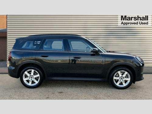 MINI Countryman 1.5 C Classic 5dr Auto Bluetooth connection, Circular OLED Screen, Compatible mobile phone bluetooth with audio streaming, Cruise Control (DCC), Digital dashboard display, E-call, Electro-mechanical speed dependant steering assistance, MINI Experience Modes, Mini navigation system, MINI TeleServices, Parking assistant in camera and ultrasound based assistance system, rear view camera, parking aid and distance control, Auto transmission with Paddles, 6 speakers, DAB Digital radio, Auto tailgate, Electric adjustable heated door mirrors, Front and rear electric windows, Heated rear window, LED daytime running lights, LED Headlights, LED rear lights, LED third brake light, Rain sensor with auto headlights, Rear side wing doors, Rear window wiper, Roof rails, 3 seat bench in 2nd row, 60/40 split rear bench seat, Auto air conditioning, Floor mats, Front armrest, Front headrests, Heated steering wheel, Height and length steering column adjustment, Light headliner, Rear headrests, Single front passenger seat, Sport Vescin Steering Wheel, Sunvisors with vanity mirrors, Vescin/Cloth upholstery, 3x3 point rear seat belts, 6 Airbags - front, side, head and seat belt tensioners, ABS, DSC - Dynamic Stability Control, Electronic handbrake, Electronic Stability Programme (ESP), Front ISOFIX (iSize), Hill hold assist, Hill start assist, Manual rear child locks, Traction control, Tyre pressure monitoring system, Warning triangle, Alarm system with tilt sensor, monitoring doors, bonnet interior and tailgate, Auto drive away locking, Deadlocking function, Electronic vehicle immobiliser, Locking wheel bolts, Remote control locking, Start/stop toggle with keyless go, Black/Blue dashboard knit, MINI Mobility Kit