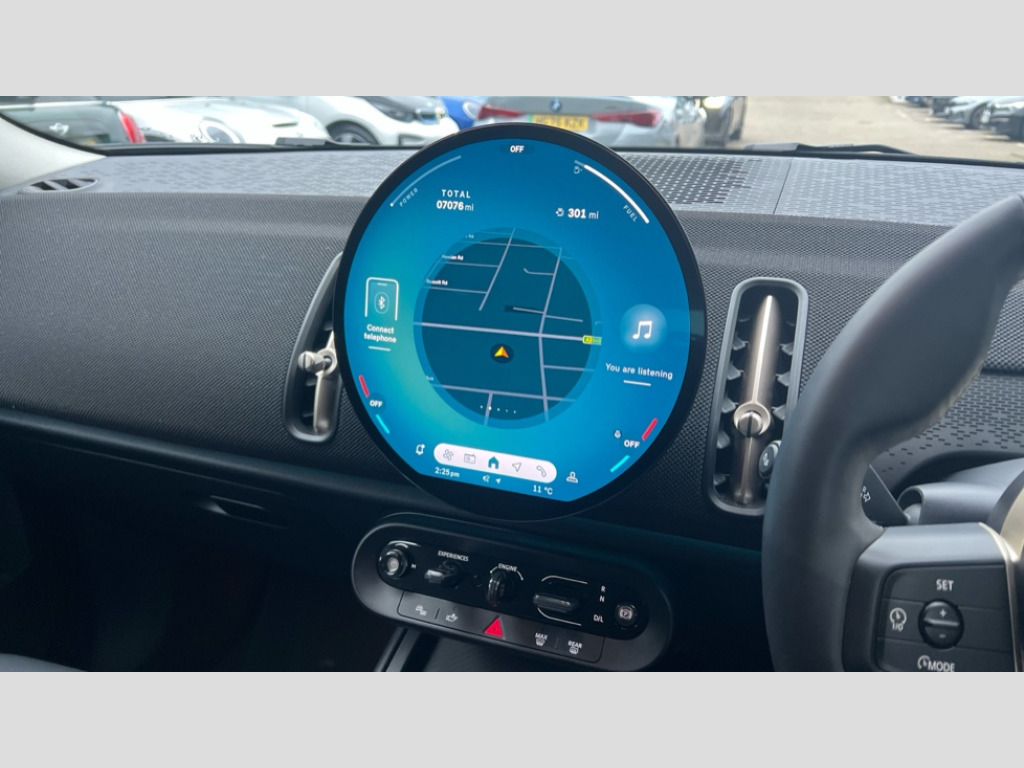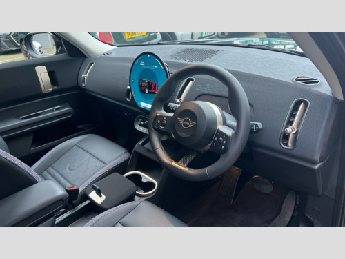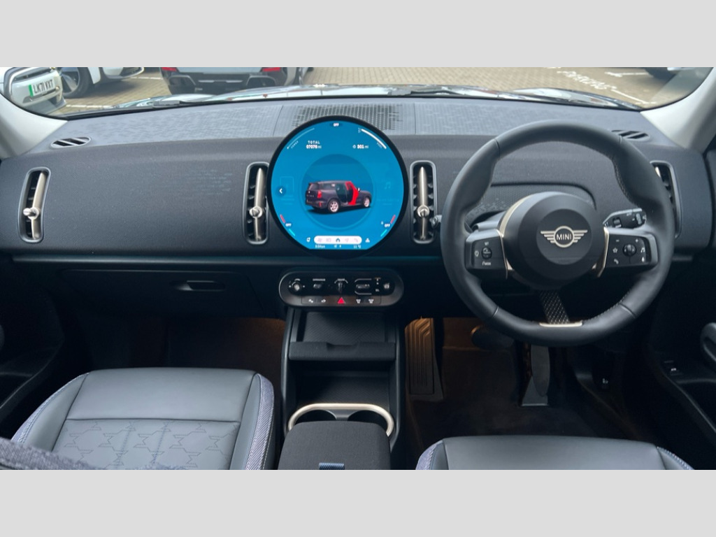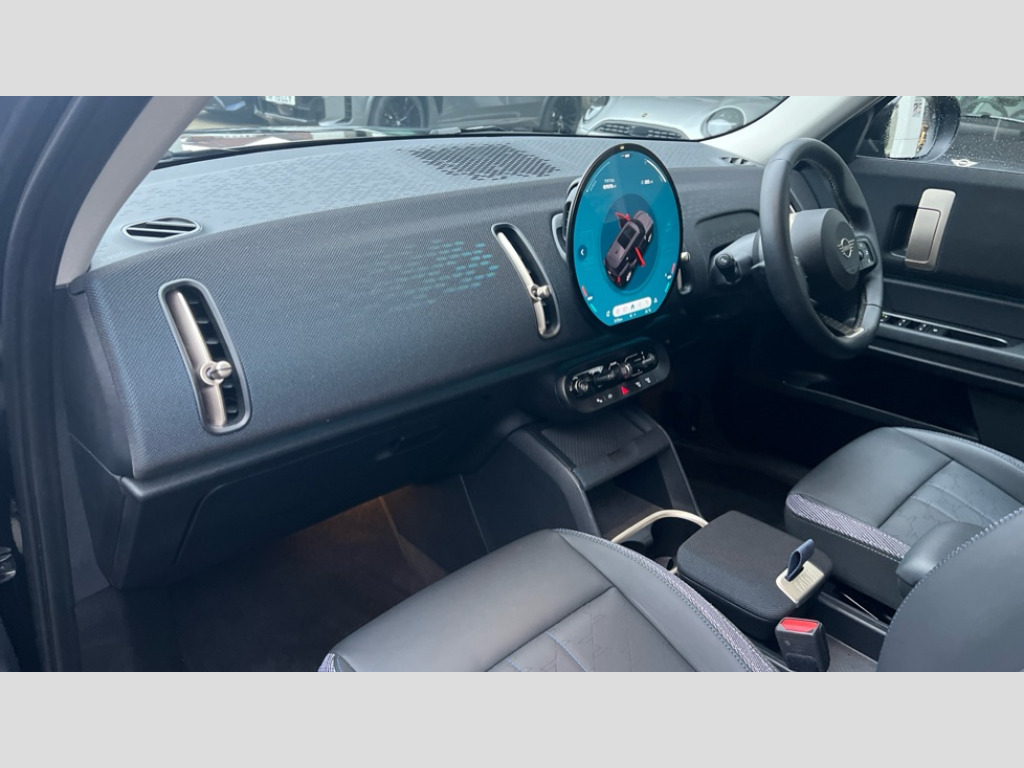 MINI Countryman 1.5 C Classic 5dr Auto Bluetooth connection, Circular OLED Screen, Compatible mobile phone bluetooth with audio streaming, Cruise Control (DCC), Digital dashboard display, Driving assistant, E-call, Electro-mechanical speed dependant steering assistance, MINI Experience Modes, Mini navigation system, MINI TeleServices, Parking assistant in camera and ultrasound based assistance system, rear view camera, parking aid and distance control, Auto transmission with Paddles, Larger capacity fuel tank, 6 speakers, DAB Digital radio, Personal eSim, Auto tailgate, Electric adjustable heated door mirrors, Front and rear electric windows, Heated rear window, LED daytime running lights, LED Headlights, LED rear lights, LED third brake light, Rain sensor with auto headlights, Rear side wing doors, Rear window wiper, Roof rails, 3 seat bench in 2nd row, 60/40 split rear bench seat, Auto air conditioning, Floor mats, Front armrest, Front headrests, Heated steering wheel, Height and length steering column adjustment, Light headliner, Rear headrests, Single front passenger seat, Sport Vescin Steering Wheel, Sunvisors with vanity mirrors, Vescin/Cloth upholstery, 3x3 point rear seat belts, 6 Airbags - front, side, head and seat belt tensioners, ABS, DSC - Dynamic Stability Control, Electronic handbrake, Electronic Stability Programme (ESP), Front ISOFIX (iSize), Hill hold assist, Hill start assist, Manual rear child locks, Traction control, Tyre pressure monitoring system, Warning triangle, Alarm system with tilt sensor, monitoring doors, bonnet interior and tailgate, Auto drive away locking, Deadlocking function, Electronic vehicle immobiliser, Locking wheel bolts, Remote control locking, Start/stop toggle with keyless go, Black/Blue dashboard knit, MINI Mobility Kit