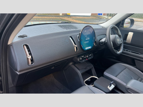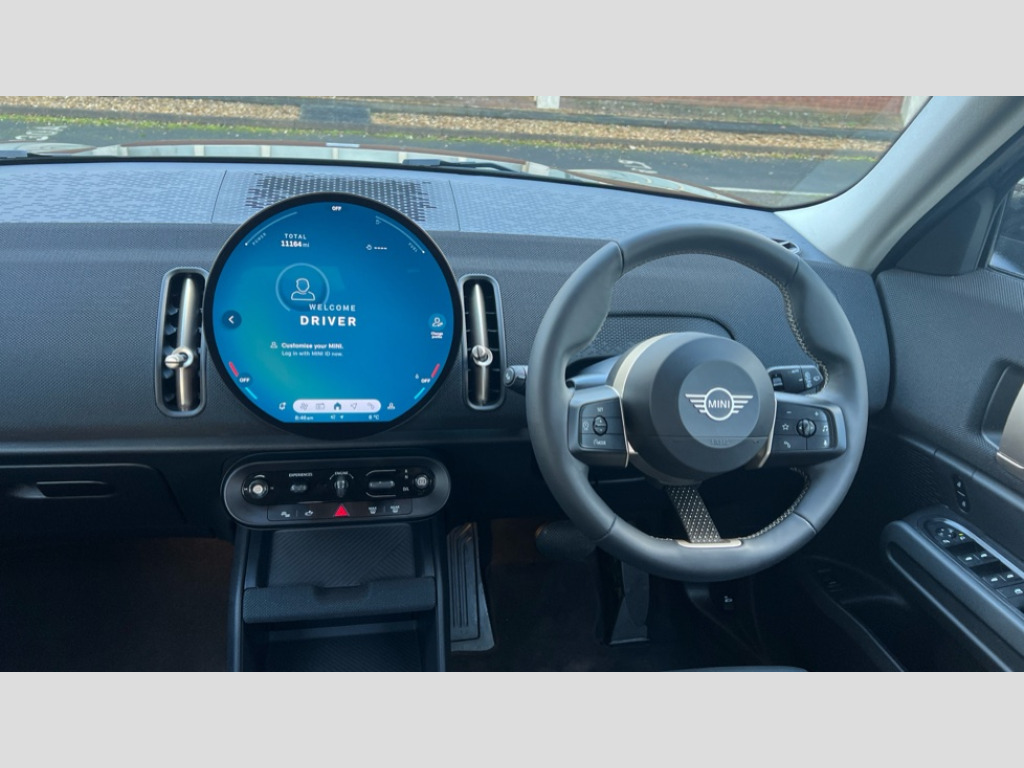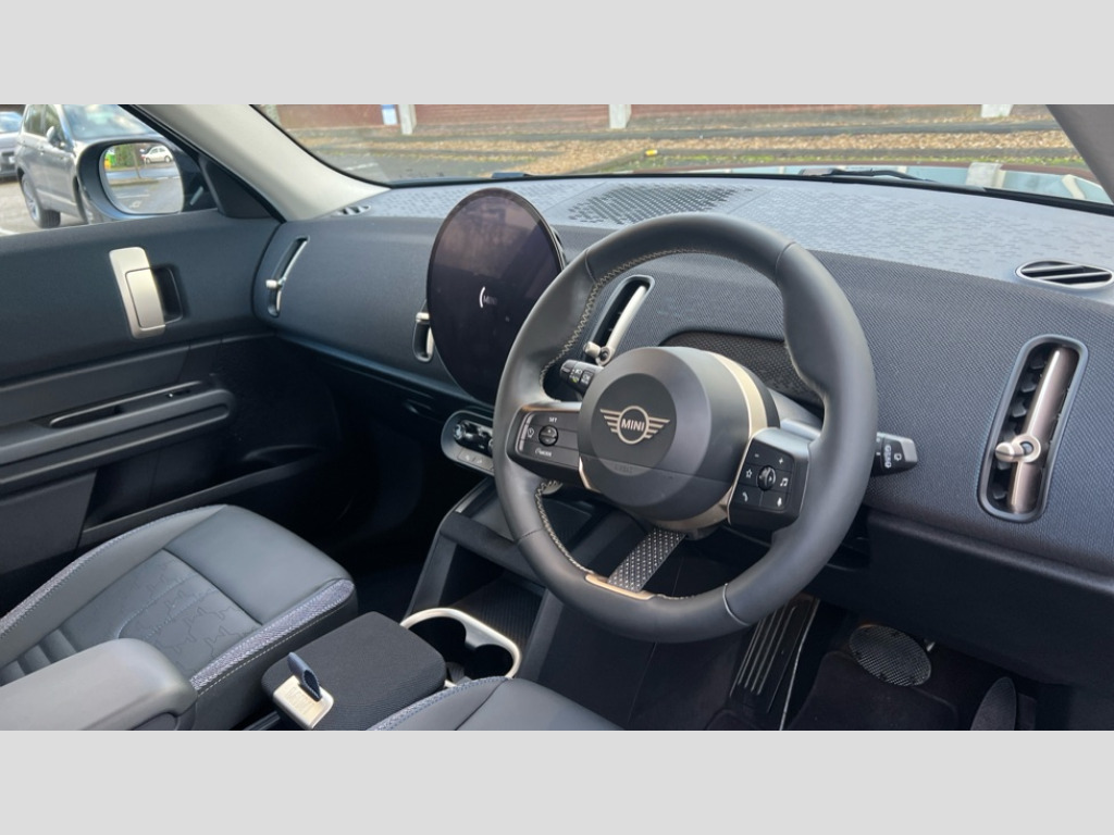 MINI Countryman 1.5 C Classic 5dr Auto Bluetooth connection, Circular OLED Screen, Compatible mobile phone bluetooth with audio streaming, Cruise Control (DCC), Digital dashboard display, Driving assistant, E-call, Electro-mechanical speed dependant steering assistance, MINI Experience Modes, Mini navigation system, MINI TeleServices, Parking assistant in camera and ultrasound based assistance system, rear view camera, parking aid and distance control, Auto transmission with Paddles, Larger capacity fuel tank, 6 speakers, DAB Digital radio, Personal eSim, Auto tailgate, Electric adjustable heated door mirrors, Front and rear electric windows, Heated rear window, LED daytime running lights, LED Headlights, LED rear lights, LED third brake light, Rain sensor with auto headlights, Rear side wing doors, Rear window wiper, Roof rails, 3 seat bench in 2nd row, 60/40 split rear bench seat, Auto air conditioning, Floor mats, Front armrest, Front headrests, Heated steering wheel, Height and length steering column adjustment, Light headliner, Rear headrests, Single front passenger seat, Sport Vescin Steering Wheel, Sunvisors with vanity mirrors, Vescin/Cloth upholstery, 3x3 point rear seat belts, 6 Airbags - front, side, head and seat belt tensioners, ABS, DSC - Dynamic Stability Control, Electronic handbrake, Electronic Stability Programme (ESP), Front ISOFIX (iSize), Hill hold assist, Hill start assist, Manual rear child locks, Traction control, Tyre pressure monitoring system, Warning triangle, Alarm system with tilt sensor, monitoring doors, bonnet interior and tailgate, Auto drive away locking, Deadlocking function, Electronic vehicle immobiliser, Locking wheel bolts, Remote control locking, Start/stop toggle with keyless go, Black/Blue dashboard knit, MINI Mobility Kit