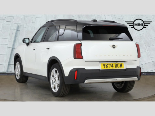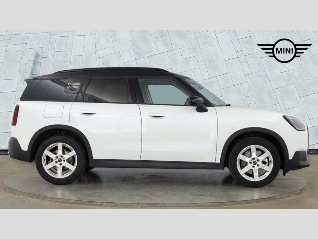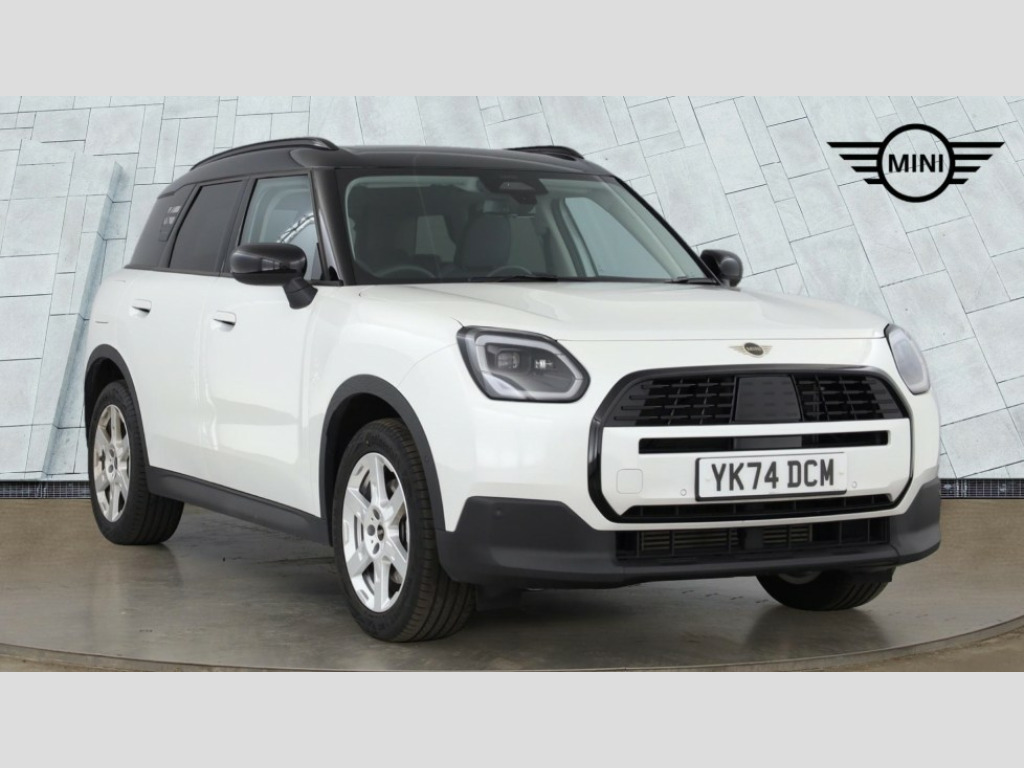 MINI Countryman 1.5 C Classic 5dr Auto Bluetooth connection, Circular OLED Screen, Compatible mobile phone bluetooth with audio streaming, Digital dashboard display, E-call, Electro-mechanical speed dependant steering assistance, MINI Experience Modes, MINI Head up display, Mini navigation system, MINI TeleServices, Parking assistant in camera and ultrasound based assistance system, rear view camera, parking aid and distance control, Auto transmission with Paddles, Larger capacity fuel tank, DAB Digital radio, Harman Kardon surround sound system, Personal eSim, Auto tailgate, Darkened rear glass, Electric adjustable heated door mirrors, Front and rear electric windows, Heated rear window, High beam assistant, Interior rear-view mirror with automatic anti-dazzle function, LED daytime running lights, LED headlights with extended contents including Adaptable light signatures, LED rear lights, LED third brake light, Opening panoramic roof with slide and tilt functionality, Retractable sun shade with fully opaque fabric, Rain sensor with auto headlights, Rear side wing doors, Rear window wiper, Roof rails, Sun protection glazing, 3 seat bench in 2nd row, 60/40 split rear bench seat, Auto air conditioning, Driver and front passenger seat heating, Floor mats, Front armrest, Front headrests, Heated steering wheel, Height and length steering column adjustment, Light headliner, Luggage compartment separating net, Rear headrests, Seat adjustment for rear seats, Single front passenger seat, Sport Vescin Steering Wheel, Sunvisors with vanity mirrors, Vescin/Cloth upholstery, Wireless charging tray, Driving assistant plus pack - Mini Countryman, Interior and exterior mirror package - Mini Countryman, 3x3 point rear seat belts, 6 Airbags - front, side, head and seat belt tensioners, ABS, DSC - Dynamic Stability Control, Electronic handbrake, Electronic Stability Programme (ESP), Front ISOFIX (iSize), Hill hold assist, Hill start assist, Manual rear child locks, Traction control, Tyre pressure monitoring system, Warning triangle, Alarm system with tilt sensor, monitoring doors, bonnet interior and tailgate, Auto drive away locking, Comfort access system, Deadlocking function, Electronic vehicle immobiliser, Locking wheel bolts, Remote control locking, Start/stop toggle with keyless go, Black/Blue dashboard knit, MINI Mobility Kit