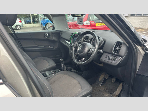 MINI Countryman 1.5 Cooper Classic 5dr Active Guard incl speed limiting and lane departure functions with auto steering, and front collision warning with brake intervention, Automatic start/stop function with brake energy recuperation, Electro-mechanical speed dependant steering assistance, Instrument cluster, Mini E-call, MINI TeleServices, On board computer, Rear parking distance control, Double Vanos system, Fully variable valve control, High precision injection, FM tuner and DAB digital radio, Body colour fuel filler cap, Day time driving lights, Door sill strips, Dynamic brake lights, Electric windows, Heated rear window, Heated windscreen washer jets, Left exhaust tailpipe with chrome finisher, Model logo, Model logo on Tailgate, Radiator grille, Rain sensor with auto headlights, Rear fog lights, Rear window wiper, Side scuttle panel with integrated indicator, Split rear doors, Sun/heat protection glass, White indicator lenses, 12V Accessory socket in centre console, 360L luggage compartment capacity, 4 lashing eyes in luggage compartment, 40:20:40 split folding rear seats, Chrome interior highlights, Colour line - Carbon black, Cupholders, English handbook, Front headrests, Glove compartment, Headliner with grab handles and clothes hooks, Height and length steering column adjustment, Interior lighting with 12 basic colours selectable via toggle switch in roof, Isofix rear child seat preparation, Leather gearshift lever and handbrake gaiters, LED reading lights, vanity mirror lights, front foot well light and spotlight on front seats, Manual air conditioning, Mechanical seat adjustment, driver seat height adjust, forward/back and front seats backrest, Multifunction steering wheel, Passenger seat height adjuster, Rear headrests, Storage compartments in doors, Sunvisors with vanity mirrors, Excitement pack - Countryman, Navigation pack - Countryman, 2 tone horn, 3 point seatbelts on all seats, 6 Airbags - front, side, head and seat belt tensioners, Anti-lock braking system (ABS), DSC - Dynamic Stability Control, Electronic handbrake, Front and rear disc brakes, Hill start assist, Tyre pressure monitoring system, Alarm system with tilt sensor, monitoring doors, bonnet interior and tailgate, Auto drive away locking, Deadlocking function, Electronic vehicle immobiliser, Locking wheel bolts, Start/stop toggle with keyless go, Tool kit