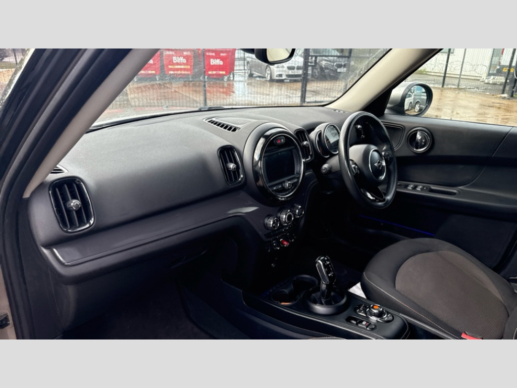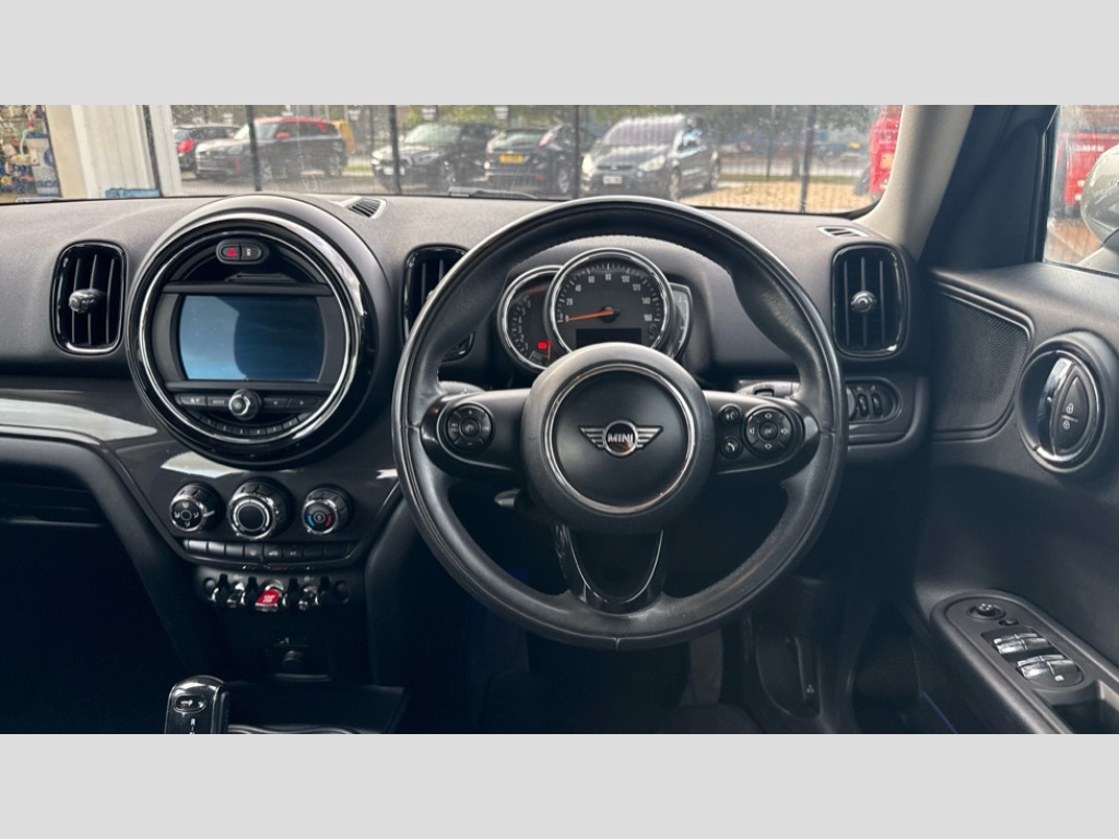 MINI Countryman 1.5 Cooper Classic 5dr Auto Active Guard incl speed limiting and lane departure functions with auto steering, and front collision warning with brake intervention, Automatic start/stop function with brake energy recuperation, Electro-mechanical speed dependant steering assistance, Instrument cluster, Mini E-call, MINI TeleServices, On board computer, Rear parking distance control, Double Vanos system, Fully variable valve control, High precision injection, Steptronic transmission with double clutch, FM tuner and DAB digital radio, Body colour fuel filler cap, Day time driving lights, Door sill strips, Dynamic brake lights, Electric windows, Heated rear window, Heated windscreen washer jets, Left exhaust tailpipe with chrome finisher, Model logo, Model logo on Tailgate, Radiator grille, Rain sensor with auto headlights, Rear fog lights, Rear window wiper, Side scuttle panel with integrated indicator, Split rear doors, Sun/heat protection glass, White indicator lenses, 12V Accessory socket in centre console, 360L luggage compartment capacity, 4 lashing eyes in luggage compartment, 40:20:40 split folding rear seats, Chrome interior highlights, Colour line - Carbon black, Cupholders, English handbook, Front headrests, Glove compartment, Headliner with grab handles and clothes hooks, Height and length steering column adjustment, Interior lighting with 12 basic colours selectable via toggle switch in roof, Isofix rear child seat preparation, Leather gearshift lever and handbrake gaiters, LED reading lights, vanity mirror lights, front foot well light and spotlight on front seats, Manual air conditioning, Mechanical seat adjustment, driver seat height adjust, forward/back and front seats backrest, Multifunction steering wheel, Passenger seat height adjuster, Rear headrests, Storage compartments in doors, Sunvisors with vanity mirrors, Excitement pack - Countryman, Navigation pack - Countryman, 2 tone horn, 3 point seatbelts on all seats, 6 Airbags - front, side, head and seat belt tensioners, Anti-lock braking system (ABS), DSC - Dynamic Stability Control, Electronic handbrake, Front and rear disc brakes, Hill start assist, Tyre pressure monitoring system, Alarm system with tilt sensor, monitoring doors, bonnet interior and tailgate, Auto drive away locking, Deadlocking function, Electronic vehicle immobiliser, Locking wheel bolts, Start/stop toggle with keyless go, Tool kit
