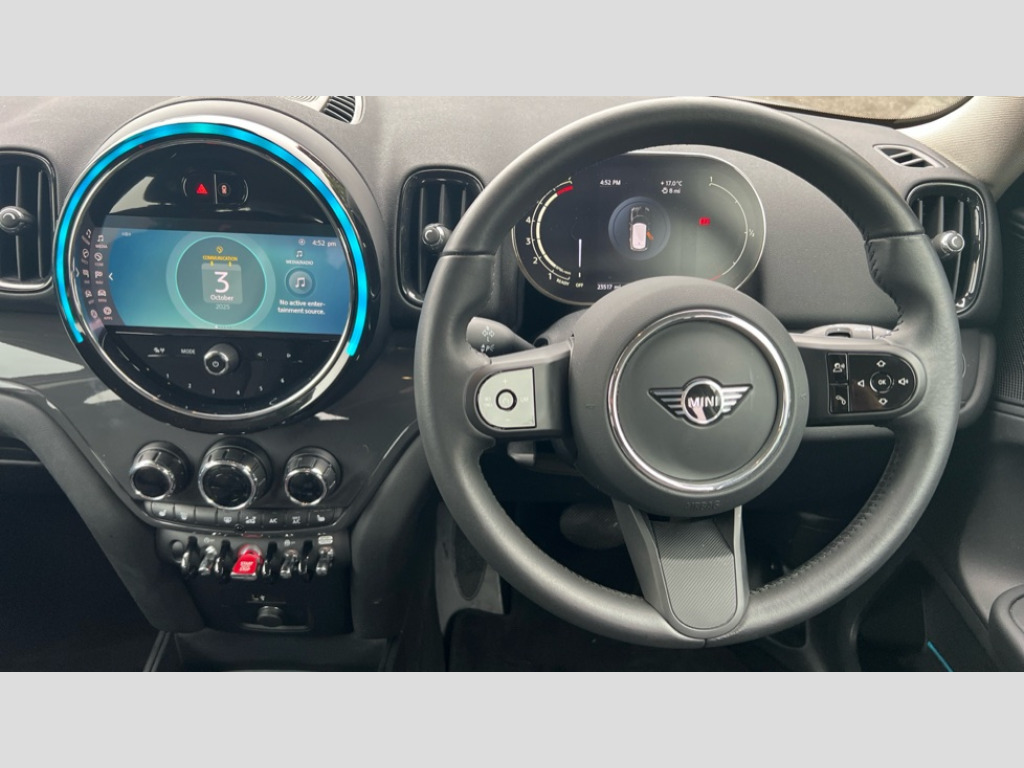 MINI Countryman 1.5 Cooper Classic 5dr Auto Active Guard incl speed limiting and lane departure functions with auto steering, and front collision warning with brake intervention, Automatic start/stop function with brake energy recuperation, Compatible mobile phone bluetooth with audio streaming, Cruise control with brake assist, Electro-mechanical speed dependant steering assistance, Instrument cluster, Mini E-call, On board computer, Rear parking distance control, 51 Litre fuel tank, Double Vanos system, Fully variable valve control, High precision injection, Performance Control, Steptronic transmission with double clutch, FM tuner and DAB digital radio, 3rd brake light, Body colour fuel filler cap, Day time driving lights, Door sill strips, Dynamic brake lights, Electric windows, Heated rear window, Heated windscreen washer jets, LED fog lights, LED Headlights, Left exhaust tailpipe with chrome finisher, Model logo, Model logo on Tailgate, Radiator grille, Rain sensor with auto headlights, Rear fog lights, Rear side wing doors, Rear window wiper, Side scuttle panel with integrated indicator, Split rear doors, Sun/heat protection glass, White indicator lenses, 12V socket in centre console, 3 seat bench in 2nd row, 3 spoke sport leather steering wheel + limiter function and audio controls, 360L luggage compartment capacity, 4 lashing eyes in luggage compartment, 40:20:40 split folding rear seats, Chrome interior highlights, Colour line - Carbon black, Cupholders, English handbook, Floor mats, Front headrests, Glove compartment, Headliner with grab handles and clothes hooks, Height and length steering column adjustment, Interior lighting with 12 basic colours selectable via toggle switch in roof, Isofix rear child seat preparation, Leather gearshift lever and handbrake gaiters, LED reading lights, vanity mirror lights, front foot well light and spotlight on front seats, Manual air conditioning, Mechanical seat adjustment, driver seat height adjust, forward/back and front seats backrest, Multifunction steering wheel, Passenger seat height adjuster, Rear headrests, Single front passenger seat, Storage compartments in doors, Sunvisors with vanity mirrors, Excitement pack - Countryman, Navigation pack - Countryman, 2 tone horn, 3 point seatbelts on all seats, 6 Airbags - front, side, head and seat belt tensioners, Anti-lock braking system (ABS), DSC - Dynamic Stability Control, Electronic handbrake, Front and rear disc brakes, Hill start assist, Manual rear child locks, Tyre pressure monitoring system, Alarm system with tilt sensor, monitoring doors, bonnet interior and tailgate, Auto drive away locking, Deadlocking function, Electronic vehicle immobiliser, Locking wheel bolts, Start/stop toggle with keyless go, Tool kit