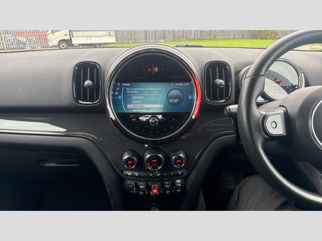 MINI Countryman 1.5 Cooper Classic 5dr Auto Active Guard incl speed limiting and lane departure functions with auto steering, and front collision warning with brake intervention, Automatic start/stop function with brake energy recuperation, Compatible mobile phone bluetooth with audio streaming, Cruise control with brake assist, Electro-mechanical speed dependant steering assistance, Instrument cluster, Mini E-call, On board computer, Rear parking distance control, 51 Litre fuel tank, Double Vanos system, Fully variable valve control, High precision injection, Performance Control, Steptronic transmission with double clutch, FM tuner and DAB digital radio, 3rd brake light, Body colour fuel filler cap, Day time driving lights, Door sill strips, Dynamic brake lights, Electric windows, Heated rear window, Heated windscreen washer jets, LED fog lights, LED Headlights, Left exhaust tailpipe with chrome finisher, Model logo, Model logo on Tailgate, Radiator grille, Rain sensor with auto headlights, Rear fog lights, Rear side wing doors, Rear window wiper, Side scuttle panel with integrated indicator, Split rear doors, Sun/heat protection glass, White indicator lenses, 12V socket in centre console, 3 seat bench in 2nd row, 3 spoke sport leather steering wheel + limiter function and audio controls, 360L luggage compartment capacity, 4 lashing eyes in luggage compartment, 40:20:40 split folding rear seats, Chrome interior highlights, Colour line - Carbon black, Cupholders, English handbook, Floor mats, Front headrests, Glove compartment, Headliner with grab handles and clothes hooks, Height and length steering column adjustment, Interior lighting with 12 basic colours selectable via toggle switch in roof, Isofix rear child seat preparation, Leather gearshift lever and handbrake gaiters, LED reading lights, vanity mirror lights, front foot well light and spotlight on front seats, Manual air conditioning, Mechanical seat adjustment, driver seat height adjust, forward/back and front seats backrest, Multifunction steering wheel, Passenger seat height adjuster, Rear headrests, Single front passenger seat, Storage compartments in doors, Sunvisors with vanity mirrors, Excitement pack - Countryman, Navigation pack - Countryman, 2 tone horn, 3 point seatbelts on all seats, 6 Airbags - front, side, head and seat belt tensioners, Anti-lock braking system (ABS), DSC - Dynamic Stability Control, Electronic handbrake, Front and rear disc brakes, Hill start assist, Manual rear child locks, Tyre pressure monitoring system, Alarm system with tilt sensor, monitoring doors, bonnet interior and tailgate, Auto drive away locking, Deadlocking function, Electronic vehicle immobiliser, Locking wheel bolts, Start/stop toggle with keyless go, Tool kit