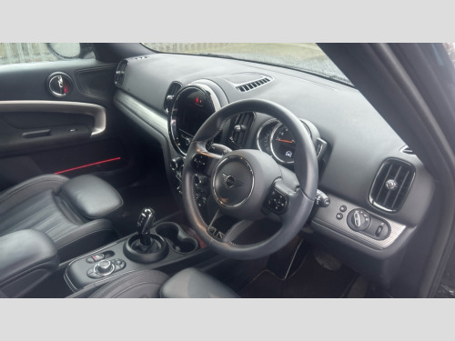 MINI Countryman 1.5 Cooper Exclusive 5dr Auto Automatic start/stop function with brake energy recuperation, Compatible mobile phone bluetooth with audio streaming, Electro-mechanical speed dependant steering assistance, Instrument cluster, Mini E-call, On board computer, Double Vanos system, High precision injection, Performance Control, Steptronic transmission with double clutch, 6 speakers, 3rd brake light, Body colour fuel filler cap, Day time driving lights, Door sill strips, Dynamic brake lights, Electric windows, Heated rear window, Heated windscreen washer jets, LED fog lights, MINI yours exterior badge in C-Pillar, driver and passenger side, Model logo, Model logo on Tailgate, Rain sensor with auto headlights, Rear fog lights, Rear side wing doors, Rear window wiper, Side scuttle panel with integrated indicator, Split rear doors, Sun/heat protection glass, White indicator lenses, 12V socket in centre console, 3 seat bench in 2nd row, 360L luggage compartment capacity, 4 lashing eyes in luggage compartment, 40:20:40 split folding rear seats, Anthracite headlining, Chrome interior highlights, Cupholders, English handbook, Front headrests, Glove compartment, Headliner with grab handles and clothes hooks, Height and length steering column adjustment, Isofix rear child seat preparation, Leather gearshift lever and handbrake gaiters, LED reading lights, vanity mirror lights, front foot well light and spotlight on front seats, Mechanical seat adjustment, driver seat height adjust, forward/back and front seats backrest, MINI Yours floor mats, Multifunction steering wheel, Nappa leather steering wheel with MINI Yours logo, Passenger seat height adjuster, Rear headrests, Single front passenger seat, Storage compartments in doors, Sunvisors with vanity mirrors, Driving Assistant pack - Mini Countryman, Excitement pack - Countryman, Premium pack - Countryman, 2 tone horn, 3 point seatbelts on all seats, 6 Airbags - front, side, head and seat belt tensioners, Anti-lock braking system (ABS), DSC - Dynamic Stability Control, Electronic handbrake, Front and rear disc brakes, Hill start assist, Manual rear child locks, Tyre pressure monitoring system, Alarm system with tilt sensor, monitoring doors, bonnet interior and tailgate, Auto drive away locking, Deadlocking function, Electronic vehicle immobiliser, Locking wheel bolts, Start/stop toggle with keyless go, Tool kit