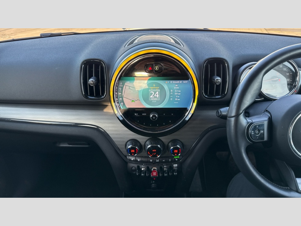 MINI Countryman 1.5 Cooper Exclusive 5dr Auto Automatic start/stop function with brake energy recuperation, Compatible mobile phone bluetooth with audio streaming, Electro-mechanical speed dependant steering assistance, Instrument cluster, Mini E-call, On board computer, Double Vanos system, High precision injection, Performance Control, Steptronic transmission with double clutch, 6 speakers, 3rd brake light, Body colour fuel filler cap, Day time driving lights, Door sill strips, Dynamic brake lights, Electric windows, Heated rear window, Heated windscreen washer jets, LED fog lights, MINI yours exterior badge in C-Pillar, driver and passenger side, Model logo, Model logo on Tailgate, Rain sensor with auto headlights, Rear fog lights, Rear side wing doors, Rear window wiper, Side scuttle panel with integrated indicator, Split rear doors, Sun/heat protection glass, White indicator lenses, 12V socket in centre console, 3 seat bench in 2nd row, 360L luggage compartment capacity, 4 lashing eyes in luggage compartment, 40:20:40 split folding rear seats, Anthracite headlining, Chrome interior highlights, Cupholders, English handbook, Front headrests, Glove compartment, Headliner with grab handles and clothes hooks, Height and length steering column adjustment, Isofix rear child seat preparation, Leather gearshift lever and handbrake gaiters, LED reading lights, vanity mirror lights, front foot well light and spotlight on front seats, Mechanical seat adjustment, driver seat height adjust, forward/back and front seats backrest, MINI Yours floor mats, MINI Yours Interior Style Shaded Silver Illuminated, Multifunction steering wheel, Nappa leather steering wheel with MINI Yours logo, Passenger seat height adjuster, Rear headrests, Single front passenger seat, Storage compartments in doors, Sunvisors with vanity mirrors, Driving Assistant pack - Mini Countryman, Excitement pack - Countryman, Premium pack - Countryman, 2 tone horn, 3 point seatbelts on all seats, 6 Airbags - front, side, head and seat belt tensioners, Anti-lock braking system (ABS), DSC - Dynamic Stability Control, Electronic handbrake, Front and rear disc brakes, Hill start assist, Manual rear child locks, Tyre pressure monitoring system, Alarm system with tilt sensor, monitoring doors, bonnet interior and tailgate, Auto drive away locking, Deadlocking function, Electronic vehicle immobiliser, Locking wheel bolts, Start/stop toggle with keyless go, Tool kit