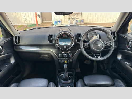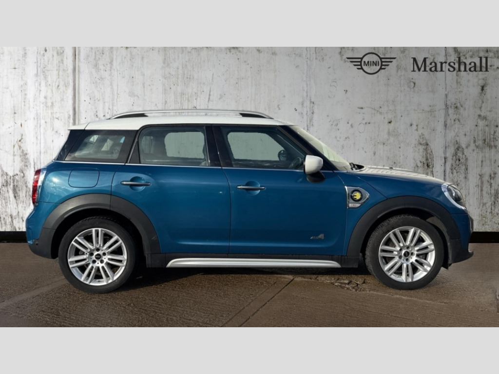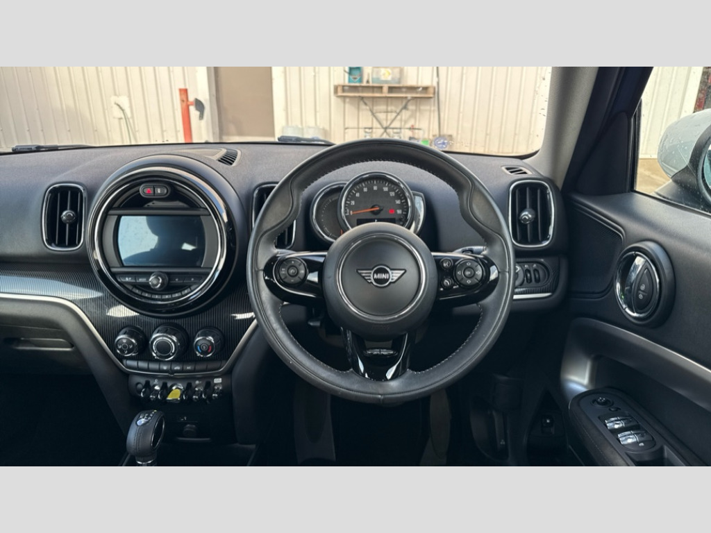 MINI Countryman 1.5 Cooper S E Exclusive ALL4 PHEV 5dr Auto Active Guard incl speed limiting and lane departure functions with auto steering, and front collision warning with brake intervention, Automatic start/stop function with brake energy recuperation, Compatible mobile phone bluetooth with audio streaming, eDrive button, Electro-mechanical speed dependant steering assistance, Instrument cluster, MINI Driving Modes - centre toggle switch to control driving setting (sport, mid and green), Mini E-call, MINI TeleServices, On board computer, Rear parking distance control, Automatic transmission, Charging flap on front left lower A-panel, Double Vanos system, Fully variable valve control, High precision injection, Home charging cable, Performance Control, Public charging cable, FM tuner and DAB digital radio, Bonnet scoop, Chrome border honeycomb structure radiator grille with S badge, Chrome fuel filler cap, Chrome line exterior, Day time driving lights, Dynamic brake lights, Electric windows, Heated rear window, Heated windscreen washer jets, Metal door sill strips with Cooper S imprint, Model logo, Model logo on Tailgate, Rain sensor with auto headlights, Rear fog lights, Rear window wiper, Side scuttle panel with integrated indicator, Split rear doors, Sun/heat protection glass, Twin exhaust tailpipe, White indicator lenses, 12V Accessory socket in centre console, 360L luggage compartment capacity, 4 lashing eyes in luggage compartment, 40:20:40 split folding rear seats, Chrome interior highlights, Cupholders, English handbook, Front headrests, Glove compartment, Height and length steering column adjustment, Interior lighting with 12 basic colours selectable via toggle switch in roof, Isofix rear child seat preparation, Leather gearshift lever and handbrake gaiters, LED reading lights, vanity mirror lights, front foot well light and spotlight on front seats, Manual air conditioning, Mechanical seat adjustment, driver seat height adjust, forward/back and front seats backrest, MINI Yours fine walk nappa leather steering wheel with contrast stitching in silver and MINI Yours badge, Multifunction steering wheel, Passenger seat height adjuster, Rear headrests, Storage compartments in doors, Sunvisors with vanity mirrors, Excitement pack - Countryman, Navigation pack - Countryman, 2 tone horn, 3 point seatbelts on all seats, 6 Airbags - front, side, head and seat belt tensioners, Anti-lock braking system (ABS), DSC - Dynamic Stability Control, Electronic handbrake, Front and rear disc brakes, Hill start assist, Tyre pressure monitoring system, Alarm system with tilt sensor, monitoring doors, bonnet interior and tailgate, Auto drive away locking, Deadlocking function, Electronic vehicle immobiliser, Locking wheel bolts, Start/stop toggle with keyless go, Chrome line interior, Tool kit