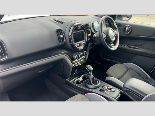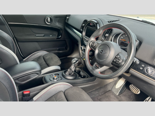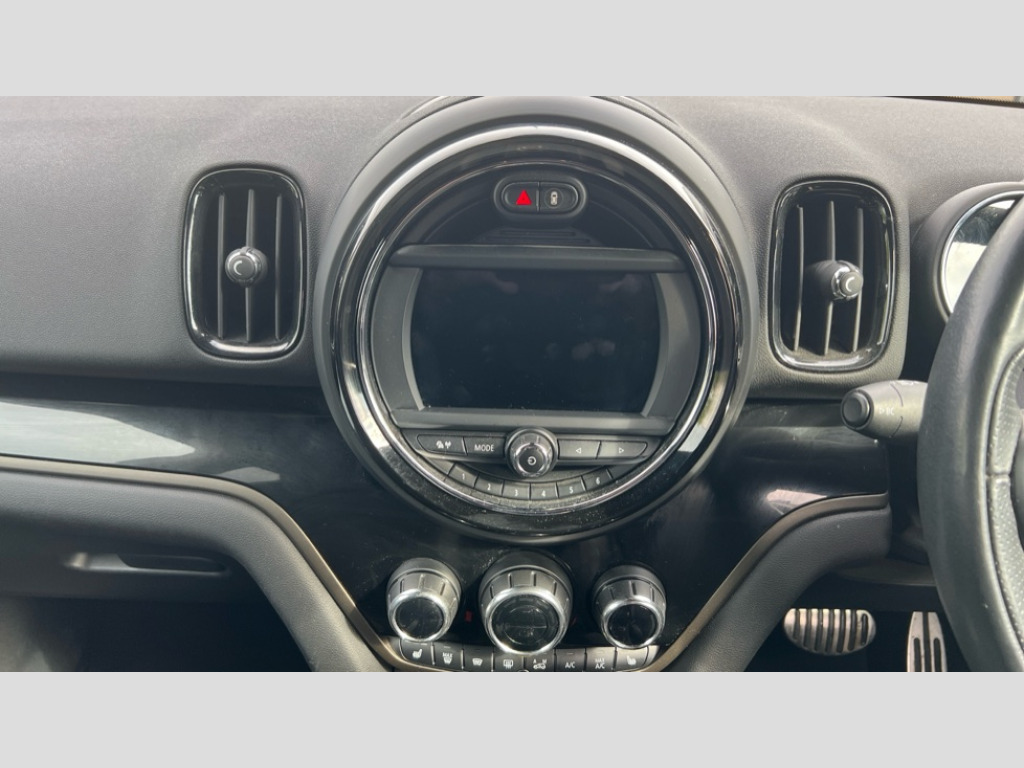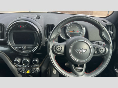 MINI Countryman 1.5 Cooper S E Sport ALL4 PHEV 5dr Auto Active Guard incl speed limiting and lane departure functions with auto steering, and front collision warning with brake intervention, Automatic start/stop function with brake energy recuperation, Compatible mobile phone bluetooth with audio streaming, eDrive button, Electro-mechanical speed dependant steering assistance, Instrument cluster, MINI Driving Modes - centre toggle switch to control driving setting (sport, mid and green), Mini E-call, MINI TeleServices, On board computer, Automatic transmission, Charging flap on front left lower A-panel, Double Vanos system, Fully variable valve control, High precision injection, Home charging cable, Performance Control, Public charging cable, FM tuner and DAB digital radio, Bonnet scoop, Chrome border honeycomb structure radiator grille with S badge, Chrome fuel filler cap, Day time driving lights, Dynamic brake lights, Electric windows, Heated rear window, Heated windscreen washer jets, John Cooper Works - aerodynamic kit (front and rear apron, spoiler), front and rear sport bumpers and part-painted side sills with door sill finishers, John Cooper Works Logo, John Cooper Works rear spoiler, Metal door sill strips with Cooper S imprint, Model logo, Model logo on Tailgate, Rain sensor with auto headlights, Rear fog lights, Rear window wiper, Side scuttle panel with integrated indicator, Split rear doors, Sun/heat protection glass, Twin exhaust tailpipe, White indicator lenses, 12V Accessory socket in centre console, 360L luggage compartment capacity, 4 lashing eyes in luggage compartment, 40:20:40 split folding rear seats, Anthracite headlining with grab handles and clothes hooks, Chrome interior highlights, Colour line - Carbon black, Cupholders, English handbook, Front headrests, Glove compartment, Height and length steering column adjustment, Interior lighting with 12 basic colours selectable via toggle switch in roof, Isofix rear child seat preparation, John Cooper Works perforated leather steering wheel with contrast stitching in chilli red and John Cooper Works logo, Leather gearshift lever and handbrake gaiters, LED reading lights, vanity mirror lights, front foot well light and spotlight on front seats, Mechanical seat adjustment, driver seat height adjust, forward/back and front seats backrest, Multifunction steering wheel, Rear headrests, Storage compartments in doors, Sunvisors with vanity mirrors, Excitement pack - Countryman, Navigation plus pack - Countryman, 2 tone horn, 3 point seatbelts on all seats, 6 Airbags - front, side, head and seat belt tensioners, Anti-lock braking system (ABS), DSC - Dynamic Stability Control, Electronic handbrake, Front and rear disc brakes, Hill start assist, Tyre pressure monitoring system, Alarm system with tilt sensor, monitoring doors, bonnet interior and tailgate, Auto drive away locking, Deadlocking function, Electronic vehicle immobiliser, Locking wheel bolts, Start/stop toggle with keyless go, Tool kit
