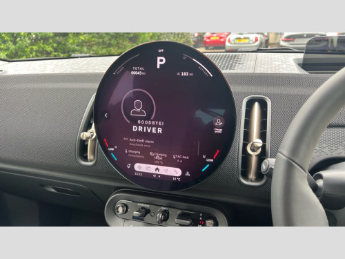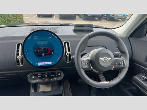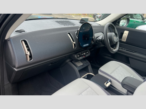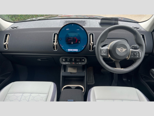 MINI Countryman 150kW E Classic 66kWh 5dr Auto Bluetooth connection, Circular OLED Screen, Compatible mobile phone bluetooth with audio streaming, Cruise Control (DCC), Digital dashboard display, Driving assistant, Driving Assistant Plus Preparation, E-call, Electro-mechanical speed dependant steering assistance, MINI Experience Modes, MINI Head up display, Mini navigation system, MINI TeleServices, Parking assistant in camera and ultrasound based assistance system, rear view camera, parking aid and distance control, 11kW AC charging, DC Rapid charging, Mode 3 charging cable, 6 speakers, DAB Digital radio, Personal eSim, Auto tailgate, Electric adjustable heated door mirrors, Front and rear electric windows, Heated rear window, High beam assistant, Interior rear-view mirror with automatic anti-dazzle function, LED daytime running lights, LED headlights with extended contents including Adaptable light signatures, LED rear lights, LED third brake light, Rain sensor with auto headlights, Rear side wing doors, Rear window wiper, Roof rails, 3 seat bench in 2nd row, 60/40 split rear bench seat, Auto air conditioning, Driver and front passenger seat heating, Floor mats, Front armrest, Front headrests, Heated steering wheel, Height and length steering column adjustment, Light headliner, Luggage compartment separating net, Rear headrests, Single front passenger seat, Sport Vescin Steering Wheel, Sunvisors with vanity mirrors, Vescin/Cloth upholstery, Wireless charging tray, Interior and exterior mirror package - Mini Countryman, 3x3 point rear seat belts, 6 Airbags - front, side, head and seat belt tensioners, ABS, Acoustic pedestrian protection, DSC - Dynamic Stability Control, Electronic handbrake, Electronic Stability Programme (ESP), Front ISOFIX (iSize), Hill hold assist, Hill start assist, Manual rear child locks, Traction control, Tyre pressure monitoring system, Warning triangle, Alarm system with tilt sensor, monitoring doors, bonnet interior and tailgate, Auto drive away locking, Comfort access system, Deadlocking function, Electronic vehicle immobiliser, Keyless Go, Locking wheel bolts, Remote control locking, Black/Blue dashboard knit, MINI Mobility Kit