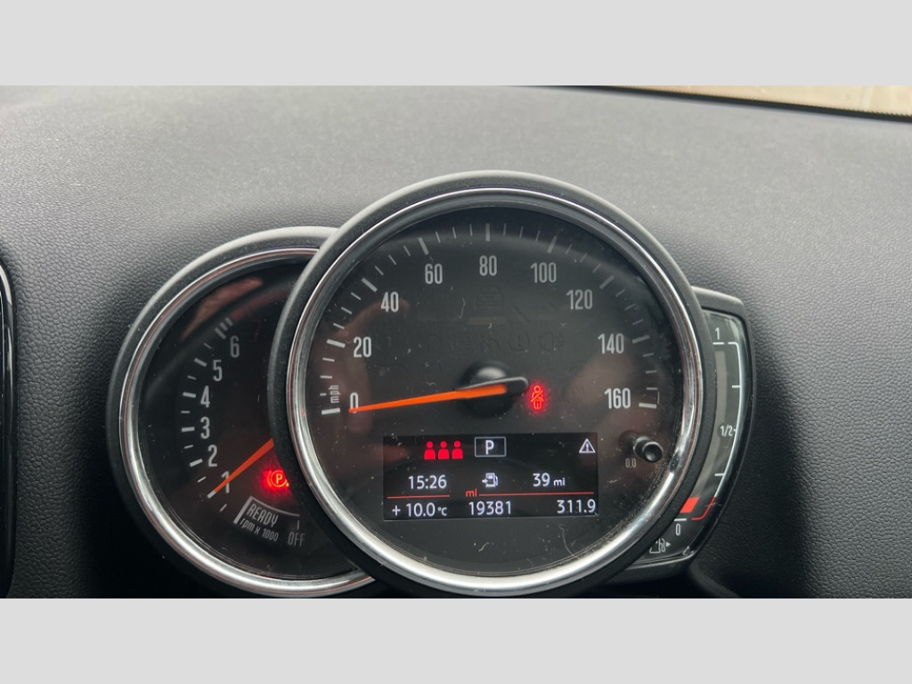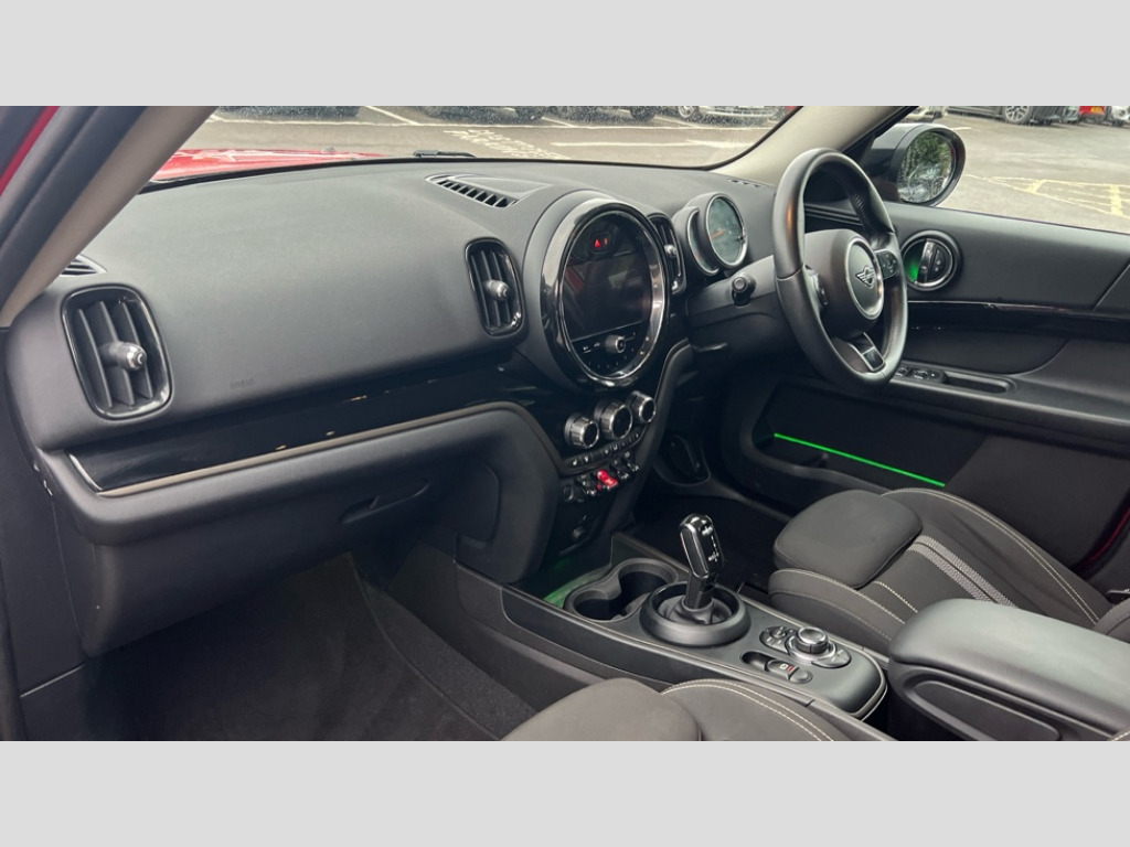 MINI Countryman 2.0 Cooper S Classic 5dr Auto Automatic start/stop function with brake energy recuperation, Compatible mobile phone bluetooth with audio streaming, Electro-mechanical speed dependant steering assistance, Instrument cluster, Mini E-call, On board computer, Double Vanos system, High precision injection, Performance Control, Steptronic sport transmission with double clutch and steering wheel paddles, 6 speakers, 3rd brake light, Bonnet scoop, Chrome border honeycomb structure radiator grille with S badge, Chrome fuel filler cap, Day time driving lights, Dynamic brake lights, Electric windows, Heated rear window, Heated windscreen washer jets, LED fog lights, Metal door sill strips with Cooper S imprint, Model logo, Model logo on Tailgate, Rain sensor with auto headlights, Rear fog lights, Rear side wing doors, Rear window wiper, Side scuttle panel with integrated indicator, Split rear doors, Sun/heat protection glass, Twin exhaust tailpipe, White indicator lenses, 12V socket in centre console, 3 seat bench in 2nd row, 360L luggage compartment capacity, 4 lashing eyes in luggage compartment, 40:20:40 split folding rear seats, Chrome interior highlights, Colour line - Carbon black, Cupholders, English handbook, Floor mats, Front headrests, Glove compartment, Headliner with grab handles and clothes hooks, Height and length steering column adjustment, Isofix rear child seat preparation, Leather gearshift lever and handbrake gaiters, LED reading lights, vanity mirror lights, front foot well light and spotlight on front seats, Mechanical seat adjustment, driver seat height adjust, forward/back and front seats backrest, Multifunction steering wheel, Passenger seat height adjuster, Rear headrests, Single front passenger seat, Sport leather steering wheel, Storage compartments in doors, Sunvisors with vanity mirrors, Driving Assistant pack - Mini Countryman, Excitement pack - Countryman, Premium pack - Countryman Cooper S, 2 tone horn, 3 point seatbelts on all seats, 6 Airbags - front, side, head and seat belt tensioners, Anti-lock braking system (ABS), DSC - Dynamic Stability Control, Electronic handbrake, Front and rear disc brakes, Hill start assist, Manual rear child locks, Tyre pressure monitoring system, Alarm system with tilt sensor, monitoring doors, bonnet interior and tailgate, Auto drive away locking, Deadlocking function, Electronic vehicle immobiliser, Locking wheel bolts, Start/stop toggle with keyless go, Piano black interior trim, Tool kit