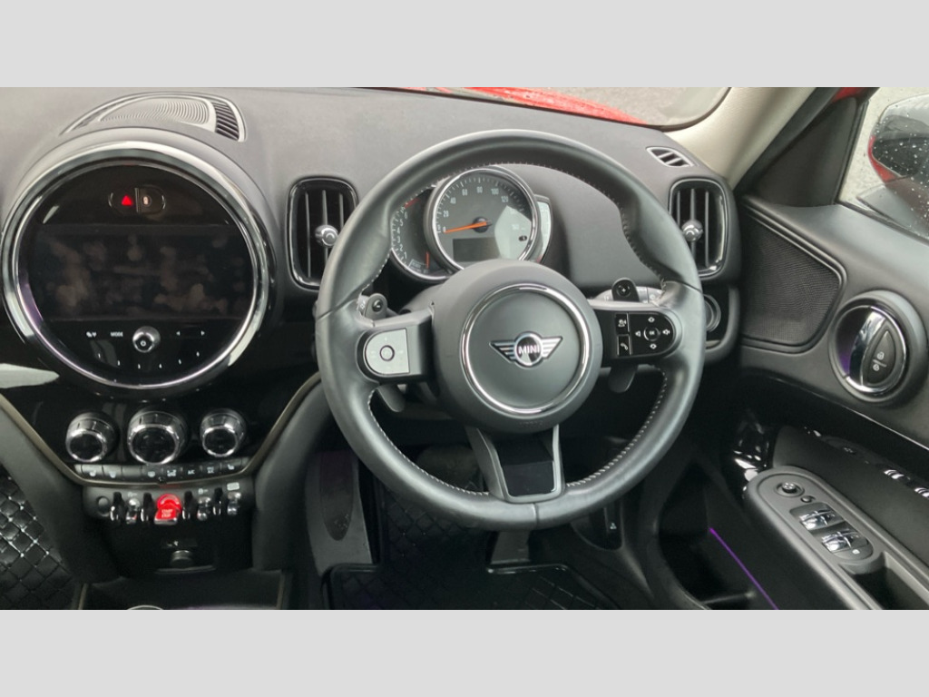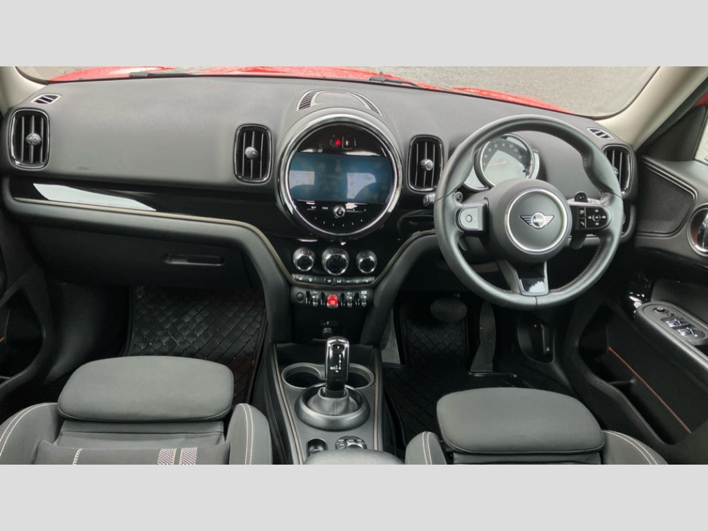 MINI Countryman 2.0 Cooper S Classic 5dr Auto Active Guard incl speed limiting and lane departure functions with auto steering, and front collision warning with brake intervention, Automatic start/stop function with brake energy recuperation, Compatible mobile phone bluetooth with audio streaming, Cruise control with brake assist, Electro-mechanical speed dependant steering assistance, Instrument cluster, MINI Driving Modes - centre toggle switch to control driving setting (sport, mid and green), Mini E-call, On board computer, Rear parking distance control, 51 Litre fuel tank, Double Vanos system, Fully variable valve control, High precision injection, Performance Control, Steptronic transmission with double clutch, FM tuner and DAB digital radio, 3rd brake light, Bonnet scoop, Chrome border honeycomb structure radiator grille with S badge, Chrome fuel filler cap, Day time driving lights, Dynamic brake lights, Electric windows, Heated rear window, Heated windscreen washer jets, LED fog lights, LED Headlights, Metal door sill strips with Cooper S imprint, Model logo, Model logo on Tailgate, Rain sensor with auto headlights, Rear fog lights, Rear side wing doors, Rear window wiper, Side scuttle panel with integrated indicator, Split rear doors, Sun/heat protection glass, Twin exhaust tailpipe, White indicator lenses, 12V socket in centre console, 3 seat bench in 2nd row, 3 spoke sport leather steering wheel + limiter function and audio controls, 360L luggage compartment capacity, 4 lashing eyes in luggage compartment, 40:20:40 split folding rear seats, Chrome interior highlights, Colour line - Carbon black, Cupholders, English handbook, Floor mats, Front headrests, Glove compartment, Headliner with grab handles and clothes hooks, Height and length steering column adjustment, Interior lighting with 12 basic colours selectable via toggle switch in roof, Isofix rear child seat preparation, Leather gearshift lever and handbrake gaiters, LED reading lights, vanity mirror lights, front foot well light and spotlight on front seats, Manual air conditioning, Mechanical seat adjustment, driver seat height adjust, forward/back and front seats backrest, Multifunction steering wheel, Passenger seat height adjuster, Rear headrests, Single front passenger seat, Storage compartments in doors, Sunvisors with vanity mirrors, Excitement pack - Countryman, Navigation pack - Countryman, 2 tone horn, 3 point seatbelts on all seats, 6 Airbags - front, side, head and seat belt tensioners, Anti-lock braking system (ABS), DSC - Dynamic Stability Control, Electronic handbrake, Front and rear disc brakes, Hill start assist, Manual rear child locks, Tyre pressure monitoring system, Alarm system with tilt sensor, monitoring doors, bonnet interior and tailgate, Auto drive away locking, Deadlocking function, Electronic vehicle immobiliser, Locking wheel bolts, Start/stop toggle with keyless go, Piano black interior trim, Tool kit