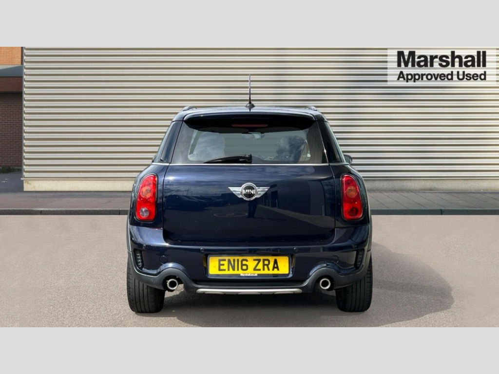 MINI Countryman 2.0 Cooper S D ALL4 5dr Auto Brake fluid level warning light, Brake pad wear indicator warning light, DTC - Dynamic traction control, Electric power steering, Engine start/stop button, Exterior temperature gauge, Oil level indicator, Rear park distance control, Run flat indicator, Service interval indicator, Sports button, Diesel particulate filter, Auxiliary input socket, DAB Digital radio, Radio BOOST + single slot CD, Anthracite roof rails, Anti dazzle mirror, Body colour bumpers, Body coloured air scoops, Chrome door handles, Chrome exhaust tailpipes, Chrome plated trim on bottom edge of window, Chrome-plated radiator grille surround, Electric front and rear windows + anti trap + one touch, Electrically adjustable door mirrors, Follow me home headlights, Heated door mirrors/heated windscreen washers, Heated rear window with automatic switch off, High gloss piano black bezels around rear lights and headlights, Honeycomb radiator grille, LED daytime running lights, LED front fog lights, Metal look door sill finishers, Rear wiper, Roof spoiler in roof colour, White indicator lights, 2 cupholders in front centre console, 3 rear seats, 3 spoke sports leather steering wheel with gearshift paddles, 4 lashing points to secure luggage, 60/40 split sliding rear seats, Adjustable headrests, Boot light, Centre console storage, Chrome air vent knobs, Chrome interior door handles, Driver's seat height adjuster, Driver/passenger sunvisors, Front reading lights, Front seat backrest storage nets, Front sports seats, Gear knob with chrome ring, Gear/selector and handbrake in artificial leather, Height/reach adjustable steering column, Interior light, Interior world - Carbon black, Isofix child seat preparation, MINI centre rail, Passenger seat height adjuster, Rear grab handles, Side sunvisor for driver, Stainless steel foot rest, Stainless steel pedals, Storage compartments in doors, Vanity mirrors, 3x3 point rear seatbelts, ABS, Automatic Stability Control (ASC), Cornering brake control (CBC), Crash Sensor - activates hazard/interior lighting + unlocks doors, Driver and passenger airbags, Driver and passenger side airbags, DSC - Dynamic Stability Control, Electronic brake force distribution, Front head airbags, Front seatbelt pretensioners with force limiters, Hill start assist, Manual passenger airbag deactivation function, Tyre pressure warning, Automatic door locking, Electronic immobiliser, Locking wheel bolts, Remote central locking + boot release, Second remote key, Thatcham Cat.1 alarm
