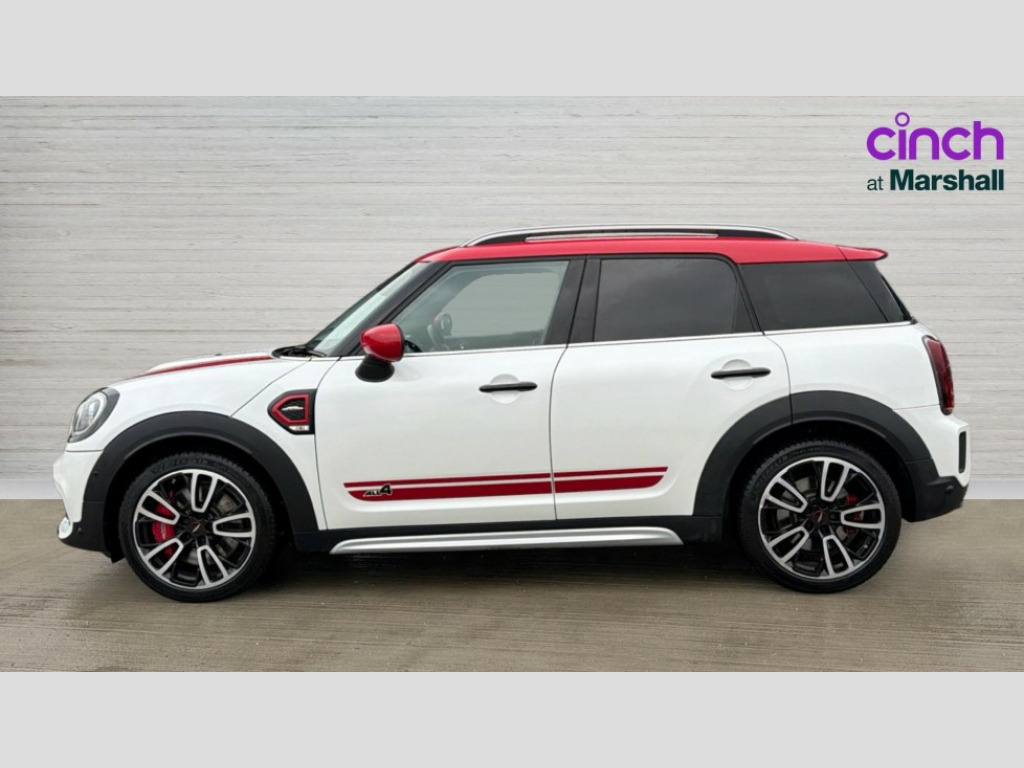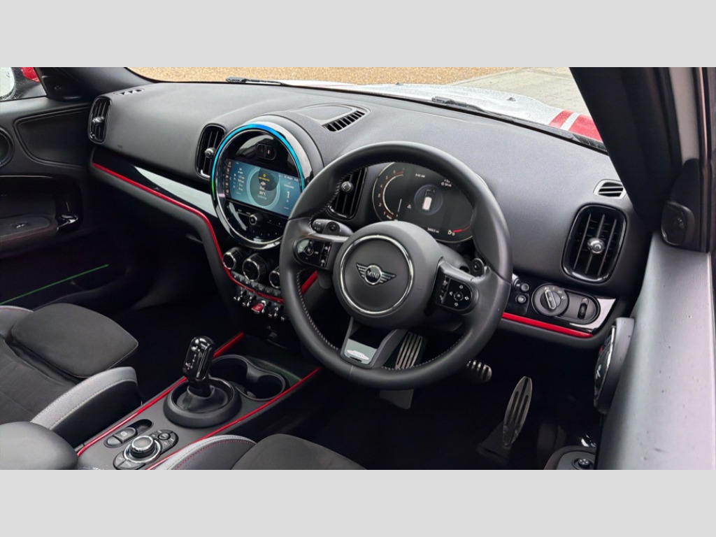 MINI Countryman 2.0 John Cooper Works ALL4 5dr Auto Active Guard incl speed limiting and lane departure functions with auto steering, and front collision warning with brake intervention, Automatic start/stop function with brake energy recuperation, Compatible mobile phone bluetooth with audio streaming, Cruise control with brake assist, Electro-mechanical speed dependant steering assistance, Instrument cluster, MINI Driving Modes - centre toggle switch to control driving setting (sport, mid and green), Mini E-call, On board computer, Double Vanos system, Fully variable valve control, High precision injection, Performance Control, Sport automatic transmission with steering wheel paddles, FM tuner and DAB digital radio, 3rd brake light, Body colour fuel filler cap, Day time driving lights, Door sill strips, Dynamic brake lights, Electric windows, Heated rear window, Heated windscreen washer jets, John Cooper Works - aerodynamic kit (front and rear apron, spoiler), front and rear sport bumpers and part-painted side sills with door sill finishers, John Cooper Works Logo, Model logo, Model logo on Tailgate, Rain sensor with auto headlights, Rear fog lights, Rear side wing doors, Rear window wiper, Split rear doors, Sun/heat protection glass, White indicator lenses, 12V socket in centre console, 3 seat bench in 2nd row, 360L luggage compartment capacity, 4 lashing eyes in luggage compartment, 40:20:40 split folding rear seats, Anthracite headlining with grab handles and clothes hooks, Chrome interior highlights, Colour line - Carbon black, Cupholders, English handbook, Front headrests, Glove compartment, Height and length steering column adjustment, Interior lighting with 12 basic colours selectable via toggle switch in roof, Isofix rear child seat preparation, LED reading lights, vanity mirror lights, front foot well light and spotlight on front seats, Mini John Cooper Works leather gearshift lever and handbrake gaiters, Multifunction steering wheel, Nappa leather steering wheel with MINI Yours logo, Rear headrests, Rubberised stainless steel pedals, Single front passenger seat, Storage compartments in doors, Sunvisors with vanity mirrors, Comfort plus pack - Countryman, Excitement pack - Countryman, Navigation pack - Countryman, Piano black exterior pack - Countryman JCW, 17" front sport brake with 4 piston fixed calliper, 2 tone horn, 3 point seatbelts on all seats, 6 Airbags - front, side, head and seat belt tensioners, Anti-lock braking system (ABS), DSC - Dynamic Stability Control, Electronic handbrake, Front and rear disc brakes, Hill start assist, Manual rear child locks, Red brake callipers with John Cooper Works logo, Torsen mechanical limited slip differential, Tyre pressure monitoring system, Alarm system with tilt sensor, monitoring doors, bonnet interior and tailgate, Auto drive away locking, Deadlocking function, Electronic vehicle immobiliser, Locking wheel bolts, Start/stop toggle with keyless go, Tool kit