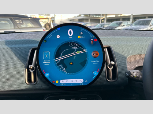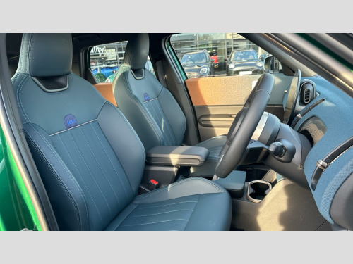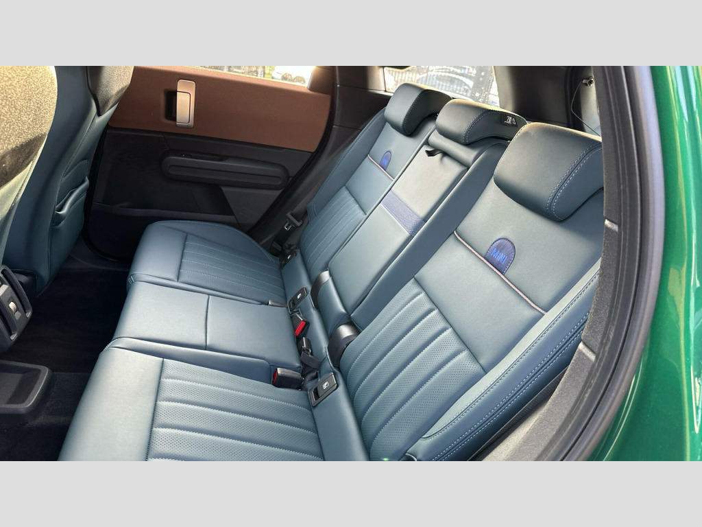 MINI Countryman C Exclusive in British Racing Green IV with Vescin Dark Petrol interior. Spec includes Heated Steering Wheel, Sport Steering Wheel, JCW Sport Front Seats, Circular OLED Screen, DAB Radio, Smartphone Integration, Parking Assistant, Front and Rear Parking Sensors, Reverse Camera, Roof and Mirrors Caps in White, Roof Rails, 18'' Asteroid Spoke Vibrant Silver Alloy Wheels.. Mild Hybrid Technology, EU6 RDE II exhaust emissions standard, Automatic DCT Transmission, Transmission type controller, Tyre Repair Kit, Roof Rails, MINI Experience Modes, Child seat i-Size attachment for front p, Driving Assistant, Active Guard, LED Headlights, Parking Assistant, BMW TeleServices, BMW Emergency Call, Personal eSIM, Circular OLED Screen, DAB Radio, COC additional contents, Active Pedestrian Safety, English / on-board literature II, 18'' Asteroid Spoke Vibrant Silver, Sports steering wheel, Heated Steering Wheel, Roof and Mirrors Caps in White, Anthracite Roof Lining, John Cooper Works sport seats, Exclusive Trim Content, Exclusive.