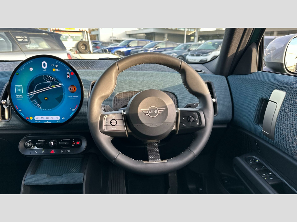 This 2024 MINI Countryman C Exclusive presents an exceptional opportunity with its remarkably low mileage of just 5243 miles, a testament to its single owner and careful use. This Euro 6 compliant, 1.5 litre petrol hybrid model is presented in the desirable Exclusive trim, offering a blend of efficiency and premium features. It comes with the reassurance of a 24 month warranty and a 12 month MOT provided on purchase, alongside being MINI manufacturer approved. Notable features include the comfort of a heated steering wheel and the clarity of LED headlights, enhancing every journey.The performance of this MINI Countryman is equally impressive, boasting an acceleration of 0-62mph in a swift 8.3 seconds. This figure indicates a more responsive driving experience compared to many other vehicles in its class. The combination of its advanced hybrid technology, low mileage, and comprehensive warranty makes this Countryman C Exclusive a standout choice for those seeking a stylish, efficient, and well maintained vehicle.. Mild Hybrid Technology, EU6 RDE II exhaust emissions standard, Automatic DCT Transmission, Transmission type controller, Tyre Repair Kit, Roof Rails, MINI Experience Modes, Child seat i-Size attachment for front p, Driving Assistant, Active Guard, LED Headlights, Parking Assistant, BMW TeleServices, BMW Emergency Call, Personal eSIM, Circular OLED Screen, DAB Radio, COC additional contents, Active Pedestrian Safety, English / on-board literature II, 18'' Asteroid Spoke Vibrant Silver, Sports steering wheel, Heated Steering Wheel, Roof and Mirrors Caps in White, Anthracite Roof Lining, John Cooper Works sport seats, Exclusive Trim Content, Exclusive.
