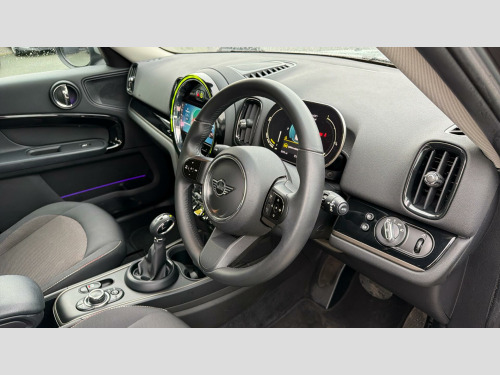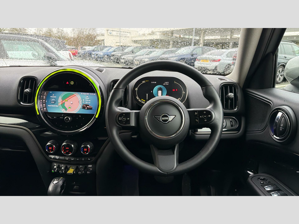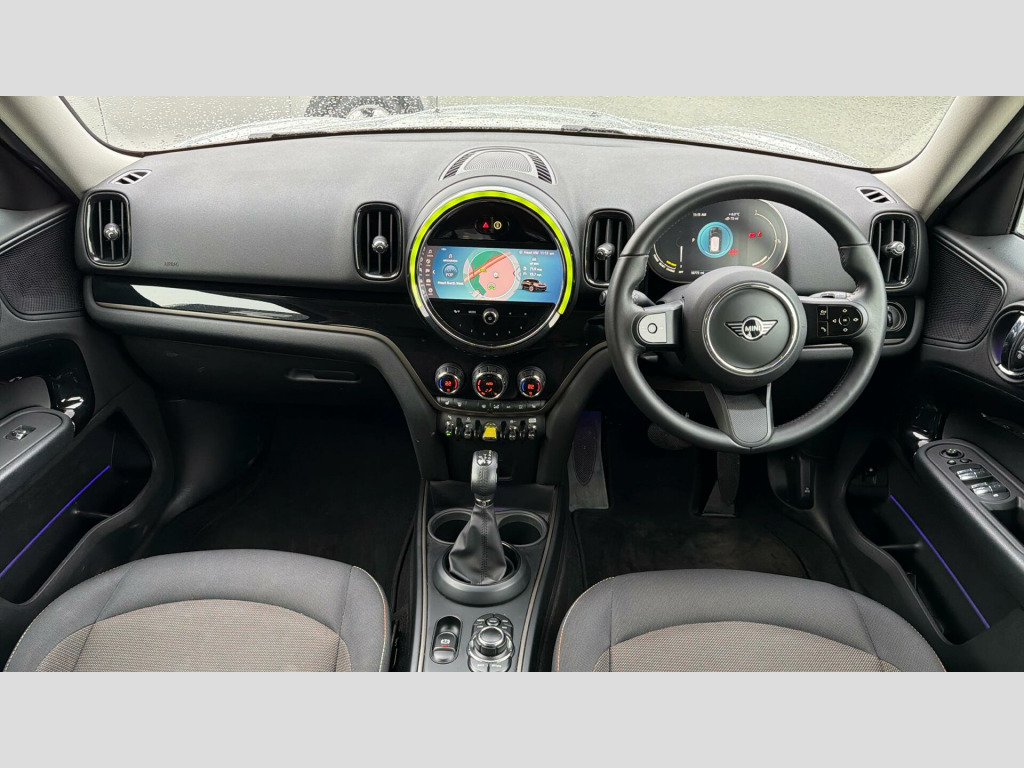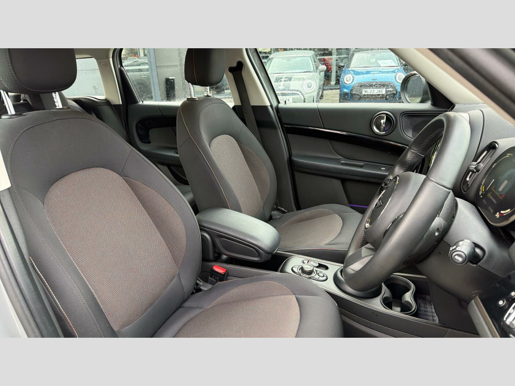 MINI Countryman Cooper SE Classic in Moonwalk Grey with Cloth Firework Carbon Black interior. Spec includes in Comfort Access, Comfort Plus Pack, Heated Front Seats, Front Centre Armrest, Multifunctional Steering Wheel, Sport Leather Steering Wheel, MINI Excitement Pack, Colour Line - Carbon Black, Cruise Control, Automatic Transmission, Digital Cockpit, Smartphone Integration, Electric Folding Door Mirrors, Rear-view Mirror with Auto dimming, Parking Assistant, Front and Rear Parking Sensors, Reverse Camera, Roof in Body Colour, 17'' Channel Spoke Black Alloy Wheels.. EU6 RDE II exhaust emissions standard, RDE additional contents, Automatic Transmission, Multifunction Controls on Steering Wheel, Sport Leather Steering Wheel, Roof Rails, Piano Black Interior Trim, Colour Line - Carbon Black, Charging cable (Mode 2), Acoustic Pedestrian Protection, MINI Driving Modes, MINI Excitement Pack, Rear Fog Light, Active Guard, Front LED Foglights, LED headlights, Flexible CarSharing Preparation, Cruise Control, Additional Interior Lighting, eDrive Services, Visual Boost Radio, DAB Radio, Active Pedestrian Safety, MINI Public Charging Cable 1 Phase, Tyre Repair Kit, 17'' Channel Spoke Black, Rear view Camera, Electric Folding Door Mirrors, Comfort Access, Roof in Body Colour, Rear-view Mirror with Auto dimming, Front centre armrest, Storage Pack, Heated front seats, Parking Assistant, Automatic Air Conditioning, MINI Emergency Call, MINI TeleServices, ConnectedDrive Services, Real Time Traffic Information, Remote Services, Smartphone Integration, MINI Connected, MINI Navigation System, Digital Cockpit, Comfort Plus Pack, Navigation Package.