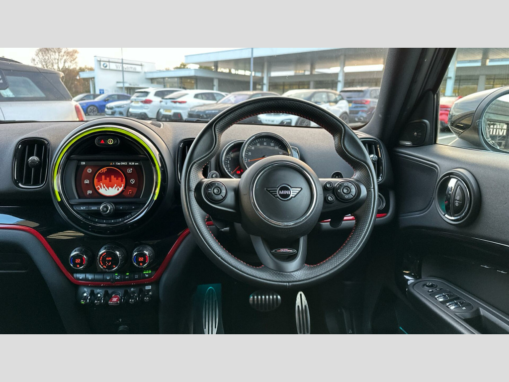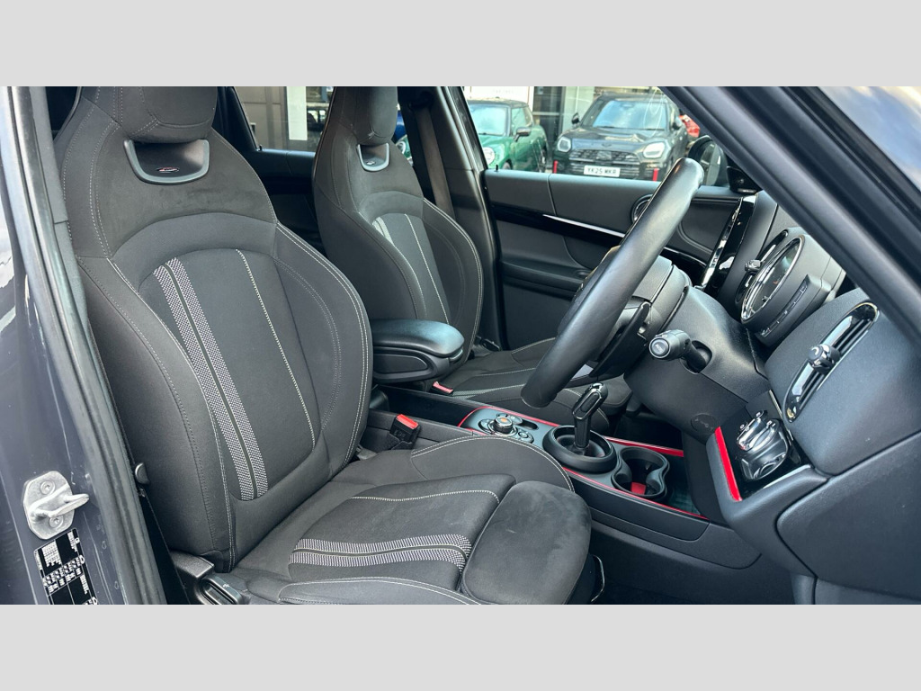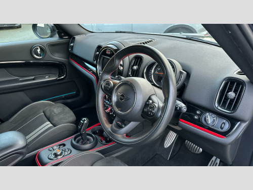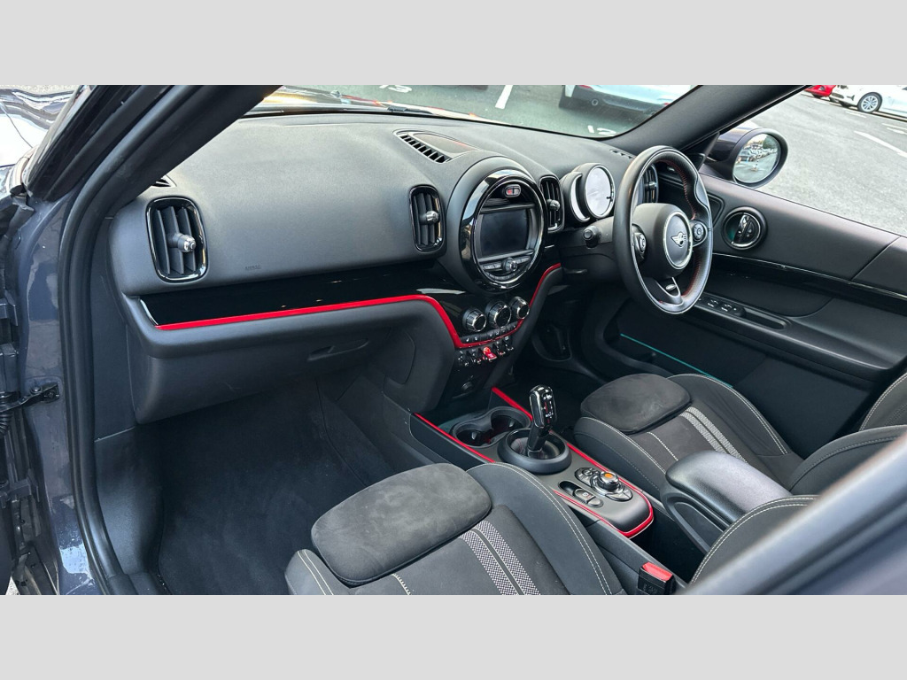 MINI Countryman Cooper S Sport in Thunder Grey with Dinamica/cloth combination Carbon Black interior. Spec includes Comfort Plus Pack, Heated Front Seats, John Cooper Works sport seats, Multifunction Controls on Steering Wheel, JCW Sport Steering Wheel, Piano Black JCW Interior Trim, Adaptive LED Headlights, Harman/Kardon Surround Sound Audio, MINI Navigation System, Smartphone Integration, Parking Assistant, Front and Rear Parking Sensors, Reverse Camera, MINI Driving Modes, Black Roof and Mirror Caps, Darkened Rear Glass, John Cooper Works Aerodynamic Kit, 18'' John Cooper Works Grip Spoke Alloy Wheels.,. RDE exhaust emissions standard, Performance Control, 18'' John Cooper Works Grip Spoke, JCW sport leather steering wheel, Multifunction Controls on Steering Wheel, John Cooper Works Aerodynamic Kit, Electric Folding Door Mirrors, Rear spoiler, Roof Rails, Anthracite Headlining, Colour Line - Carbon Black, John Cooper Works sport seats, Piano Black JCW Interior Trim, MINI Excitement Pack, Rear-view Mirror with Auto dimming, Rear Fog Light, Active Guard, Cruise Control, Additional Interior Lighting, DAB Radio, Active Pedestrian Safety, MINI John Cooper Works Sport Pack, Sport Steering Wheel, Sport Double-clutch auto transmission, Tyre Repair Kit, Rear view Camera, Black Roof and Mirror Caps, MINI Driving Modes, Darkened Rear Glass, Ext. mirrors- folding with anti-dazzle, Front centre armrest, Storage Pack, Heated front seats, Front LED Foglights, Adaptive LED Headlights, Parking Assistant, Park Distance Control front and rear, Automatic Air Conditioning, MINI Emergency Call, MINI TeleServices, ConnectedDrive Services, Real Time Traffic Information, Remote Services, Smartphone Integration, Visual Boost Radio, MINI Connected, MINI Navigation System, Harman/Kardon Surround Sound Audio, Navigation Package, Comfort Plus Pack. Full service history