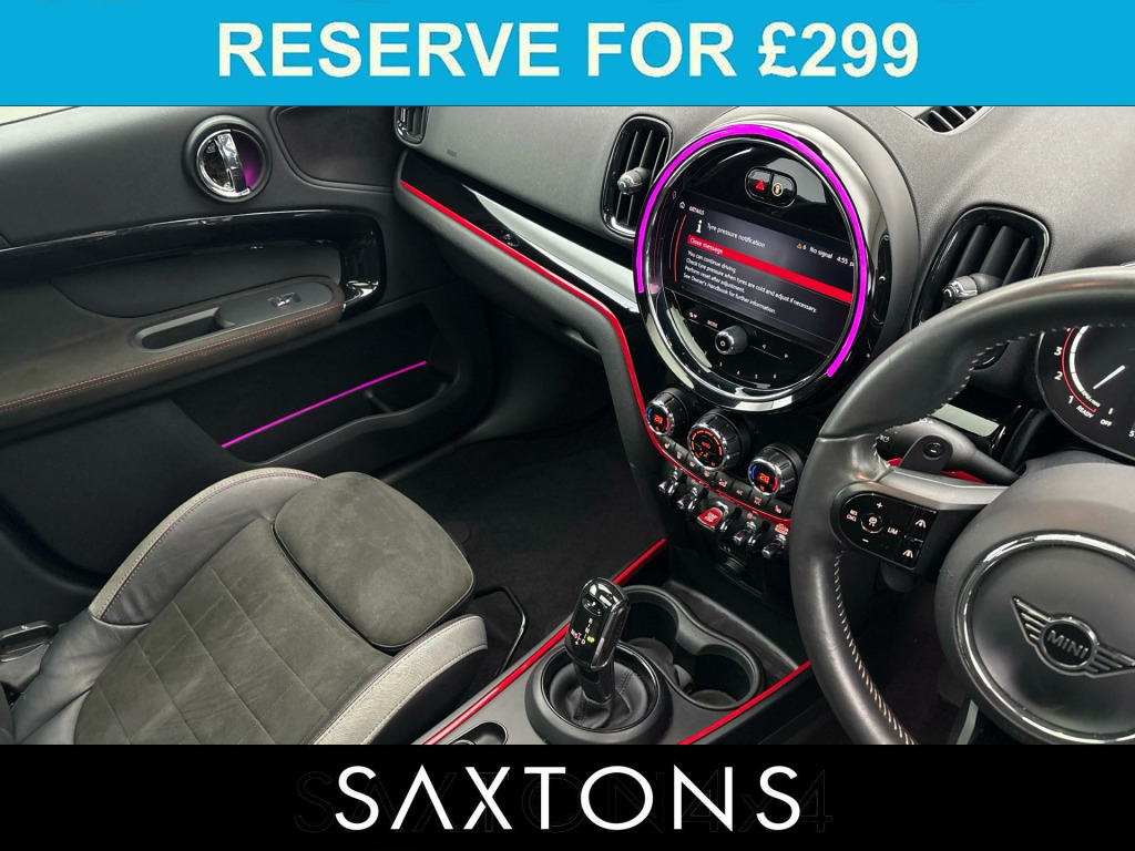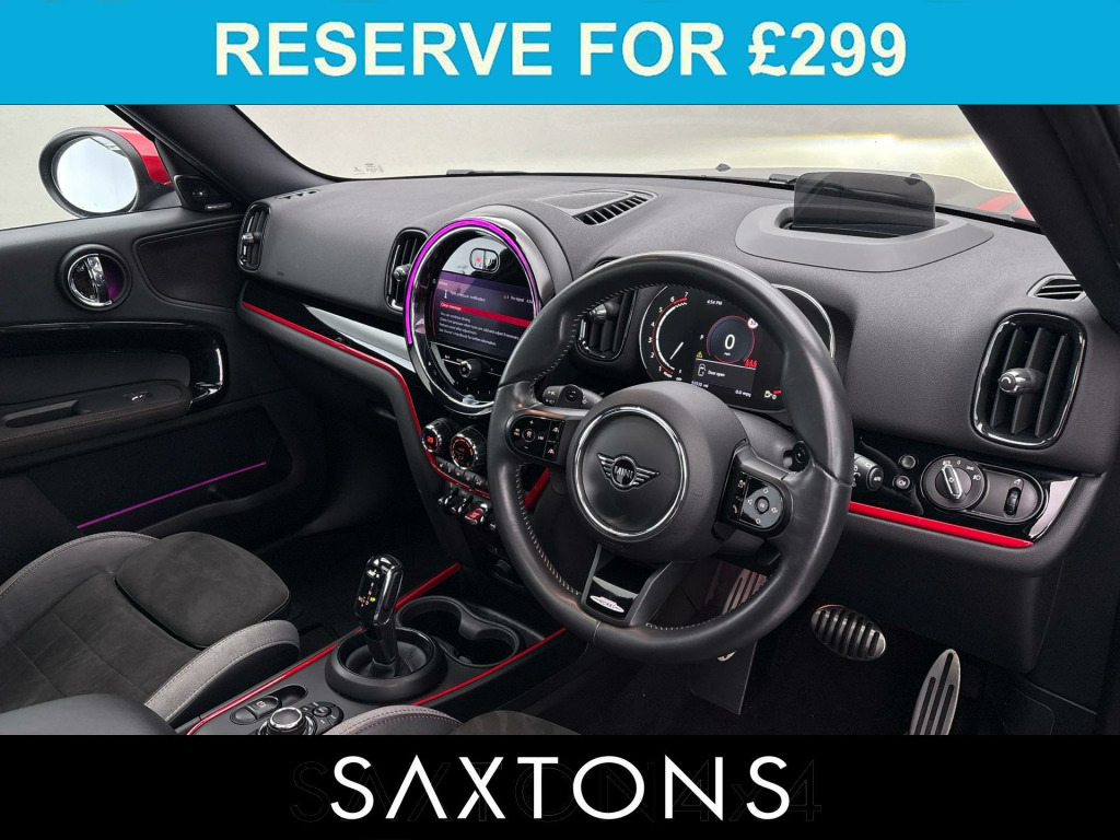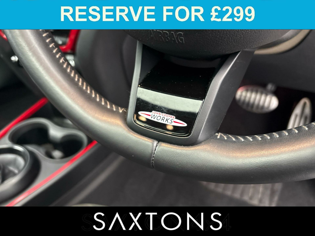 . Active Cruise Control, Harman Kardon Surround Sound, Head Up Display, Sat Nav, Rear View Camera, Sat Nav, Park Assist, Panoramic Roof, Apple CarPlay Preparation, LED Headlamps, Multi Function Steering Wheel, Wireless Charging, Comfort Access, DAB, Navigation Plus Pack, Driving Assistant Pack, 19in Alloy Wheels - John Cooper Works Circuit Spoke, Darkened Rear Glass, Heated Front Windscreen, John Cooper Works Sports Stripes - Red, Panoramic Glass Sunroof, Roof and Mirror Caps - Red, Automatic Operation of Tailgate, Dinamica-Leather - Carbon Black, MINI Activity Pack, Adaptive Suspension.
