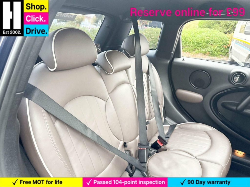 CHILI Pack, Media Pack, MINI Navigation System, 18in Alloy Wheels - 5-Star Double Spoke Jet Black Light, Panoramic Electric Glass Sunroof, Headlights - Bi-Xenon, Air Conditioning - Automatic, Full Bluetooth Telephone Preparation with USB Audio, Voice Control, Electrically Folding Exterior Mirrors, MINI Connected, Multifunction Controls for Steering Wheel, Interior Light Pack, Anthracite Headlining, Front Centre Armrest, Front Fog Lights, Dashboard Trim - Piano Black, Rain Sensor and Automatic Headlight Activation, Chrome Line Exterior, Chrome Line Interior, Door Ellipse and Downtubes - Piano Black, Run-Flat Tyres, Storage Compartment Pack, Bluetooth Telephone Audio Connection, Colour Line - Carbon Black, Interior World - Carbon Black, Leather Lounge - Light Coffee, 17in Alloy Wheels - 5-Star Double Spoke - Anthracite, 3 Seat Rear Bench, 3-Spoke Sport Leather Steering Wheel, 3rd Brake Light, Air Conditioning - Manual, Air Scoop Integrated between Bumper and Radiator Grille-Frame in Body Colour, Airbags - Driver, Airbags - Front Passenger, Airbags - Front Passenger with Deactivation Switch, Airbags - Front Side, Airbags - Head, Alarm - Thatcham CAT1, Anti-Lock Braking System - ABS, Aux-In Connection, Basic Bluetooth Function with USB Audio, Bike Rack Preparation at Rear, Brake Assist, Brake Pad Wear Indicator, CBC - Cornering Brake Control, Car Jack, Central Bass Hi-Fi System, Centre Rail, Child Seat ISOFIX Attachment, Cooled Glovebox, Crash Sensor - Fuel Cut-Off, Crash Sensor - Hazard Warning Flashers and Interior Light, Crash Sensor - Unlocking Doors, Cruise Control, DAB Tuner, DTC - Dynamic Traction Control, Door Handles - Chrome Plated, Door Handles - Interior - Chrome Plated, Door Mirrors - Electrically Adjustable and Heated, Door Sill Finishers - Metal Look and Model Dependent Lettering, Dynamic Stability Control - DSC, EBD - Electronic Brake-Force Distribution, Electric Windows - Front - One Touch Up and Down, Electronic Power Steering, Embellisher at Bottom Edge of All Windows - Chrome Plated, Exhaust Tailpipe - Visible Double Round Left and Right Stainless Steel, Exhaust Tailpipe - Visible Double Round Left and Right with Chrome Finishers, Footrest and Pedals in Stainless Steel, Gearshift Lever Knob Leather with Chrome Ring, Gearshift and Selector Lever Gaiters in Artificial Leather, Grab Handles, Halogen Lights for Low Beam and High Beam Headlights, Handbrake-Lever Grip Plastic with Central Push Button on Underside of Lever, Headlight - Beam-Throw Control Electrical with Manual Adjustment, Headlights - Chrome Bezels, Headlights - Follow Me Home, Headlining - Beige, Headrests For All Seats - Manually Adjustable, Heated Rear Window with Automatic Deactivation, Hill Assist, Interior Mirror - Mechanical Anti-Dazzle, Interior Surfaces - Dark Anthracite Decorative Trim Finishers on Centre Console and Door Ring, Interior lights - Integrated into Centre Front Headliner including Two Reading Lights, Lashing Eyes in Luggage Compartment, Luggage Compartment - Light, MINI Mobility System, Microfilter, Mirror Caps in Body Colour, Multi-Link Rear Axle, Non Smoker Package, PDC - Park Distance Control - Rear, Personal Profile Functions for Each Remote Key, Radiator Grille - Black-Honeycomb, Radio BOOST CD, Rev Counter, Roof Rails - Dark Anthracite, Roof Spoiler Painted in Roof Colour, Roof in Body Colour, Seats - 40:20:40 Split Rear Backrests, Seats - 60:40 Split for Fore-Aft Base Adjustment, Seats - Height Adjustable Drivers, Seats - Sports Front, Second Radio Remote Key, Security Locking Wheel Bolts, Sills-Bumper Edges-Wheel Arches - Black with Model-Specific Bumper Trims, Single Joint Spring Strut Front Axle, Speedometer Centred in Instrument Panel, Spoiler - Roof, Sport Button, Steering Column Height and Length Adjustment, Storage Options in the Trim Panels of Each Front Panel as well as Centre Console, Sun Visors with Integrated Vanity Mirrors on Drivers and Passengers Sides, TPWS - Tyre Pressure Warning System, Tailgate Release Incorporated within MINI Badge, USB Audio Connection, White Direction Indicators Lights, 17in Alloy Wheels - 5-Star Double Spoke Light, ASC+T - Automatic Stability Control and Traction, Central Locking - Activated At 10mph, Central Locking - Remote, Cupholders - Two in Front, Electric Windows - One Touch Up and Down Front and Rear, Frame Chrome-Plated Radiator-Grille in Honeycomb Black, Heated Front Windscreen Washer Jets, MINIMALISM Fuel Saving Technology, Side Scuttles with Integrated Indicators