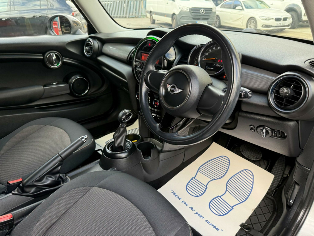 This 2014 MINI Hatch Cooper is a standout choice, boasting impressively low mileage for its age, having covered just 54,000 miles.  As a Cooper variant, it features a responsive 1.5L petrol engine and meets the Euro 6 emission standards.  Adding to its appeal are the stylish Chrome Line Interior and Chrome Line Exterior packages, along with the comprehensive PEPPER Pack.  Inside, you'll find the convenience of automatic dual zone air conditioning, including climate control, and the ability to connect your phone for hands free calls and USB audio playback via Bluetooth.This MINI Hatch Cooper offers a compelling blend of performance and efficiency, achieving an excellent fuel economy of 60 mpg, which is a significant advantage for your running costs. Its low CO2 emissions also contribute to its favourable environmental impact. Furthermore, its acceleration is brisk, reaching 0 to 62 miles per hour in just 7.8 seconds, demonstrating how this vehicle performs better than many others in its class. pper pack, air conditioning - automatic dual zone, 3-spoke sport leather steering wheel, storage compartment pack, chrome line exterior, chrome line interior, interior light pack, mini excitement pack, rain sensor and automatic headlight activation, white direction indicators lights, colour line - carbon black, roof and mirror caps - black, firework cloth - carbon black, 15in alloy wheels - heli in silver, 3rd brake light, asc+t - automatic stability control and traction, airbags - driver, airbags - front passenger, airbags - front passenger deactivation switch, airbags - front side, airbags - head, alarm - thatcham cat1, anti-lock braking system - abs, bluetooth hands free function with usb audio, brake drying, brake force display, brake pad wear indicator, cbc - cornering brake control, central locking - activated at 10mph, central locking - remote, child seat isofix attachment, crash sensor - unlocking doors, cupholders - rear x2, cupholders - two in front, dab tuner, dtc - dynamic traction control, daytime driving lights, door handles - chrome plated, door handles - interior - chrome plated, door mirrors - electrically adjustable and heated, dynamic stability control - dsc, ebd - electronic brake-force distribution, edlc - electronic differential lock control, electric windows - front - one touch up and down, electronic power steering - speed related, foldable rear backrest and 50:50 split, front fog lights, front passenger isofix, gearshift-selector lever and handrake lever gaiters in sensatec, halogen lights for low beam and high beam headlights, headlight - beam-throw control electrical with manual adjustment, headlights - chrome bezels, headlights - follow me home, headliner - satellite grey, headrests for all seats - manually adjustable, heated front windscreen washer jets, hill assist, interior trim - hazy grey, lashing eyes in luggage compartment, mini central display with illuminated ring, mini mobility system, microfilter, on-board computer, radiator grille - aluminium, radio with four-line display, rear passenger isofix, seats - easy entry access & memory function for driver, seats - height adjustable drivers, seats - height adjustable passengers, security locking wheel bolts, spoiler - roof, start-stop button with keyless start, steering column height and length adjustment, sun visors with integrated vanity mirrors, tpws - tyre pressure warning system, tool kit in luggage compartment