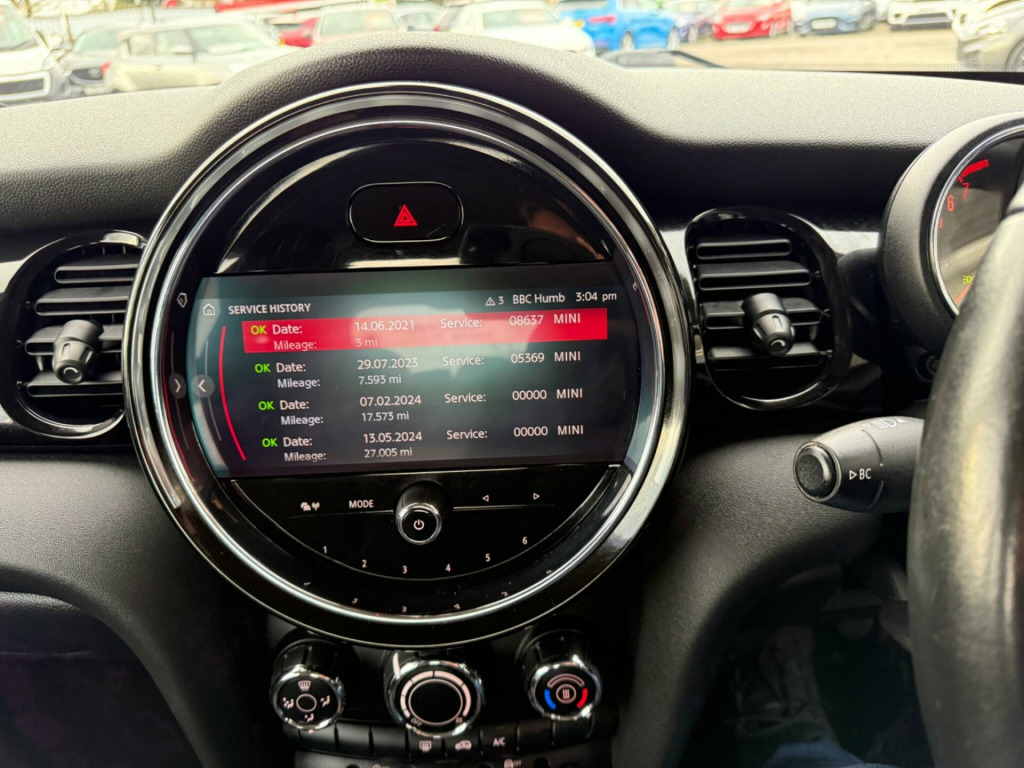 This 2021 MINI Hatch Cooper Classic is a superb example of a well maintained vehicle. Powered by a responsive 1.5 litre petrol engine, this Euro 6 compliant model offers an engaging driving experience. It comes equipped with manual air conditioning to keep you comfortable in all conditions, and Bluetooth connectivity with audio streaming allows for seamless integration of your compatible mobile phone. The distinctive LED headlights with their unique closed ring daytime driving lights, coupled with automatic headlight activation, ensure excellent visibility and add to the car's modern appeal.The performance of this MINI Hatch Cooper Classic is noteworthy, achieving 0 to 62 miles per hour in just 8.4 seconds. This brisk acceleration demonstrates its capability and makes it a spirited choice compared to other vehicles in its class. The Cooper Classic trim level provides a well rounded package of features, making this MINI a practical and enjoyable option for everyday driving. v socket in centre console, 15in alloy wheels - heli spoke, 3 point seatbelts on all seats, 4 lashing eyes in luggage compartment, 6 speakers - in front door trims and underneath front seats, 8.8in touchscreen with led ring, air conditioning - manual, airbags, alarm system, anti-lock braking system - abs, automatic headlight activation switch, bluetooth for compatible mobile phone - with audio streaming, carbon black colour line - knee roll and door armrests, chrome highlights, cup holders, door sill strips - metal with mini, door storage compartments, dynamic brake lights, dynamic stability control - dsc, electric windows, electro-mechanical steering with speed dependant steering assistance, electronic vehicle immobiliser, exhaust tailpipe - left with chrome finisher, fm tuner and dab digital radio, floor mats - velour, foldable rear seats 60-40, front and rear isofix - including front passenger airbag deactivation, fuel filler cap in body colour, gear-change indicator display, glove compartment, headliner - satellite grey, heated rear window, heated windscreen washer jets, instrument cluster, interior lighting, interior trim - piano black, led headlights with closed ring as daytime driving lights, led reading lights - vanity mirror lights - front footwell lights - spotlights on front seats, leatherette gearshift lever and handbrake gaiters, mini e-call, mini teleservices, mechanical seat adjustment, model logo cooper on right of tailgate, multifunction controls for steering wheel, on-board computer, performance control, radiator grille - chrome border with black high-gloss slats, rain sensor window wipers, rear fog light, rear led lights with union jack design, rear window wiper, roof and mirror caps - body-colour, side scuttle panels with integrated indicators, single tone fanfare horn, sport leather steering wheel, start-stop toggle including keyless go, steering column height and length adjustment, sun visor with vanity mirrors, sun-heat protection glass, tool kit in luggage compartment, tyre pressure monitoring system, white direction indicators lights, roof and mirror caps - black, firework cloth - carbon black
