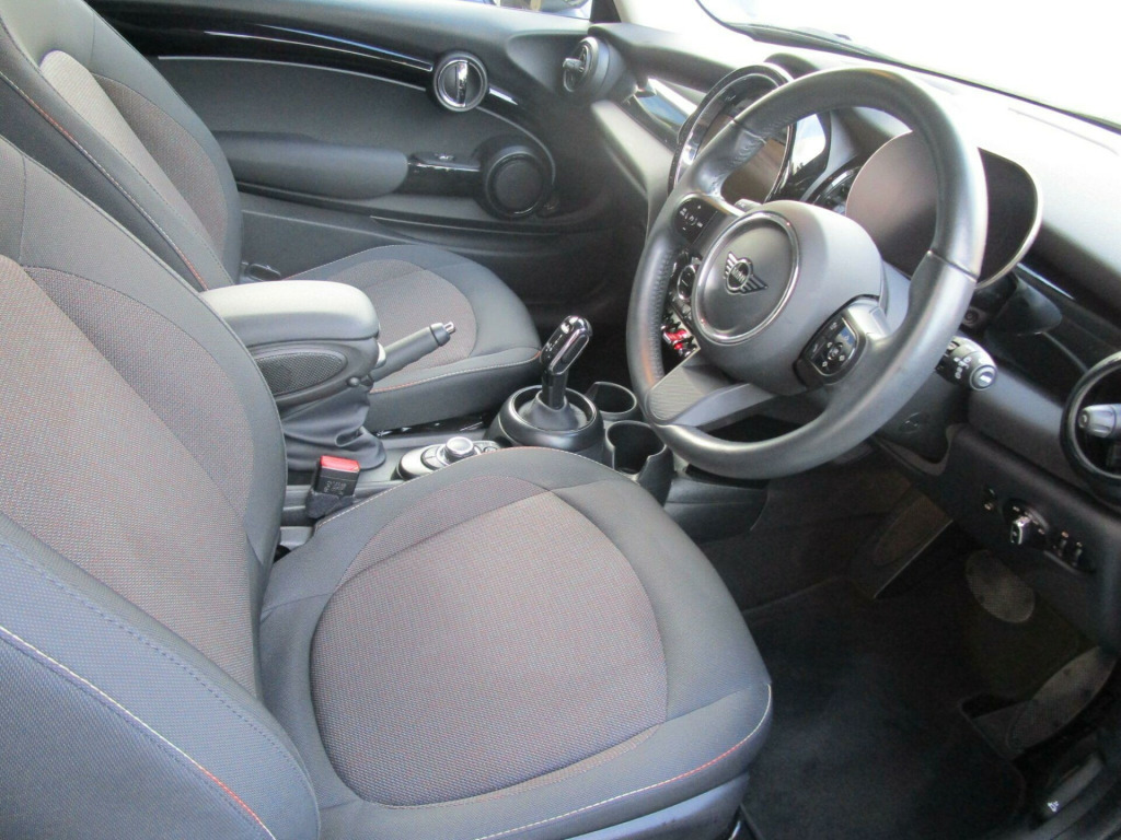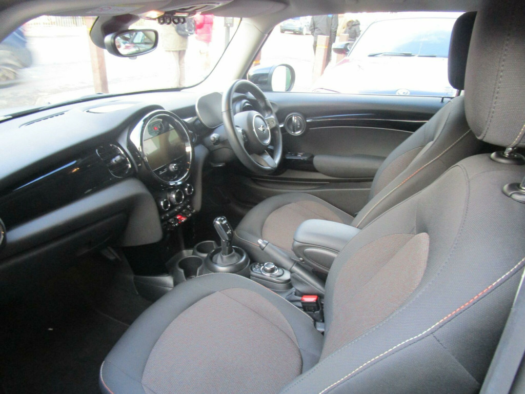 HPI CLEAR, ONE OWNER WITH FULL SERVICE HISTORY,2X KEYS. nnet stripes - black, roof and mirror caps - black, firework cloth - carbon black, 12v socket in centre console, 15in alloy wheels - heli spoke, 3 point seatbelts on all seats, 4 lashing eyes in luggage compartment, 4 speakers - in front door trims and underneath front seats, 8.8in touchscreen with led ring, airbags, alarm system, anti-lock braking system - abs, apple carplay, automatic headlight activation switch, bluetooth for compatible mobile phone - with audio streaming, carbon black colour line - knee roll and door armrests, chrome highlights, cruise control with brake function, cup holders, digital dash, door sill strips - metal with mini, door storage compartments, dynamic brake lights, dynamic stability control - dsc, electric windows, electro-mechanical steering with speed dependant steering assistance, electronic gear shifter, electronic vehicle immobiliser, exhaust tailpipe - left with chrome finisher, fm tuner and dab digital radio, flexible car sharing preparation, floor mats - velour, foldable rear seats 60-40, front and rear isofix - including front passenger airbag deactivation, fuel filler cap in body colour, glove compartment, headliner - satellite grey, heated rear window, heated windscreen washer jets, instrument cluster, interior lighting, interior trim - piano black, led headlights with closed ring as daytime driving lights, led reading lights - vanity mirror lights - front footwell lights - spotlights on front seats, leatherette gearshift lever and handbrake gaiters, mini e-call, mechanical seat adjustment, mirror caps - body-colour, model logo cooper on right of tailgate, multifunction controls for steering wheel, on-board computer, performance control, premium pack, radiator grille - chrome border with black high-gloss slats, rain sensor window wipers, rear fog light, rear led lights with union jack design, rear window wiper, roof in body colour, side scuttle panels with integrated indicators, single tone fanfare horn, sport leather steering wheel, start-stop toggle including keyless go, steering column height and length adjustment, sun visor with vanity mirrors, sun-heat protection glass, teleservices, tool kit, tyre pressure monitoring system, white indicator lenses