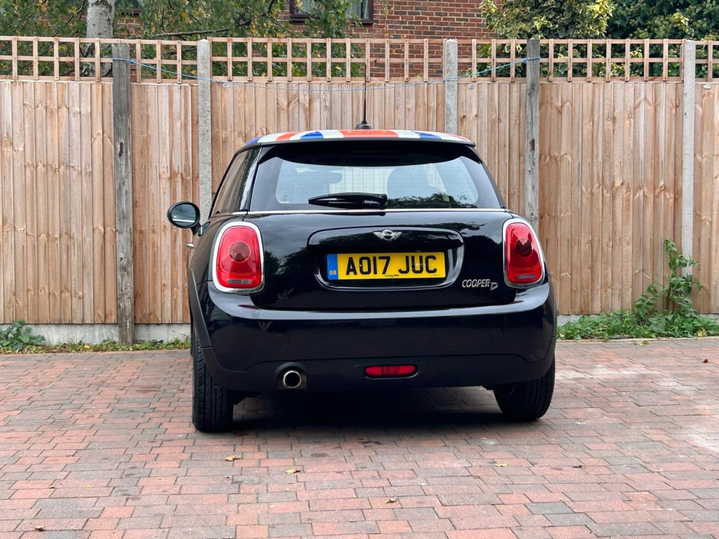 This 2017 Mini Hatch 1.5 Cooper D Hatchback 3dr Diesel Auto Euro 6 (s/s) (116 ps) in Midnight Black is the perfect city car, with only 52000 miles on the clock and ULEZ compliant, it's economical and stylish. This 3 door hatchback has a MOT expiring on 18/05/2026 and includes Firework Cloth - Carbon Black interior, 4 seats, and 12Volt Socket in Front Centre Console. The Bluetooth Hands Free Function with USB Audio and DAB Tuner make for an enjoyable driving experience. With its efficient diesel engine and sleek design, this Mini Hatch is the ultimate urban companion. volt socket in front centre console, bluetooth hands free function with usb audio, dab tuner, intelligent emergency calling - e-call, mini teleservices, radio with four-line display, speakers - two mid range in front doors and two woofers under front seats, 15in alloy wheels - heli in silver, body coloured fuel filler cap in rear right side panel - linked to central locking, chrome bezels around rear lights and headlights, door handles - chrome plated, exhaust tailpipe - visible - single - round - left hand side with chrome finisher, exterior mirrors - aspheric on drivers side - electrically adjustable, front side indicators - orange, heated mirrors and windscreen washer jets, heated rear window with automatic deactivation, heated window heater, mini mobility system, mirror caps in body colour, radiator grille - chrome border and slats in high-gloss black, rear fog light, roof spoiler painted in roof colour, roof in body colour, security locking wheel bolts, side scuttles black with integrated direction indicator orange, sills - bumper edges - wheel arch cover in black, stainless steel embellisher at bottom edge of all windows, tailgate handle - high gloss black, window lifts - electrical for drivers and front passengers sides, 3 point seatbelts on all seats, airbags for driver and front passenger - 6 airbags as standard, alarm and immobiliser - thatcham cat 1, anti-lock braking system - abs, crash sensor, dtc - dynamic traction control with edlc - electronic differential lock control, dynamic stability control - dsc, front passenger isofix and airbag de-activation switch, fuel pump automatic cut-off in crash situation, locking system with central locking, rear window wiper, 3rd brake light - led along top of rear window, daytime driving lights, follow me home function, front fog lights, halogen lights for low beam and high beam headlights, headlight - beam-throw control electrical with manual adjustment, air conditioning - manual, automatic door window lowering by approx 6mm when door opens, boot release via remote control, colour line - carbon black, cupholders - two in front and one in the rear centre console, decorative rings surrounding dashboard instruments in chrome plated, door sill finishers - metal look and model dependent lettering, easy entry access to the rear seats and memory function for driver, external visible vin, foldable rear backrest 60-40, gearshift lever knob - plastic, gearshift-selector lever and handbrake lever gaiters in sensatec artificial leather, handbrake lever grip - plastic, headliner - satellite grey, headrests for all seats - manually adjustable and two rear folding headrests, heater with mechanical control and recirculating-air button, interior door handles - chrome plated, interior lights - integrated into centre front headliner, interior mirror - mechanical anti-dazzle, interior surface - haze grey, interior trim - hazy grey, lashing eyes in luggage compartment, luggage compartment - light, mechanical seat adjustment - six way drivers seat, microfilter, non smoker package, oddments trays at rear - right and left, personal profile, reversing light, standard seat for driver and front passenger, start-stop button with keyless start, steering wheel - 2-spoke plastic, steering wheel column adjustment mechanically in height and length, storage options, sun visors with integrated vanity mirrors on drivers and passengers sides, tool kit in luggage compartment, twin horns, brake pad wear indicator, condition based service, mini central display, minimalism fuel saving technology, on-board computer, power steering with servotronic, revolution counter, speedometer on steering column, tpws - tyre pressure warning system
