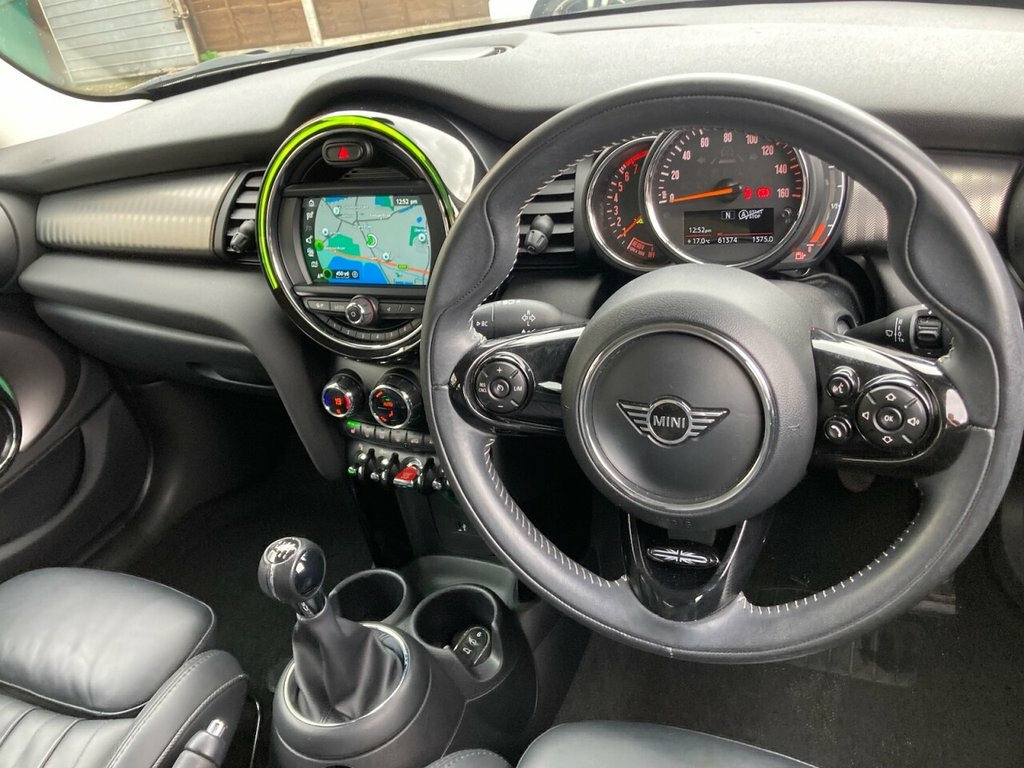 ONLY 1 OWNER FROM NEW 8 X MINI SERVICES LAST SERVICE 3RD JULY 2024 AT 59,888 MILES, COLOUR SCREEN SATELLITE NAVIGATION, FULL BLACK LEATHER LOUNGE LEATHER HEATED SPORT SEATS, MINI EXCITEMENT PACKAGE, LEATHER MULTI FUNCTION SPORTS STEERING WHEEL, CRUISE CONTROL WITH BRAKE FUNCTION, CENTRE ARMREST, 17 INCH ROULETTE SPOKE 2 TONE ALLOY WHEELS, REVERSING CAMERA WITH FRONT AND REAR PARK DISTANCE SENSORS, PARK ASSIST, CLIMATE CONTROL AIR CONDITIONING, HEATED FRONT SCREEN, UNION REAR LIGHTS, REMOTE DAB MEDIA WITH USB, BLUETOOTH PHONE CONNECTION, TRACTION CONTROL, A.B.S., ELECTRIC WINDOWS, ELECTRIC HEATED POWER FOLD MIRRORS, REMOTE CENTRAL LOCKING ALARM WITH 2 KEYS, TWIN FRONT PLUS SIDE AIRBAGS 12V Socket in Centre Console, 17in Alloy Wheels - Roulette Spoke, 3 Point Seatbelts on all Seats, 4 Lashing Eyes in Luggage Compartment, 6 Speakers - in Front Door Trims and Und, 6.5in Screen with LED Ring, Air Conditioning - Manual, Airbags, Alarm System, Anti-Lock Braking System - ABS, Automatic Headlight Activation Switch, Bluetooth for Compatible Mobile Phone - , Carbon Black Colour Line - Knee Roll and, Chrome Highlights, Chrome Line Exterior, Chrome Line Interior, Comfort Plus Pack, Cruise Control with Brake Function, Cup Holders, Door Sill Strips - Metal with MINI, Door Storage Compartments, Dynamic Brake Lights, Dynamic Stability Control - DSC, Electric Windows, Electro-Mechanical St