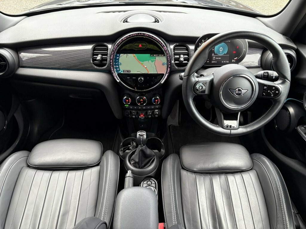 STUNNING MINI HATCH 1.5 COOPER EXCLUSIVE 5 DOOR HATCHBACK PETROL MANUAL/METALLIC ENIGMATIC BLACK/BLACK LOUNGE LEATHER HEATED SEATS/SATELLITE NAVIGATION/BLUETOOTH/DAB RADIO/DUAL ZONE CLIMATE CONTROL/MULTI FUNCTION STEERING WHEEL/CRUISE CONTROL/ELECTRIC DOOR MIRRORS/17 INCH TENTACLE ALLOY WHEELS FINISHED IN JET BLACK/PARKING SENSORS/SUN PROTECTION GLASS/SERVICE HISTORY/PX WELCOME/1ST CLASS CONDITION INSIDE AND OUT/PX WELCOME/FINANCE AVAILABLE. 12V Socket in Centre Console, 17in Alloy Wheels - Tentacle Spoke in Bl, 18in Alloy Wheels - British Spoke - 2-To, 3 Point Seatbelts on all Seats, 4 Lashing Eyes in Luggage Compartment, 6 Speakers - in Front Door Trims and Und, 8.8in Touchscreen with LED Ring, Air Conditioning - Manual, Airbags, Alarm System, Anti-Lock Braking System - ABS, Apple Carplay, Automatic Headlight Activation Switch, Bluetooth for Compatible Mobile Phone - , Carbon Black Colour Line - Knee Roll and, Chrome Highlights, Comfort Pack, Cruise Control with Brake Function, Cup Holders, Door Sill Strips - Metal with MINI, Door Storage Compartments, Dynamic Brake Lights, Dynamic Stability Control - DSC, Electric Windows, El