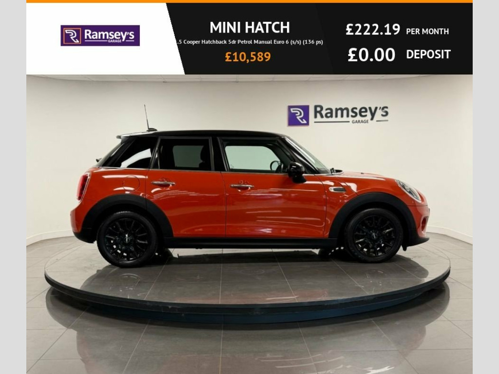 MINI Hatch 1.5 Cooper 5dr Petrol Manual Petrol | Manual | 136 PS | Euro 6 (s/s) | ULEZ Compliant Engine: 1.5L Turbocharged Petrol Power: 136 PS Transmission: 6-Speed Manual Doors: 5 Emissions Standard: Euro 6 (s/s) – ULEZ Compliant The MINI Cooper 5-Door Hatch delivers iconic styling, a fun-to-drive character, and premium build quality – all with the added practicality of five doors. Perfect for city driving or weekend getaways, it blends sporty handling with excellent efficiency. Key Features: Heated seats 6.5" Colour infotainment display with built in satellite navigation DAB radio & Bluetooth connectivity Air conditioning LED daytime running lights MINI Driving Modes Start/Stop technology ISOFIX child seat mounts Alloy wheels Electric windows & mirrors ULEZ Compliant – Euro 6 Vehicle Details: Registration: YB18WKS Year: 2018 Mileage: 43511 Colour: ORANGE Location: CO. DURHAM. ONLY 5 MINS FROM THE A1 Before any car leaves our showroom, it's thoroughly inspected, serviced, and tested by our expert technicians. We check all major systems, replace worn parts, and carry out a final road test to ensure reliability and safety. Each vehicle is then professionally cleaned and detailed, with all paperwork and history verified. All of our vehicles are delivered with a 12 month MOT along with a minimum 6 month warranty to ensure pure peace of mind. Checked. Cleaned. Certified. Ready to drive with confidence. Contact our sales te 12Volt Socket in Front Centre Console, 15in Alloy Wheels - Heli in Silver, 16in Alloy Wheels - Victory Spoke in Bla, 3 Point Seatbelts on all Seats, 3rd Brake Light - Red, Air Conditioning - Automatic Dual Zone, Air Conditioning - Manual, Airbags for Driver and Front Passenger -, Alarm and Immobiliser - Thatcham CAT 1, Anthracite Headlining, Anti-Lock Braking System - ABS, Automatic Door Window Lowering by Approx, Bluetooth Hands Free Function with USB A, Body Coloured Fuel Filler Cap in Rear Ri, Bonnet Stripes - Black, Boot Release via Remote Control, Brake Pad Wear Indicator, Chrome Bezels around Rear Lights and Hea, Colour Line - Carbon Black, Condition Based Service, Crash Sensor, Cruise