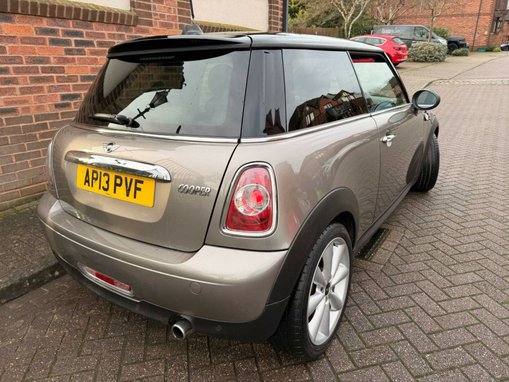 Low Mileage Automatic with an excellent Service History including 7 documented services, 2 Keys supplied, ULEZ Compliant Vehicle, This 2013 MINI Hatch Cooper presents an exceptional opportunity with its remarkably low mileage of just 50,000 miles, significantly less than expected for a vehicle of its age. This particular Cooper model is equipped with a 1.6L petrol engine and meets Euro 6 emissions standards. Its MOT is valid until November 2026, and it boasts a clear vehicle history check. The last service was completed on 28th November 2025 at 50,150 miles, ensuring it is well maintained. Inside, you'll find comfortable Leather Lounge upholstery in Carbon Black, seat heating for both the driver and front passenger, and a 3 spoke sport leather steering wheel. Practicality is enhanced with rear Park Distance Control and darkened rear glass for added privacy.The MINI Hatch Cooper offers a driving experience that stands out, with an acceleration of 0-62mph in 10.4 seconds. This model also benefits from a low insurance group, making it an economical choice for many drivers. These factors, combined with its comprehensive service history and excellent condition, indicate that this MINI Hatch Cooper is a superior option compared to other vehicles in its class. r conditioning - manual, 15in alloy wheels - light 7-hole, asc+t - automatic stability control and traction, anti-lock braking system - abs, airbags - driver, airbags - front passenger, airbags - front passenger with deactivation switch, airbags - front side, airbags - head, alarm - thatcham cat1, aux-in connection, brake force display, brake pad wear indicator, cbc - cornering brake control, car jack, central locking - activated at 10mph, 3rd brake light, central locking - remote, child seat isofix attachment, crash sensor - fuel cut-off, crash sensor - hazard warning flashers and interior light, crash sensor - unlocking doors, cupholders - front x2 - rear x1, dab tuner, decorative rings surrounding dashboard instruments, door handles - chrome plated, door handles - interior - chrome plated, door mirrors - electrically adjustable and heated, door sill finishers - metal look and model dependent lettering, dynamic stability control - dsc, ebd - electronic brake-force distribution, electric windows - front - one touch up and down, electronic power steering - speed related, gearshift-selector lever and handrake lever gaiters in sensatec, halogen lights for low beam and high beam headlights, handbrake-lever grip - plastic with chrome plated handbrake push button, headlight - beam-throw control electrical with manual adjustment, headlights - follow me home, headlining - beige, headrests for all seats - manually adjustable, heated front windscreen washer jets, heated rear window with automatic deactivation, hill assist, interior surface in fine white silver and door rings in black, interior world - carbon black, knee roll in hard plastic on dashboard - carbon black, lashing eyes in luggage compartment, luggage compartment - light, mini mobility system, microfilter, mirror caps in body colour, non smoker package, radiator grille - chrome plated, radio boost cd, roof in body colour, seats - easy entry access, seats - height adjustable drivers, second radio remote key, security locking wheel bolts, sills-bumper edges-wheel arches - black with model-specific bumper trims, steering column height and length adjustment, steering wheel - 2-spoke plastic, sun visors with integrated vanity mirrors on drivers and passengers sides, tpws - tyre pressure warning system, tailgate handle - chrome plated, tool kit in luggage compartment, chili pack, 17in alloy wheels - light conical spoke, basic bluetooth function with usb audio, pdc - park distance control - rear, air conditioning - automatic, seats - sports front, seat heating for driver and front passenger, 3-spoke sport leather steering wheel, multifunction controls for steering wheel, darkened rear glass, spoiler - roof, interior surfaces - piano black, electrically folding exterior mirrors, interior light pack, anthracite headlining, front fog lights, chrome line interior, colour line - polar beige, chrome line exterior, rain sensor and automatic headlight activation, run-flat tyres, white direction indicators lights, roof and mirror caps - black, leather lounge - carbon black