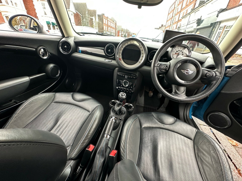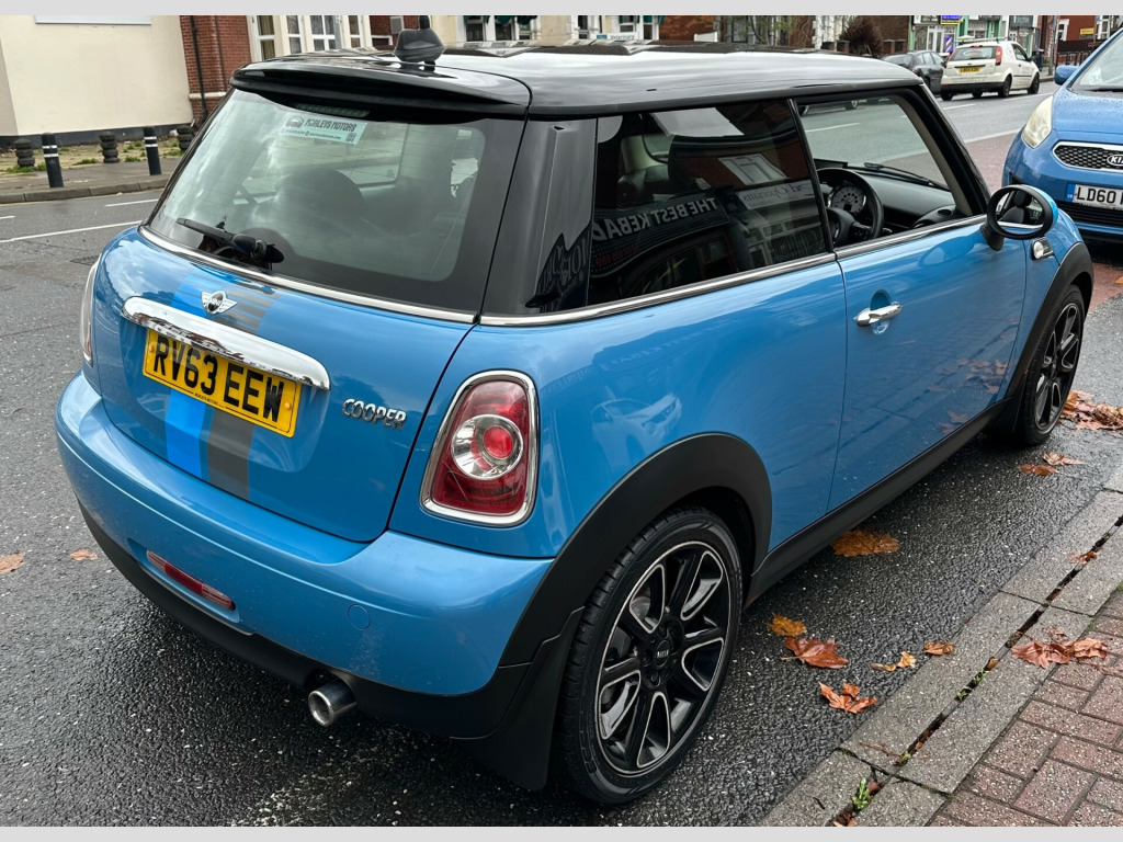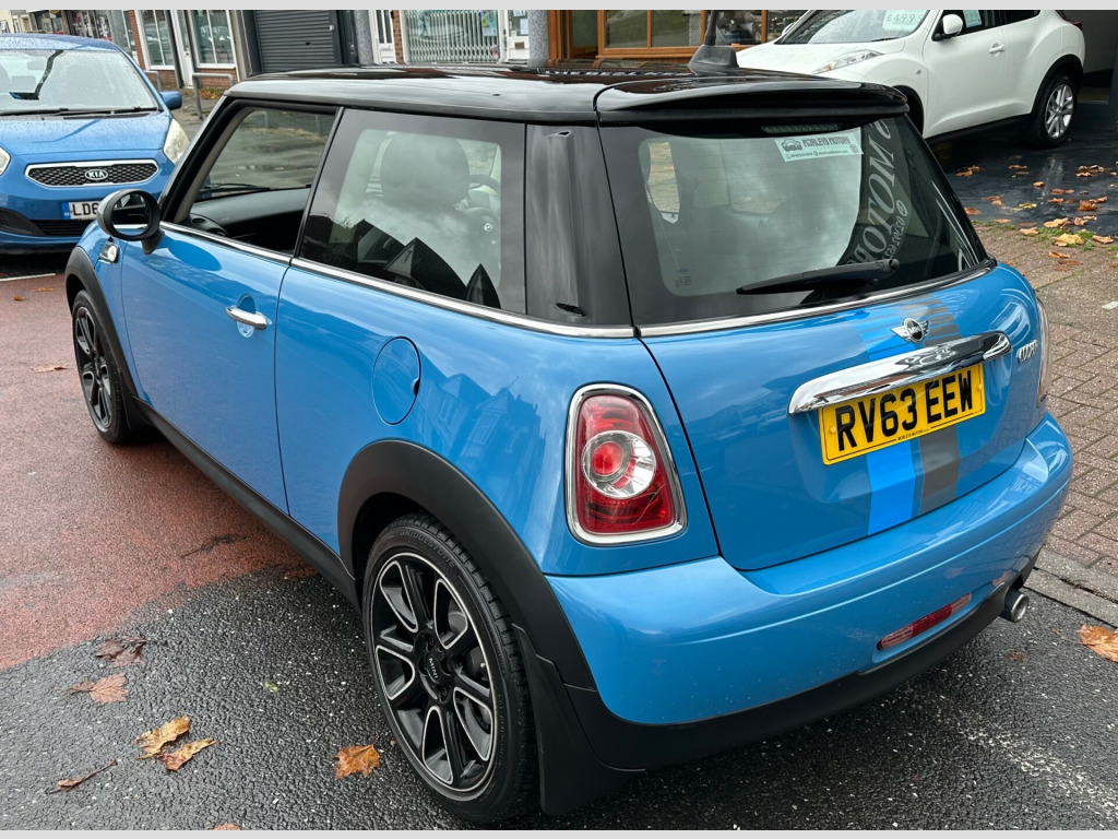 Introducing the 2013 MINI Hatch 1.6 Cooper Bayswater, a stylish blue hatchback with a petrol engine and manual transmission. This model has 55,000 miles on the clock and has had three previous owners. It comes with a complete service history and a new service. It's ULEZ compliant and the MOT is valid until 4th November 2026, offering a blend of performance and iconic design. in sandblast turned light alloy wheels in jet black, bonnet stripes - bayswater, door handles - chrome plated, door mirrors - electrically adjustable and heated, electric windows - front - one touch up and down, embellisher at bottom edge of all windows - chrome plated, headlights - chrome bezels, heated front windscreen washer jets, heated rear window with automatic deactivation, mini mobility system, mirror caps mini bayswater design, multiple control arm rear axle, roof in body colour, security locking wheel bolts, side air inlets with integrated direction indicator and mini bayswater design, sills-bumper edges-wheel arches - black with model-specific bumper trims, spoiler - roof, tailgate handle - chrome plated, white direction indicators lights, 3-spoke sport leather steering wheel, additional decor rings, air conditioning - automatic, automatic door window lowering by approx 6mm when door opens, car jack, chrome line interior, colour line - rocklike anthracite, cupholders - front x2 - rear x1, door handles - interior - chrome plated, door sill finishers - bayswater, floor mats - velour, footrest and pedals in stainless steel, gearshift-selector lever and handrake lever gaiters in sensatec, handbrake-lever grip - plastic with chrome plated handbrake push button, headlining - beige, heater with mechanical control and recirculating-air button, interior light pack, interior trim - piano black (bayswater), interior world - carbon black, knee roll in leather on dashboard in rocklike anthracite, luggage compartment - light, microfilter, multifunction controls for steering wheel, passenger seat height adjustable, rain sensor, seats - easy entry access, seats - height adjustable front, seats - sports front, steering column height and length adjustment, storage compartment pack, 3rd brake light, front fog lights, halogen lights for low beam and high beam headlights, headlights - follow me home, rain sensor and automatic headlight activation, asc+t - automatic stability control and traction, airbags - driver, airbags - front passenger with deactivation switch, airbags - head, alarm - thatcham cat1, anti-lock braking system - abs, cbc - cornering brake control, central locking - remote, child seat isofix attachment, crash sensor - fuel cut-off, crash sensor - hazard warning flashers and interior light, crash sensor - unlocking doors, dynamic stability control - dsc, ebd - electronic brake-force distribution, edlc - electronic differential lock control, electronic vehicle immobiliser, hill assist, second radio remote key, side airbags, aux-in connection, basic bluetooth function with usb audio, dab tuner, radio boost cd, brake force display, cruise control, electronic power steering - speed related, minimalism fuel saving technology, on-board computer, single joint spring strut front axle, sport button, tpws - tyre pressure warning system