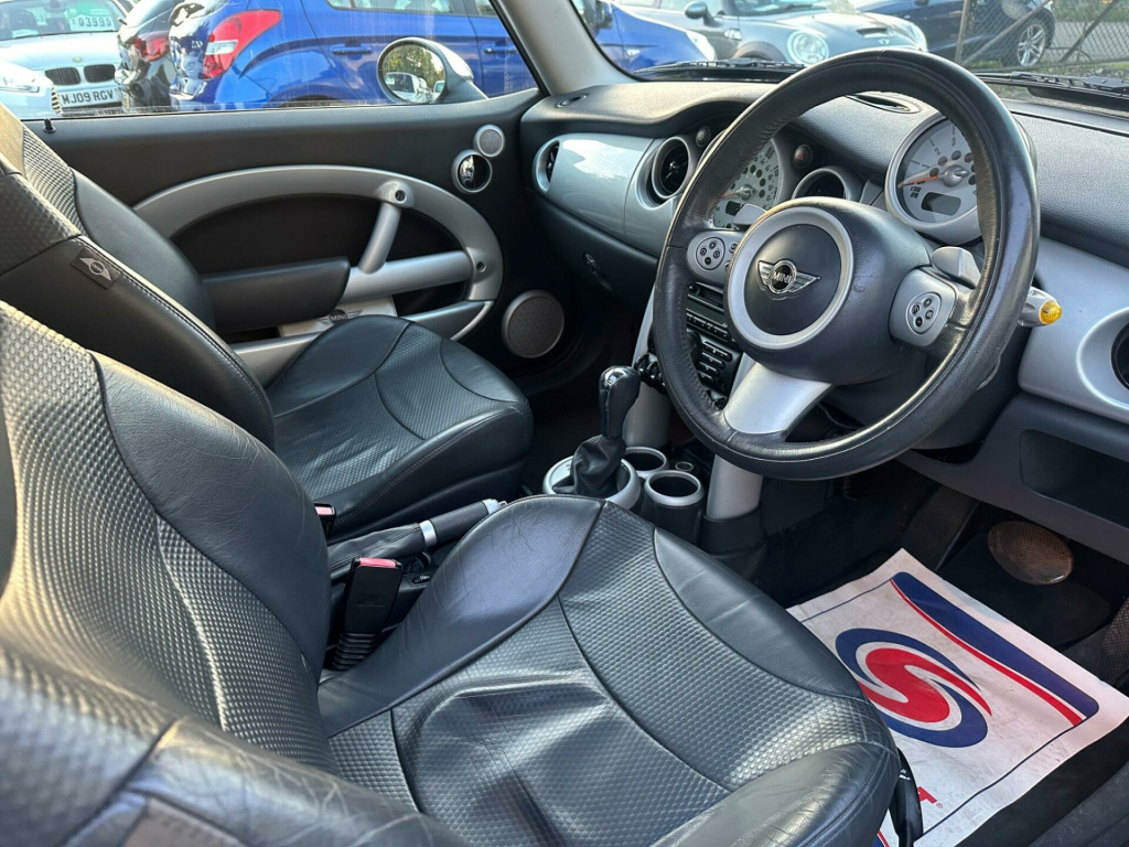 ******** SAME DAY FINANCE AVAILABLE ******** COMES WITH 03 MONTHS FREE WARRANTY ********* **********PERFECT EXAMPLE OF EXCELLENT CAR********* Another Perfect example of 2005 Mini Hatch One 1.6 Steptronic CVT Auto 16V Chilli Pack SE Special Edition Euro 4 , 3 dr Hatchback 4 Seats 145 bhp with Metallic Black Colour and Full Grey / Black Leather Interior which has just covered 99000 miles (warranted) .A U T O M A T I C , 99000 Miles , 2005 MINI MINI HATCH COOPER 1.6 16V CVT Auto STEPTRONIC CHILLI PACK , Euro 4 , 3 dr Hatchback 145 bhp , 4 Seats , 05 Reg , Metallic BLACK Colour , Excellent Condition , Full Grey / Black Leather Interior , Power Steering , Remote Central Locking , Adjustable Steering Column / Wheel , Front and Rear Head Restraints , Immobiliser ,Front and Rear Fog Lights , Traction Control , Iso-fix child seat , A I R C O N D I T I O N I N G / Climate Control , Anchor Points , A B S ,Body colour Bumpers , Multiple Air - bags , Electric Mirrors , Radio / CD Player , Alloy Wheels , Just been Fully Valeted , Full Service History + Old m.o.ts to Prove Mileage , 4 Good Tyres , M.O.T Till JUNE 2026 , Ideal First / Family Car , Very Clean in and out , Cheap to Run and insure , Cheap to Tax , Price for Quick sale . ili pack, automatic air conditioning, electric tilt&slide panoramic sunroof, 16in 5 star alloy wheels, xenon headlights with ldc automatic levelling & headlight wash, 6cd autochanger, front sports seats, heated front seats, 3spoke sports leather steering wheel, dark tinted glass, brilliant silver interior trim, interior light pack, chrome line exterior, chromed door mirror caps, storage compartment pack, heated door mirrors & heated windscreen washers, leather- profile- panther black & lumbar support, radio boost, rear park distance control, head airbags, passenger airbag deactivation system, warning triangle & first aid kit, 17in 5 star bullet alloy wheels, rear roof spoiler, top tint windscreen, front armrest, cockpit chrono pack, leather cloth mix- octagon- panther black & lumbar support, on board computer, mini pepper pack, sport suspension plus, 15in 5 star rocket alloy wheels, 15in 7 hole alloy wheels, 16in 5 star light alloy wheels when with chili pack, 16in 7spoke fin alloy wheels when with chilli pack, alloy wheels painted white, anthracite interior trim, black roof & mirror caps, body colour roof & door mirrors, brilliant silver interior trim when with chilli pack, brilliant silver interior trim when with pepper pack, cassette player, delete cooper badge, mini cooper badging on tailgate, mini mobility system, radio wave, single cd player, sport suspension plus when with chili pack, sports suspension, steptronic paddles for steering wheel, thatcham cat2 engine immobiliser, tinted glass, white roof & mirror caps
