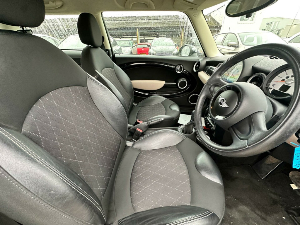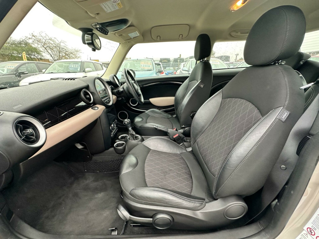 v power outlet front, 15in 5 star spooler light alloy wheels, 2spoke steering wheel, 3spoke sports leather steering wheel & gearknob when with bluetooth prep, 6 speakers, additional silver decor rings - with interior trim, additional silver decor rings- with leather, additional silver decor rings- with interior trim & leather, alloy wheels painted white, black roof, black roof & mirror caps, body colour lip spoiler, body colour roof & door mirrors, delete cooper badge, door sill finishers with cooper badge, fine white silver interior trim, gear & selector & handbrake- artificial leather, interior world - gotham grey, interior world- carbon black, interior world- redwood red, interior world- tuscan beige, mini mobility system, manual air conditioning with cooled glovebox, no smoker package, piano black interior trim with gravity & lounge leather, radio boost & single slot cd, voice control system when with bluetooth, white roof & mirror caps