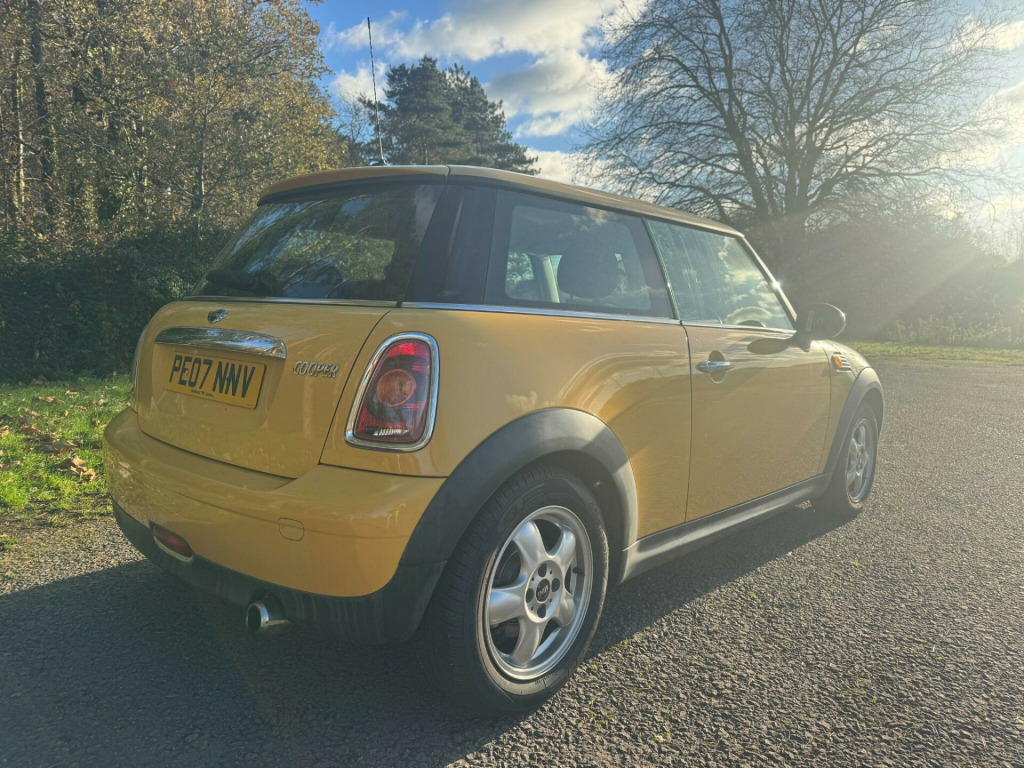 A VERY RARE YELLOW COOPER THIS ONE, HAVING JUST THE ONE OWNER WHO HAS MAINTAINED A FULL SERVICE HISTORY... A BIT OF A ONE OFF IN THIS VERY DESIRABLE COLOUR. VEHICLE NOW IN STOCK PENDING PREPARATION, ALL ENQUIRIES PLEASE CALL 07846731201This 2007 MINI Hatch Cooper is a remarkable find, having been cherished by just one owner since new. Powered by a responsive 1.6L petrol engine, this Cooper variant boasts a stylish Chrome line Exterior, a 2Spoke Leather Steering Wheel with a matching leather gearknob, and the practical Visibility Pack. Inside, you'll appreciate the convenience of an auto dimming rear view mirror and the intelligent Rain sensor that automatically activates the headlights.This MINI Hatch Cooper offers an impressive fuel economy of 52 mpg, making it an economical choice for your daily journeys. Its low CO2 emissions and placement in a low insurance group further highlight its cost effectiveness compared to similar vehicles. Experience brisk performance with an acceleration of 0-62mph achieved in just 9.1 seconds, demonstrating its spirited yet efficient nature. sibility pack, front foglights, interior lights pack- cooper & cooper s, 2spoke leather steering wheel with leather gearknob, auto dimming rear view mirror, chrome line exterior, rain sensor with auto headlights activation, cloth- cosmos- carbon black, 12v power outlet front, 15in 5 star spooler light alloy wheels, 2spoke steering wheel, 3spoke sports leather steering wheel & gearknob when with bluetooth prep, 6 speakers, additional silver decor rings - with interior trim, additional silver decor rings- with leather, additional silver decor rings- with interior trim & leather, alloy wheels painted white, black roof, black roof & mirror caps, body colour lip spoiler, body colour roof & door mirrors, delete cooper badge, door sill finishers with cooper badge, fine white silver interior trim, gear & selector & handbrake- artificial leather, interior world - gotham grey, interior world- carbon black, interior world- redwood red, interior world- tuscan beige, mini mobility system, manual air conditioning with cooled glovebox, no smoker package, piano black interior trim with gravity & lounge leather, radio boost & single slot cd, voice control system when with bluetooth, white roof & mirror caps