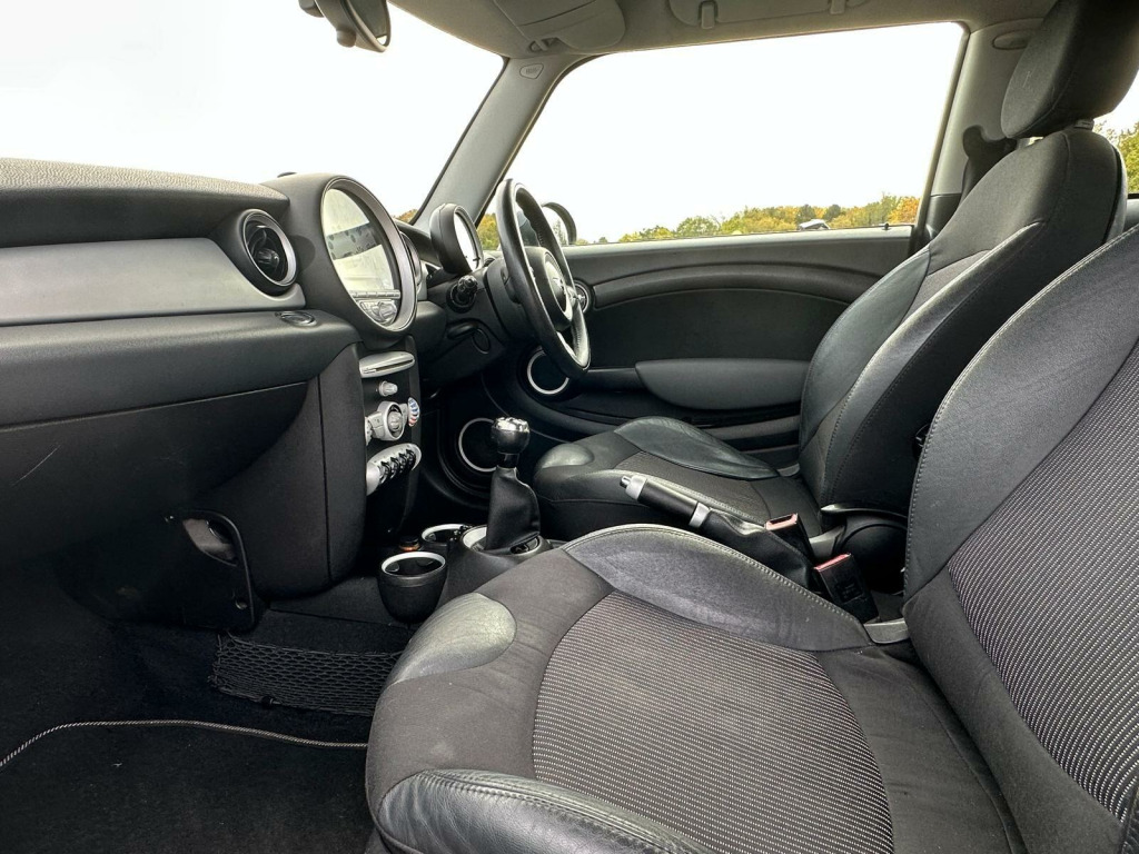 YEARS MOT PART EX WELCOME- PART LEATHER ISOFIX SEATS in crown spoke light alloy wheels, 17in crown spoke light alloy wheels & runflat tyres, bi- xenon headlights & auto height adjust & headlight washers, front sports seats, 3spoke sports leather steering wheel & gear knob, asc & t, front foglights, interior lights pack- cooper & cooper s, storage compartment pack- cooper s, chrome line exterior, white indicator lights, leather cloth mix- cloth & ray leather- carbon black, 12v power outlet front, 15in 5 star spooler light alloy wheels, 2spoke steering wheel, 3spoke sports leather steering wheel & gearknob when with bluetooth prep, 6 speakers, additional silver decor rings - with interior trim, additional silver decor rings- with leather, additional silver decor rings- with interior trim & leather, alloy wheels painted white, black roof, black roof & mirror caps, body colour lip spoiler, body colour roof & door mirrors, delete cooper badge, door sill finishers with cooper badge, fine white silver interior trim, gear & selector & handbrake- artificial leather, interior world - gotham grey, interior world- carbon black, interior world- redwood red, interior world- tuscan beige, mini mobility system, manual air conditioning with cooled glovebox, no smoker package, piano black interior trim with gravity & lounge leather, radio boost & single slot cd, voice control system when with bluetooth, white roof & mirror caps