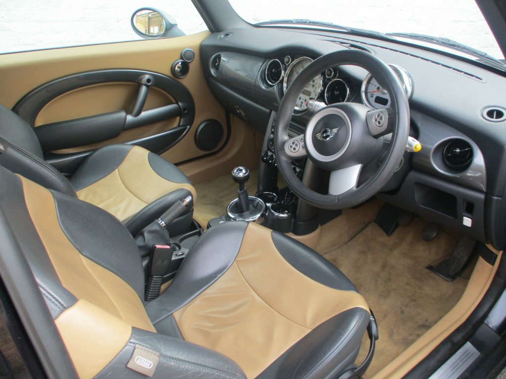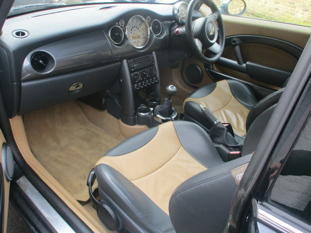 ***NICE SPEC***This 2005 Mini Hatch 1.6 Cooper is a 3-door hatchback with 4 seats, powered by a 1.6L petrol engine delivering 116 bhp. With 87000 miles on the clock, this manual Euro 4 vehicle is ULEZ compliant and has its MOT valid until 08/10/2026. This vehicle is finished in Black with a Tan & Black Full Leather Upholstery & Pan Roof. It has a partial history & 1 Key. Drives well. Couple of bits on the body but a very pretty car. P.X. TO CLEAR. SOLD AS SEEN. JUST IN. NEEDS A VALET. r conditioning, power steering, trip computer, abs, isofix child seat anchor points, alarm, central locking, immobiliser, locking wheel nuts, electric mirrors, electric windows, radio/cd, front head restraints, rear headrests, alloy wheels, body coloured bumpers, metallic paintwork, spare wheel