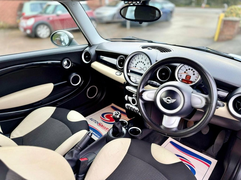 15in 5 star Spooler Light Alloy Wheels, 16in 5 star Blaster Alloy Wheels, 2Spoke Steering Wheel, 3Spoke Sports Leather Steering Wheel &am, 3Spoke Sports Leather Steering Wheel &am, 6 Speakers, Alloy Wheels painted White, Auto Air Conditioning with cooled gloveb, Basic Bluetooth function with USB Audio, Black roof, Black roof & mirror caps, Bluetooth telephone preparation with USB, Body colour lip spoiler, Body colour roof & door mirrors, Bonnet Stripes- White, Chrome line Exterior, Delete COOPER badge, Fine White Silver Interior Trim, Front Foglights, Front Sports Seats, Gear & selector & handbrake- art, Heated door mirrors & Heated windscr, Horizon, Interior Lights Pack-
