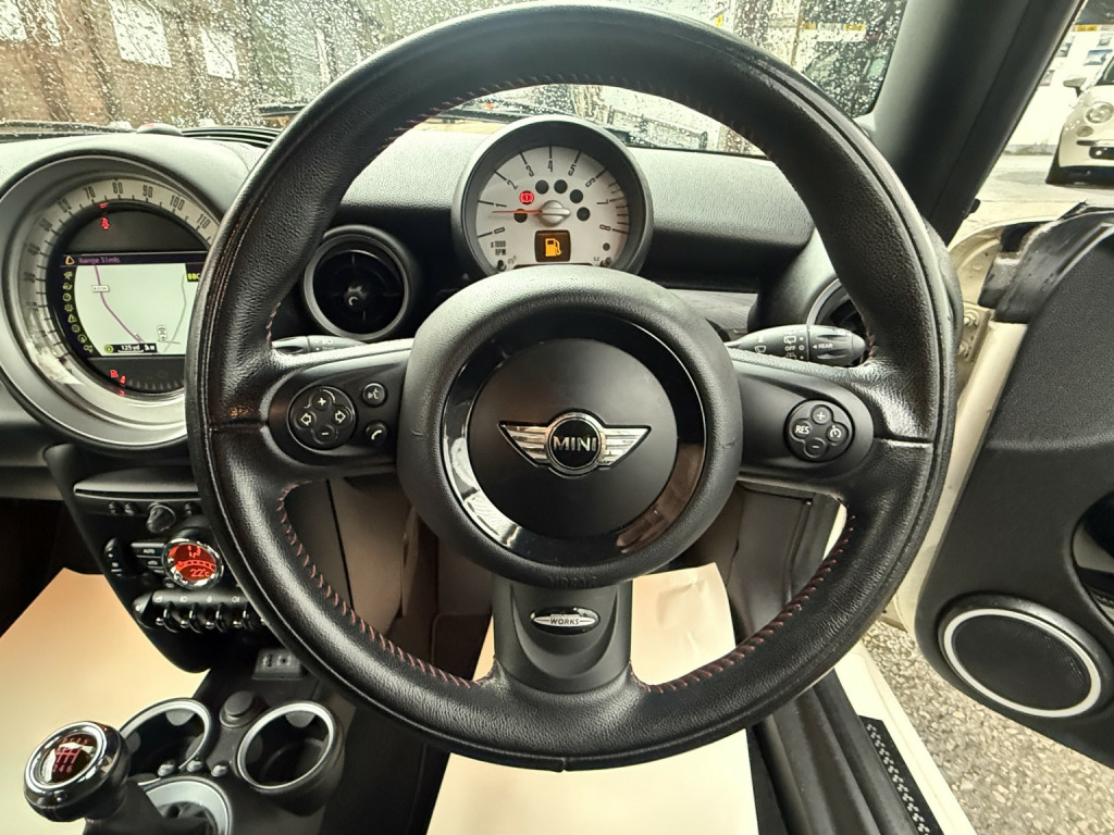 getaround in this stunning 1.6 petrol Mini Cooper. This 6-speed manual example looks great finished in pepper white with contrasting half black leather interior. It has an amazing spec that makes this model stand out in a crowd and these include heated seats, cruise control, rear parking sensors, full screen colour Sat-Nav, DAB radio with hands-free phone prep, Harman Kardon speaker upgrade, full john cooper works body kit, JCW alloy wheels and air-conditioning. The car has a comprehensive service history that is made up of some 10-dealer stamps and a long MOT. It comes with the owners book pack, fully stamped service booklet, two key, locking wheel nut and clear HPi certificate. Phone, text or email for an appointment to view this stunning ulez compliant Mini hatch soon.